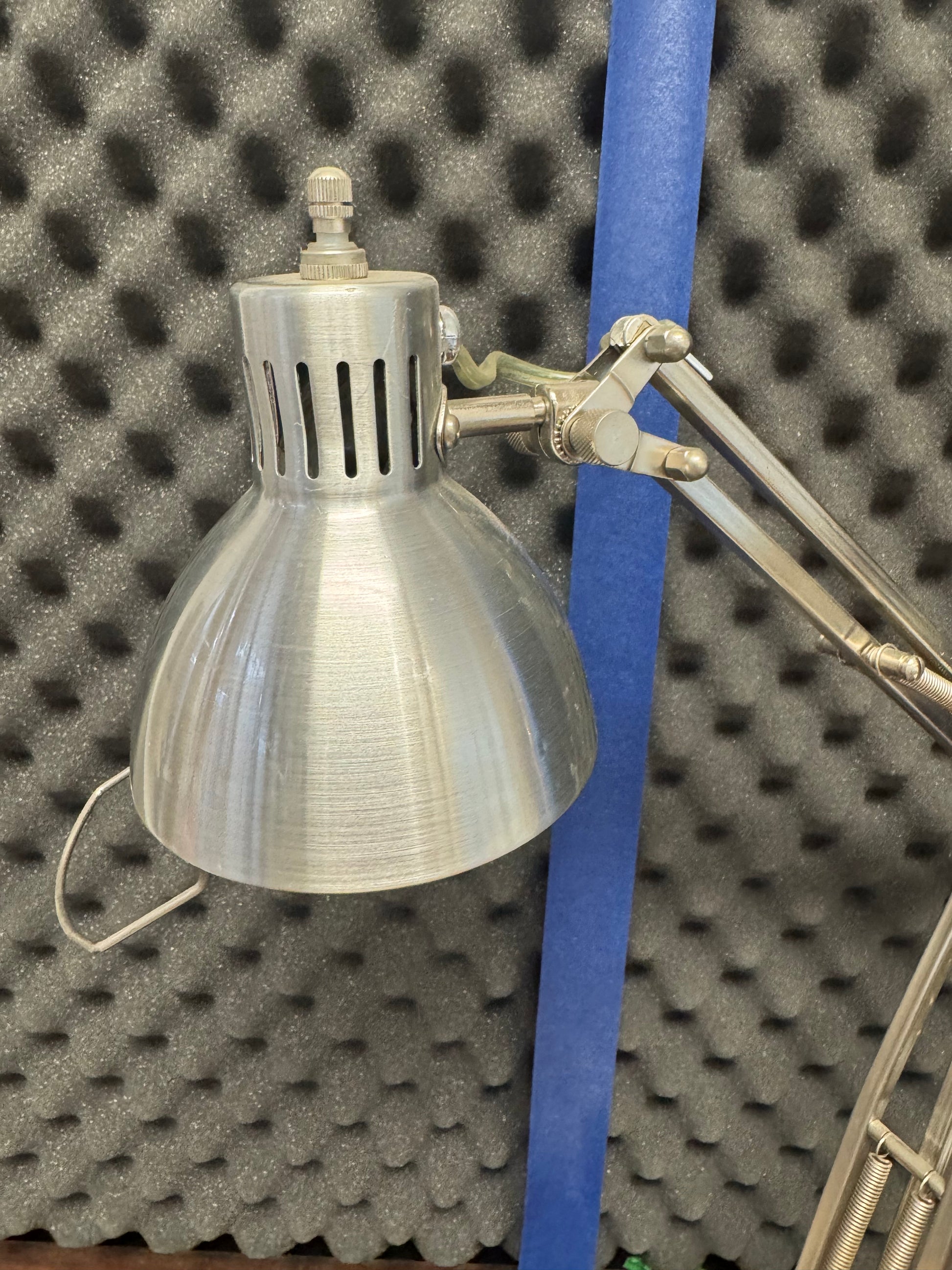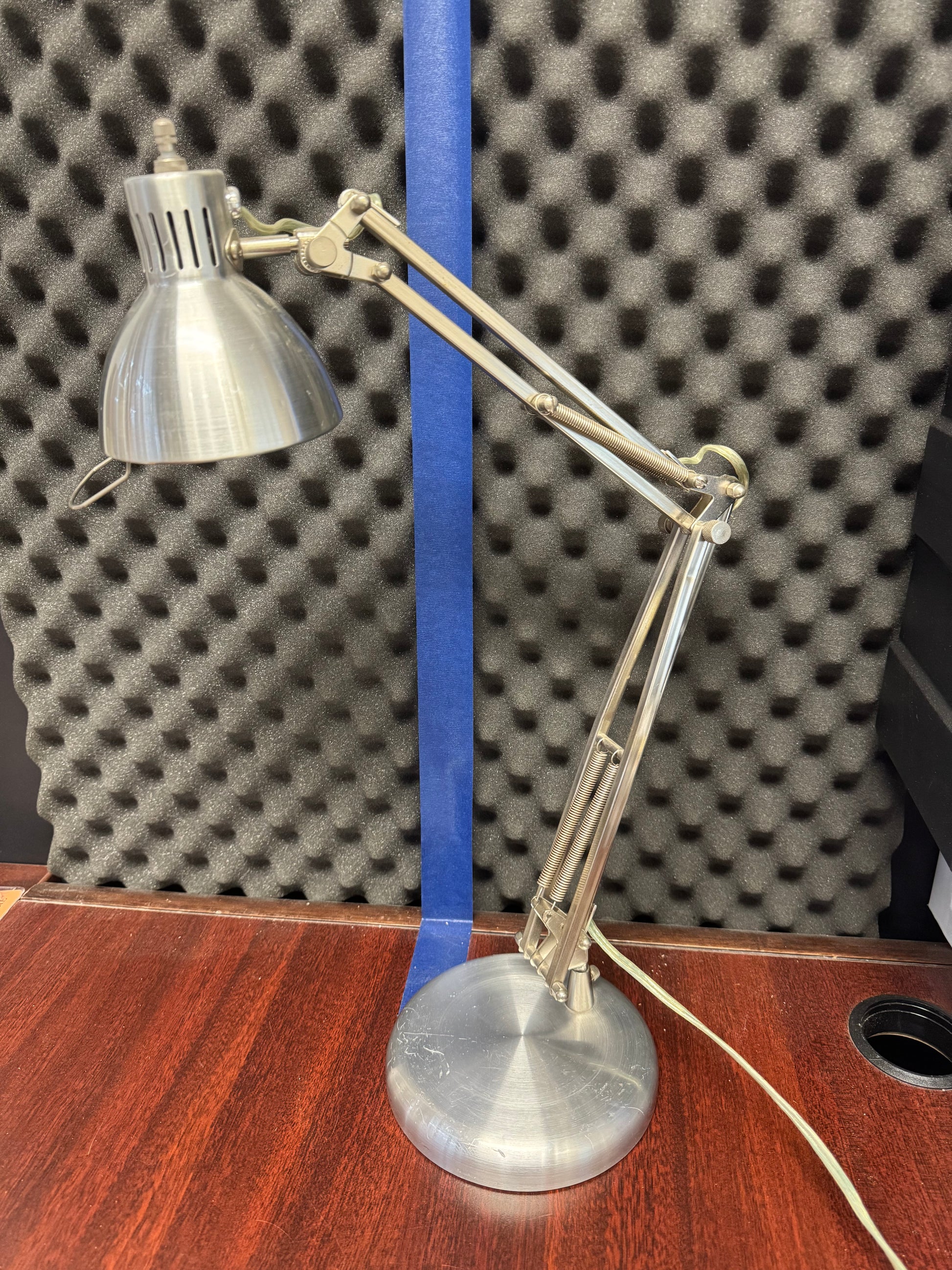 Brushed Steel Articulated Arm Desk Lamp. Halogen Light. $60 to purchase. $50 to rent