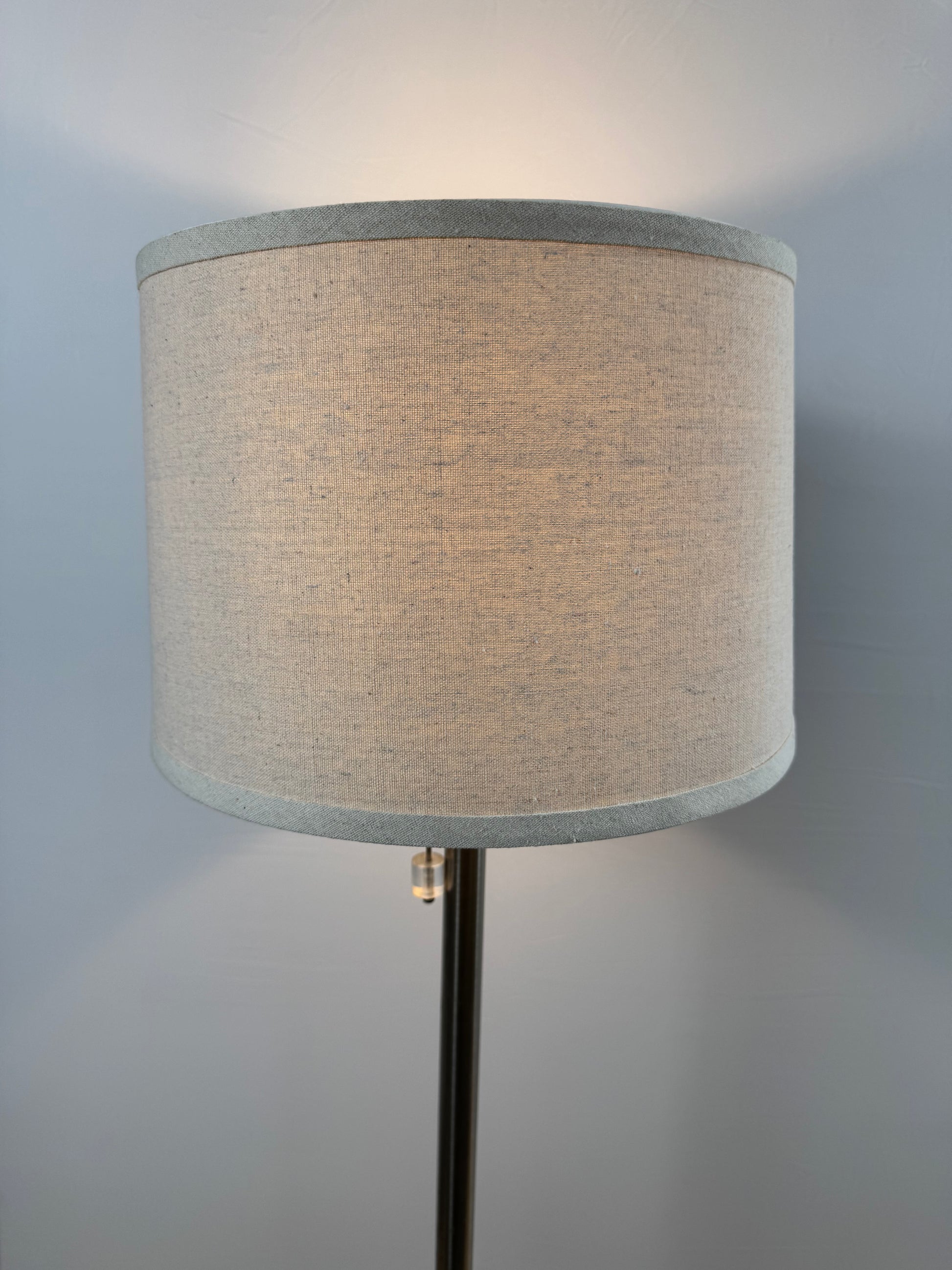 Contemporary Floor Lamp with Brushed Steel Finish & Acrylic Base with Cylinder Torchier Shade.