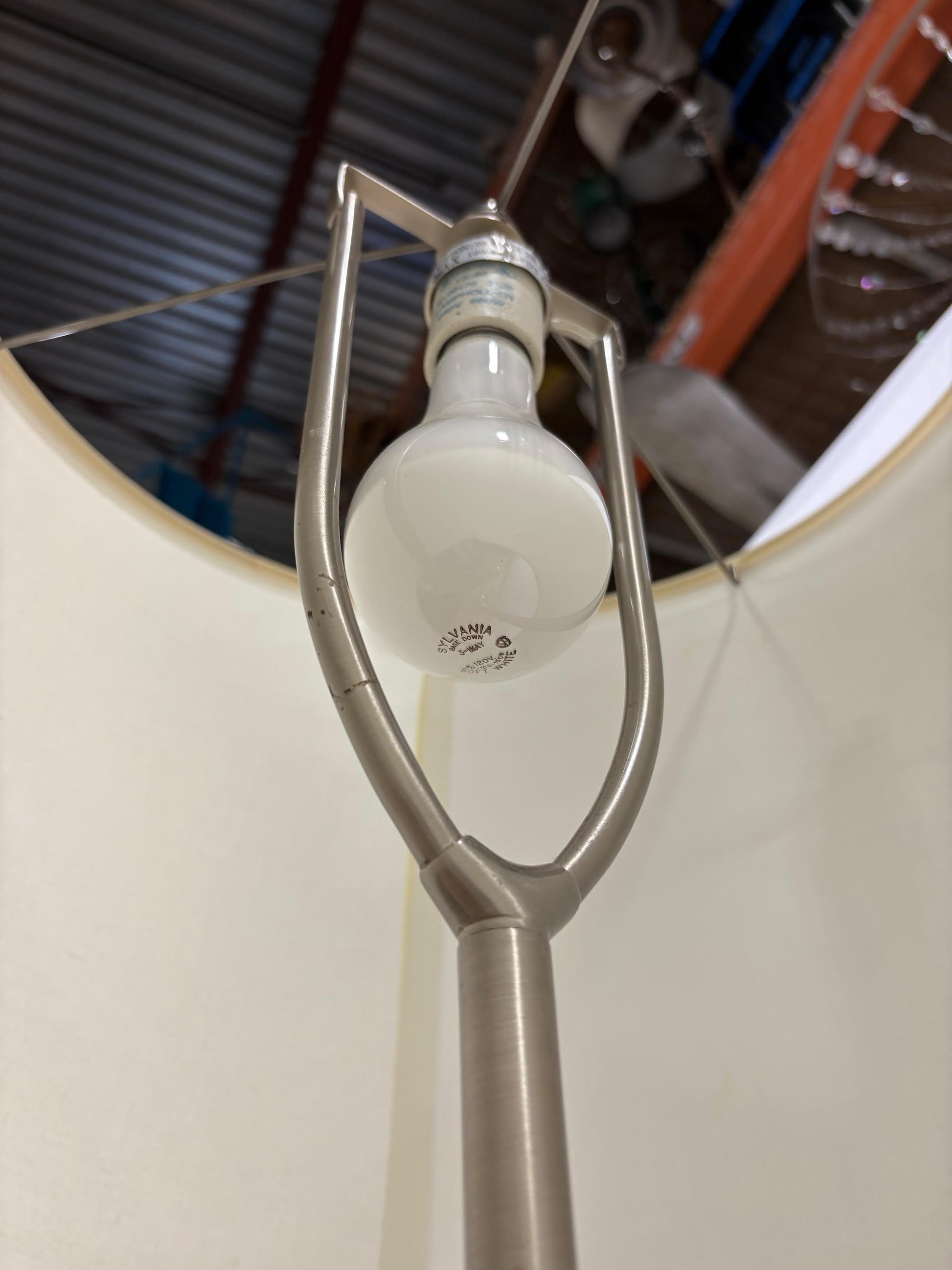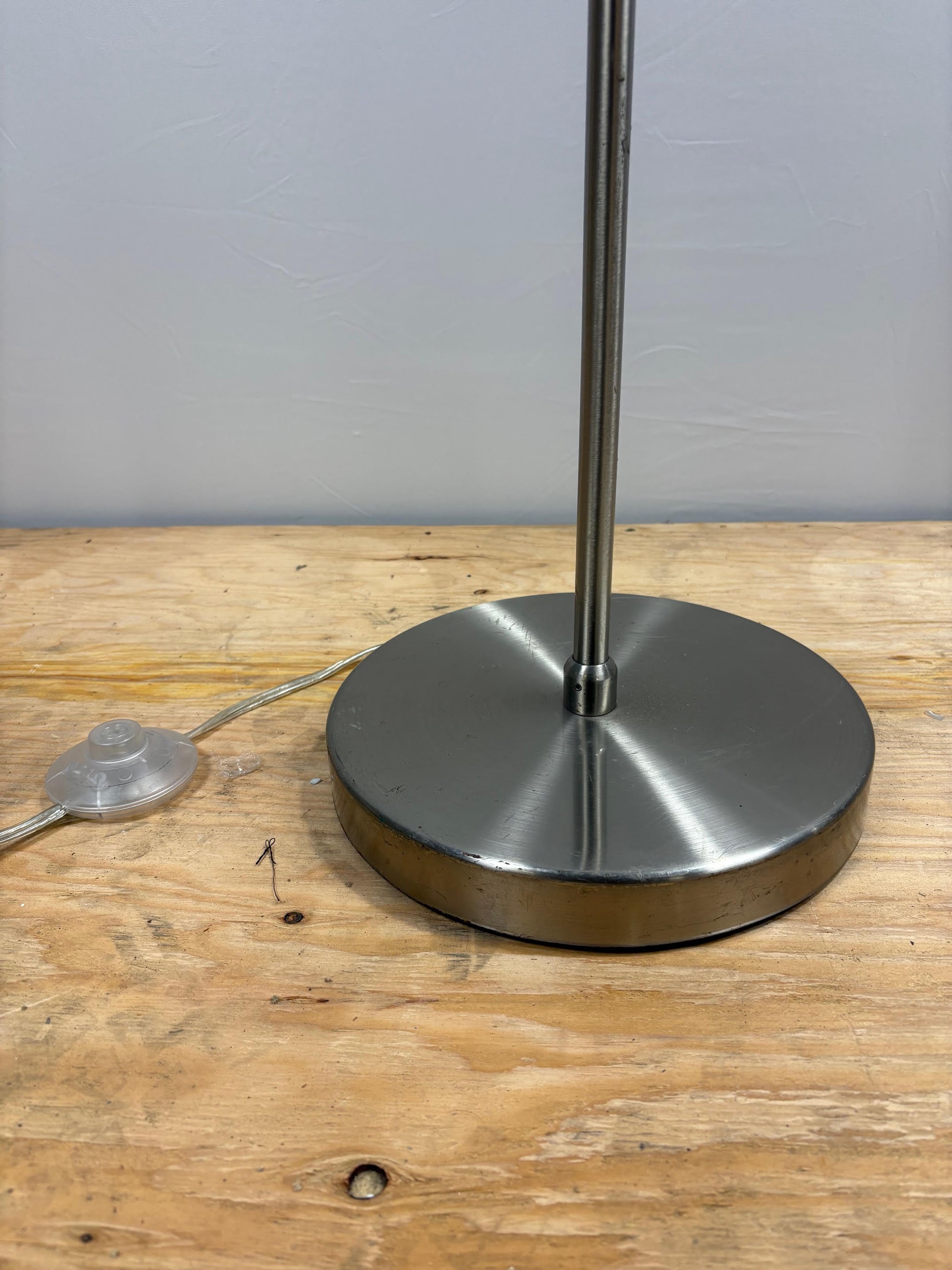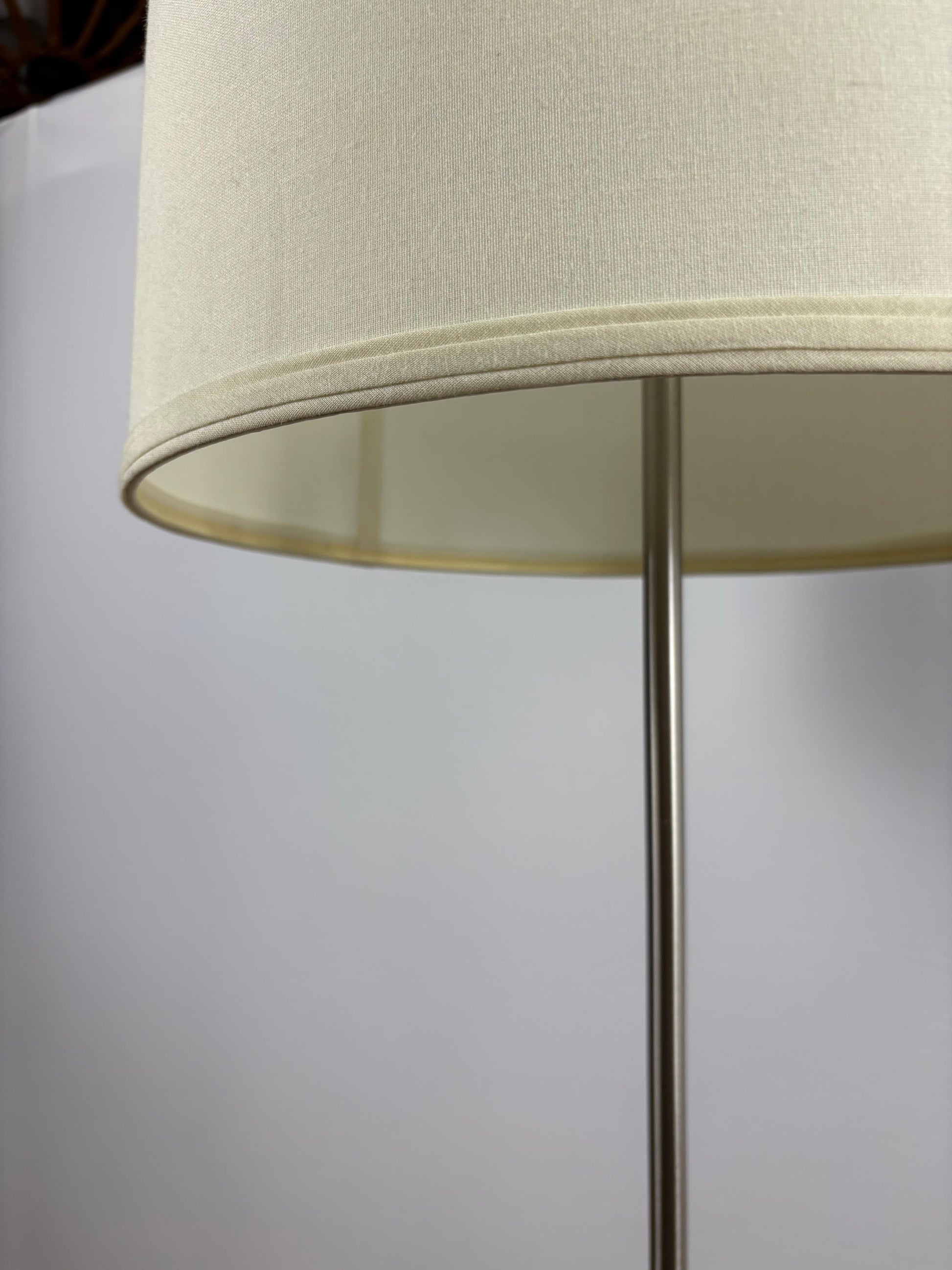 Brushed Steel Contemporary Floor Lamp with Tall Cylinder Linen Shade and foot switch