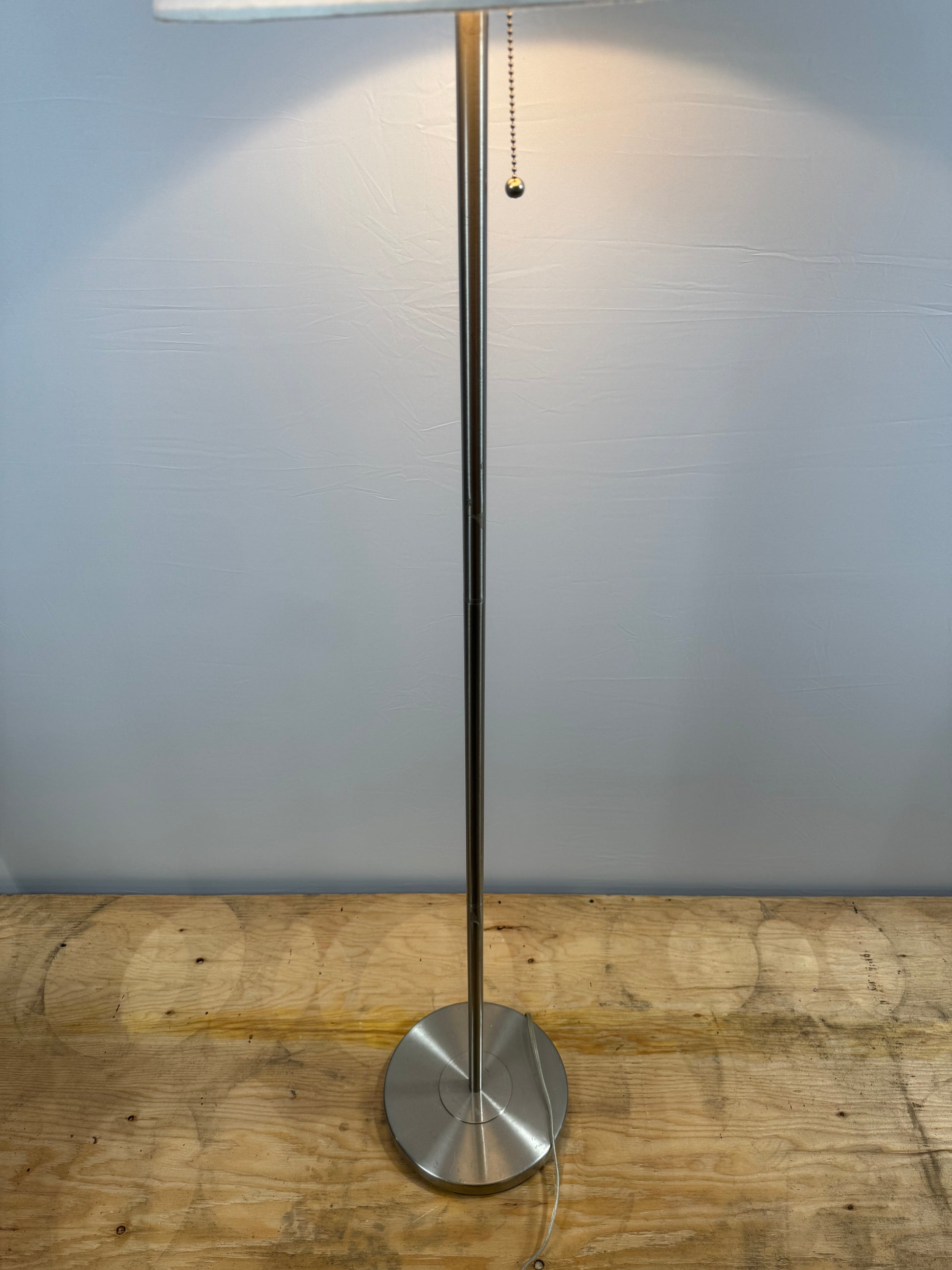 Floor Lamp Brushed Steel Finish with Tapered Parchment Torchier Shade. Sale Price $118.99