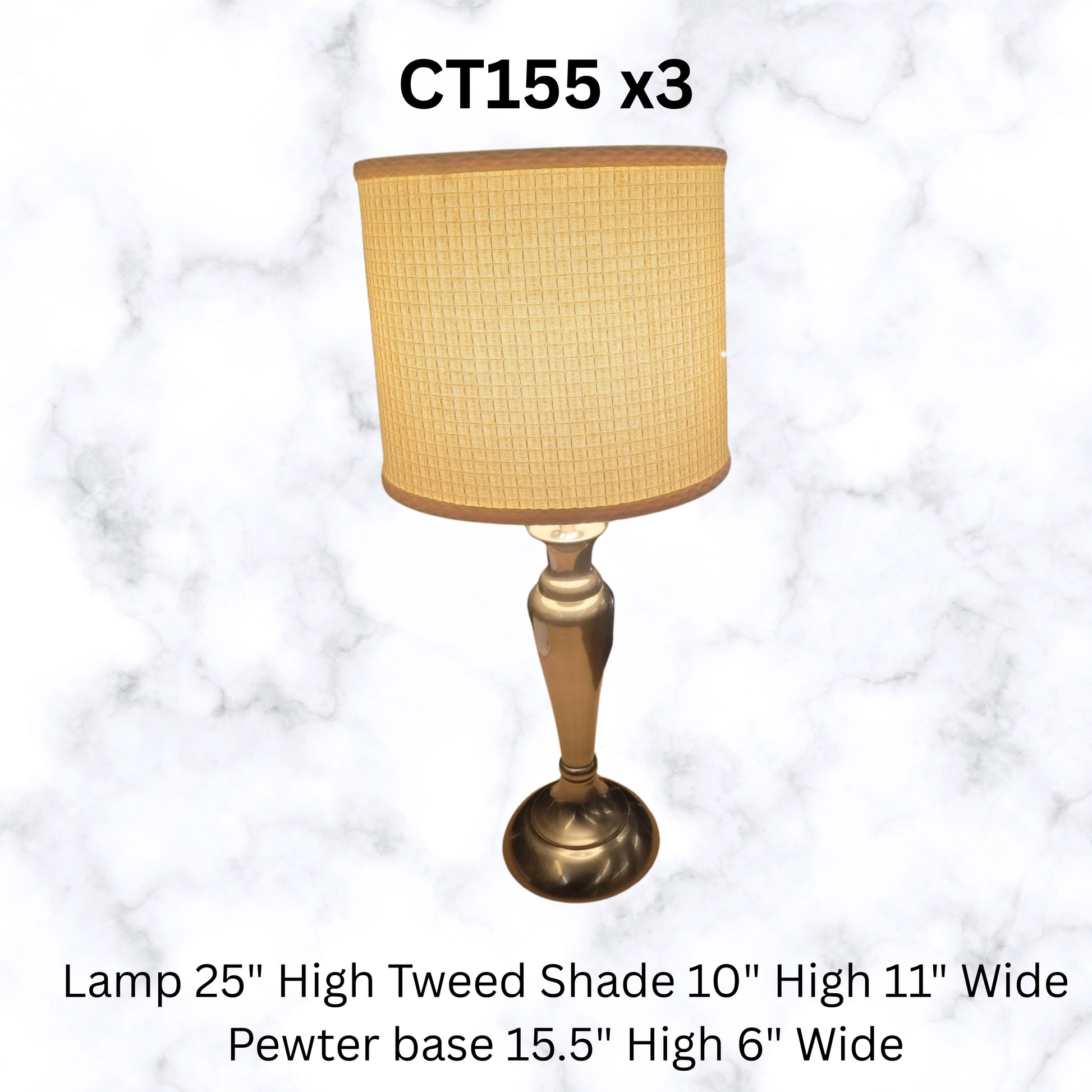 Pewter base is 15.5" 6" W