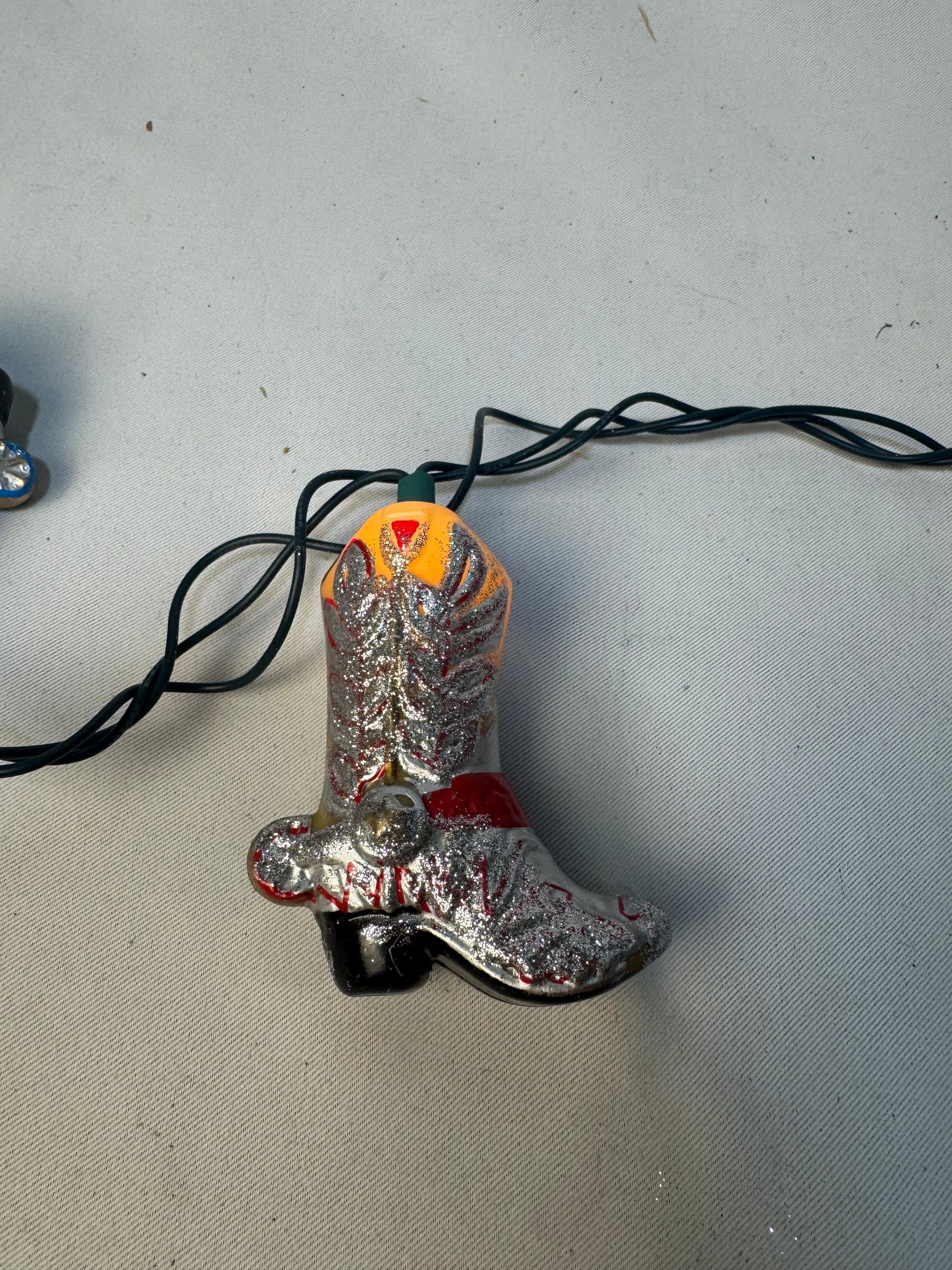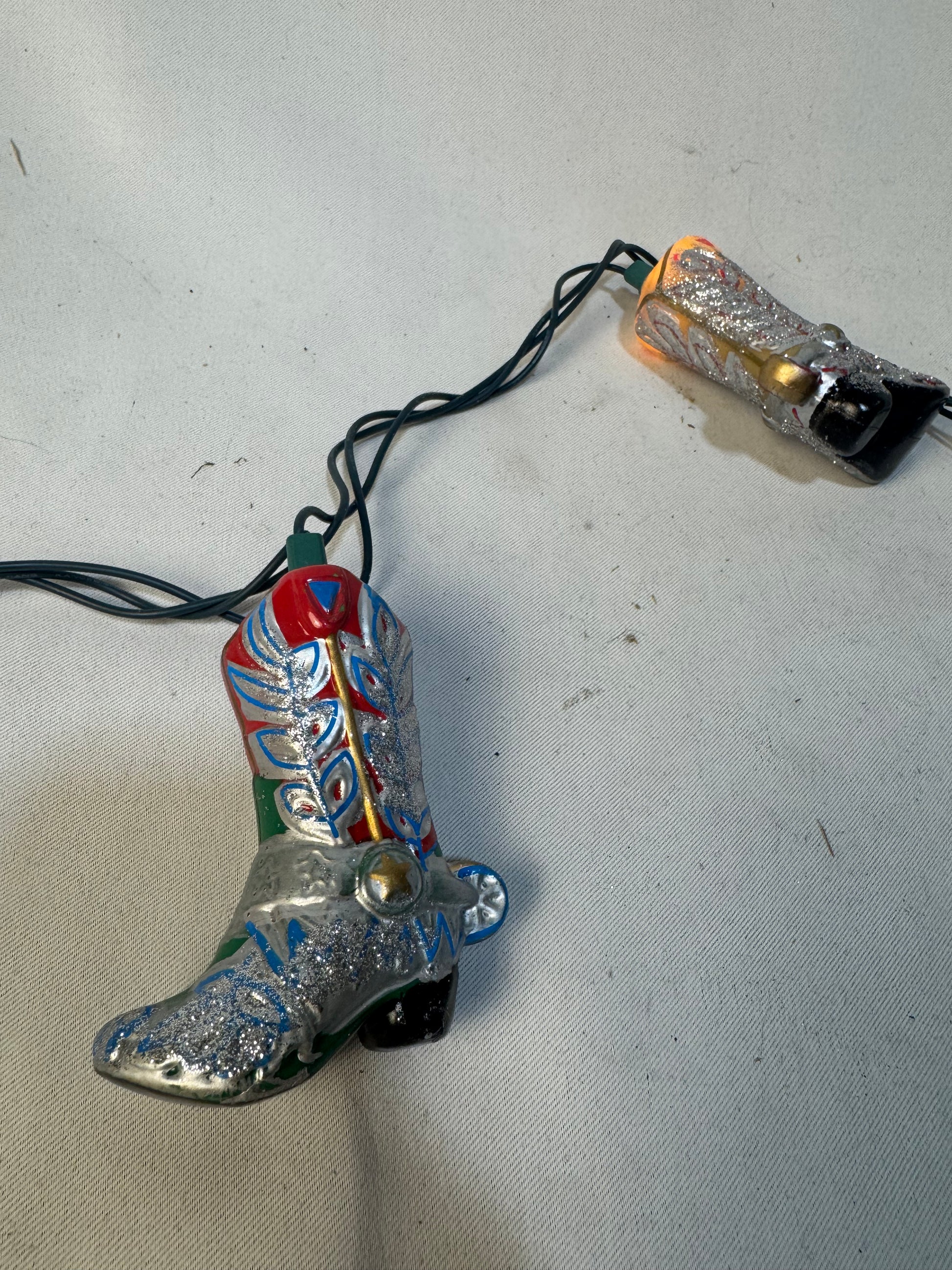 Blow Mold Cowboy Boots String Lights. 10 Lights with Brown Wire.
