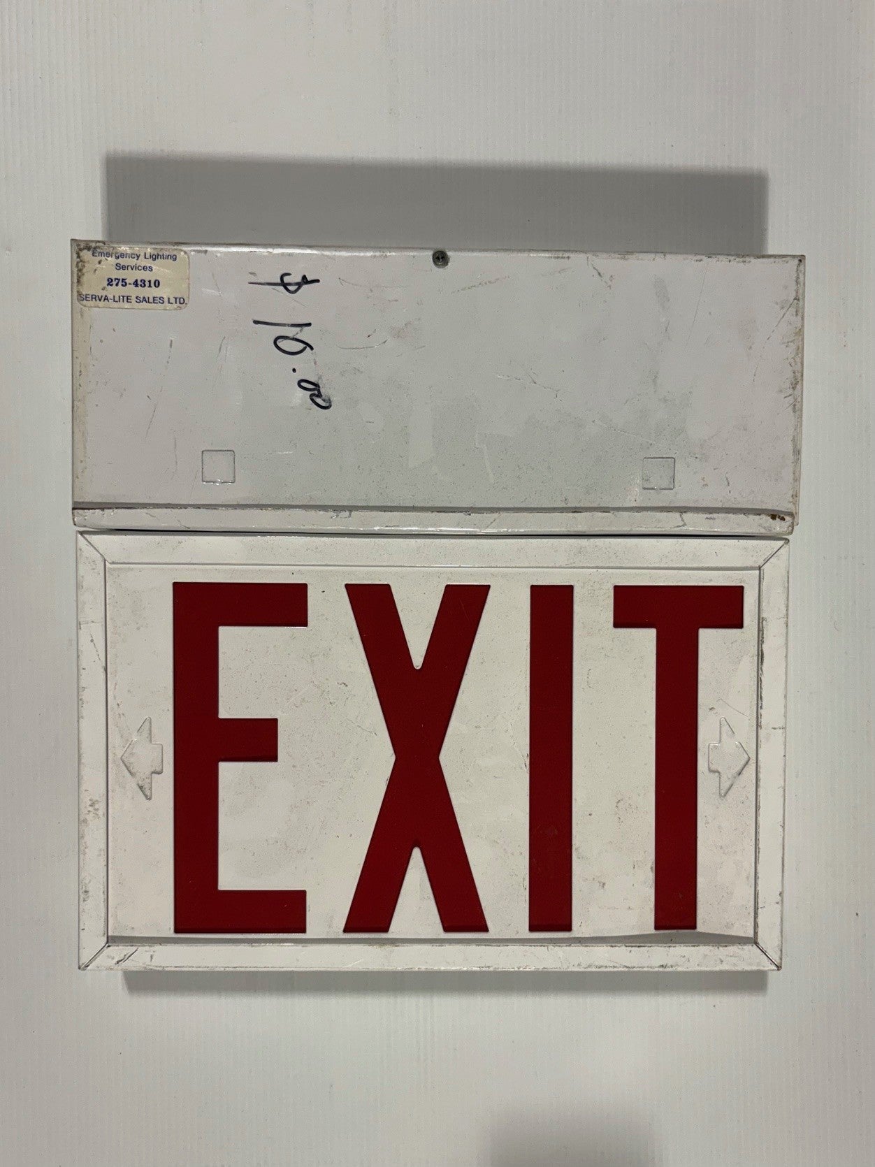 White metal exit sign with red acrylic, drop down ceiling mount