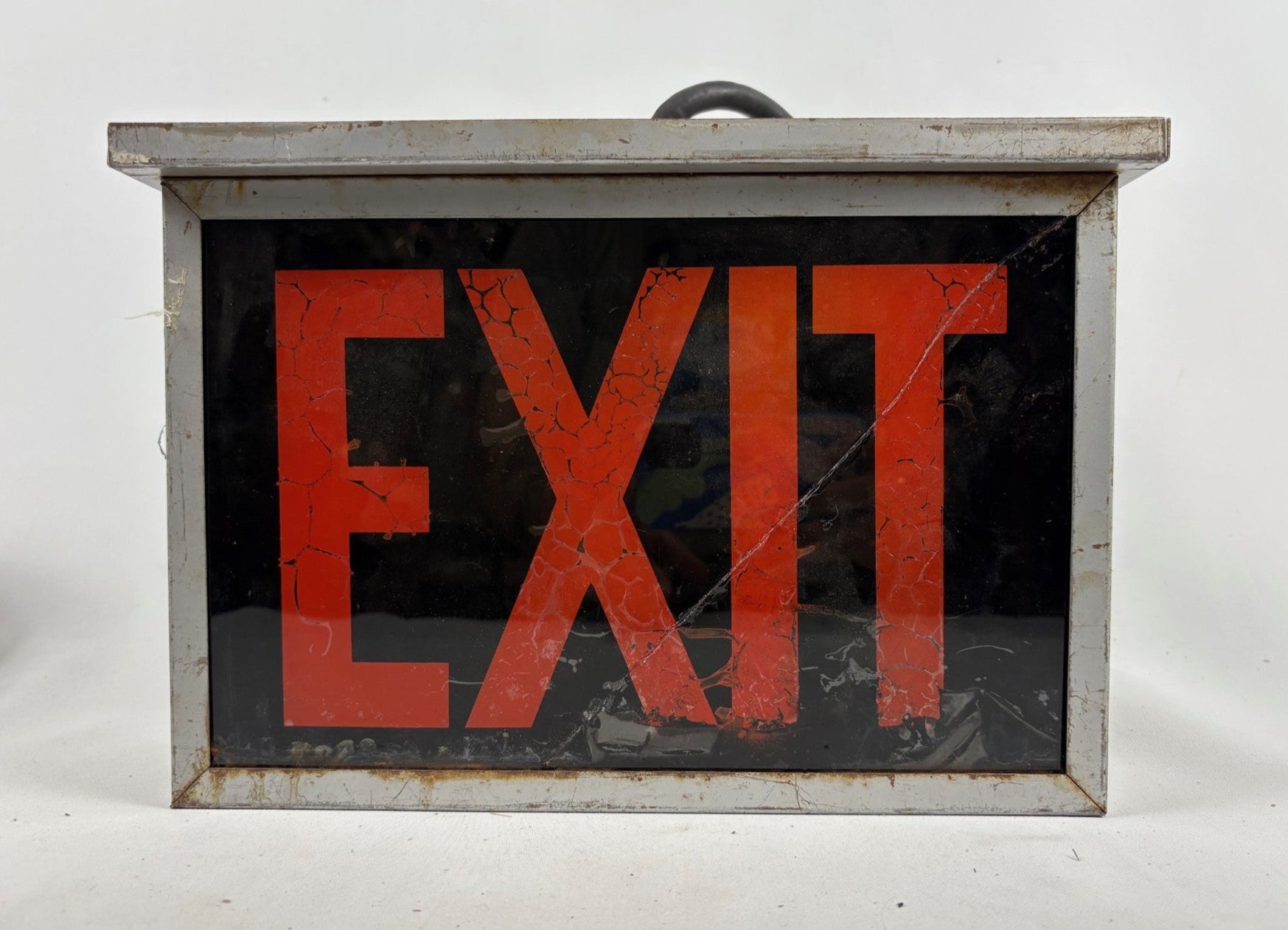 Metallic grey with black glass & red exit sign & tail plug on the top