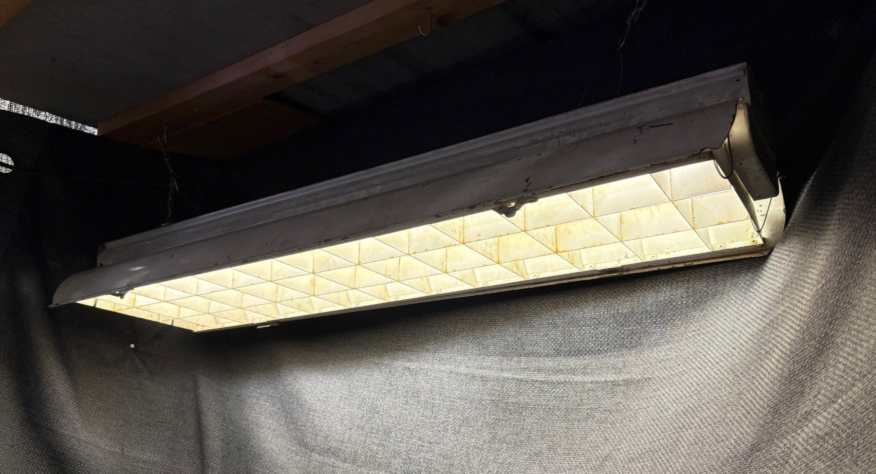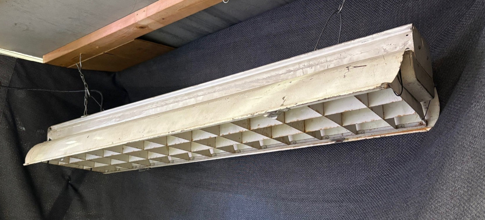 Hanging fluorescent Double T-12 with Egg Crate Diffuser & Tail Plug