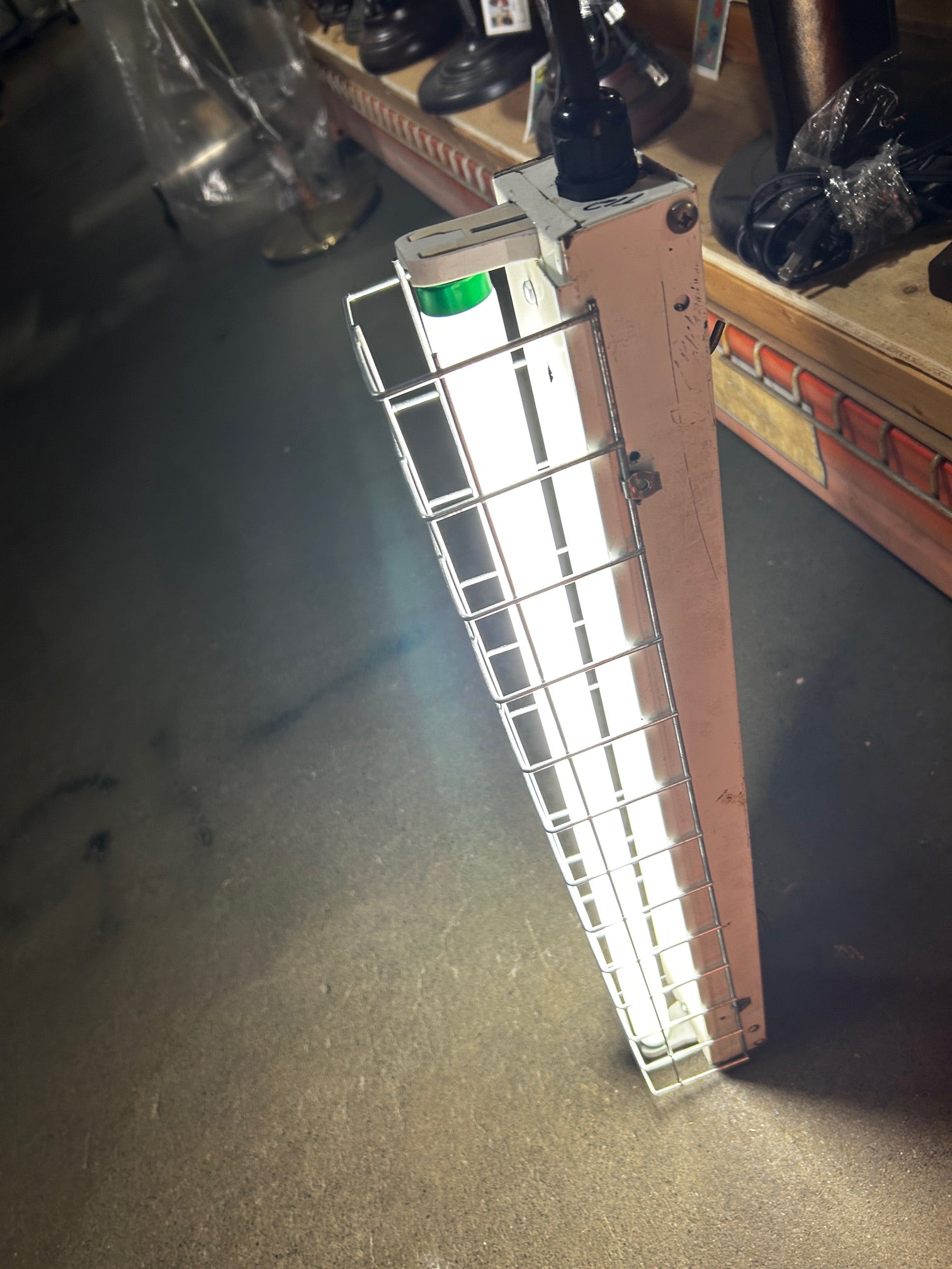Single 2 ft fluorescent strip with wire guards