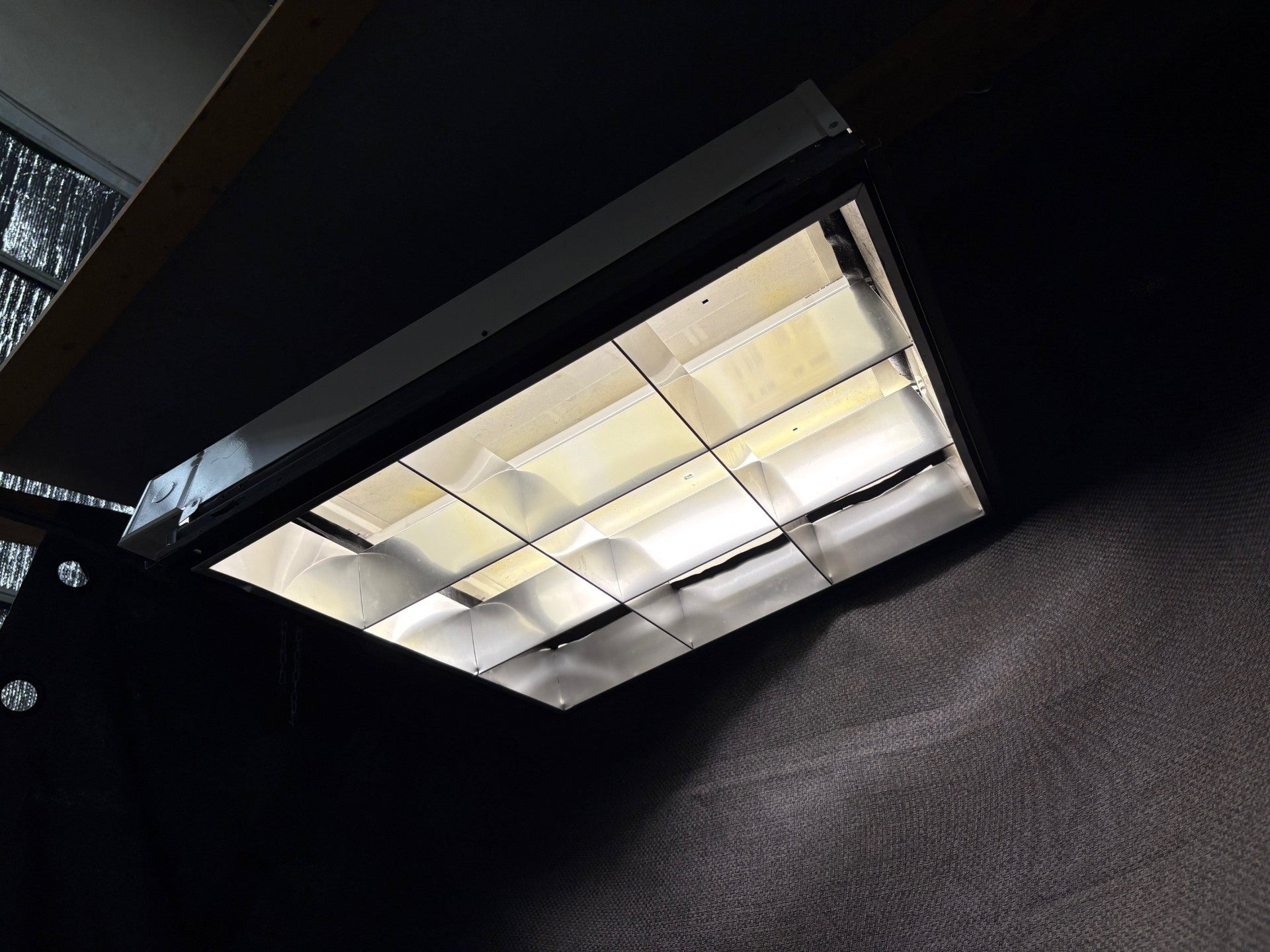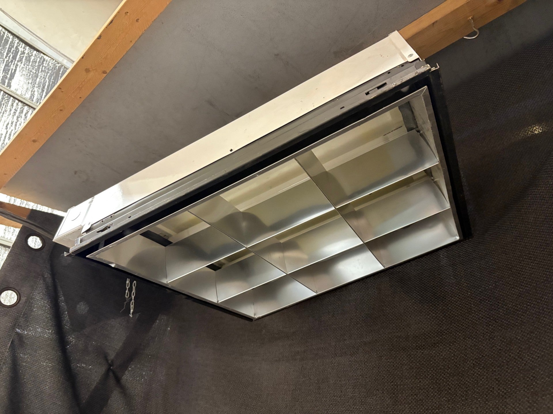 Hanging fluorescent Tri T-12 with Tail & and dual Plug, 3x3 egg crate