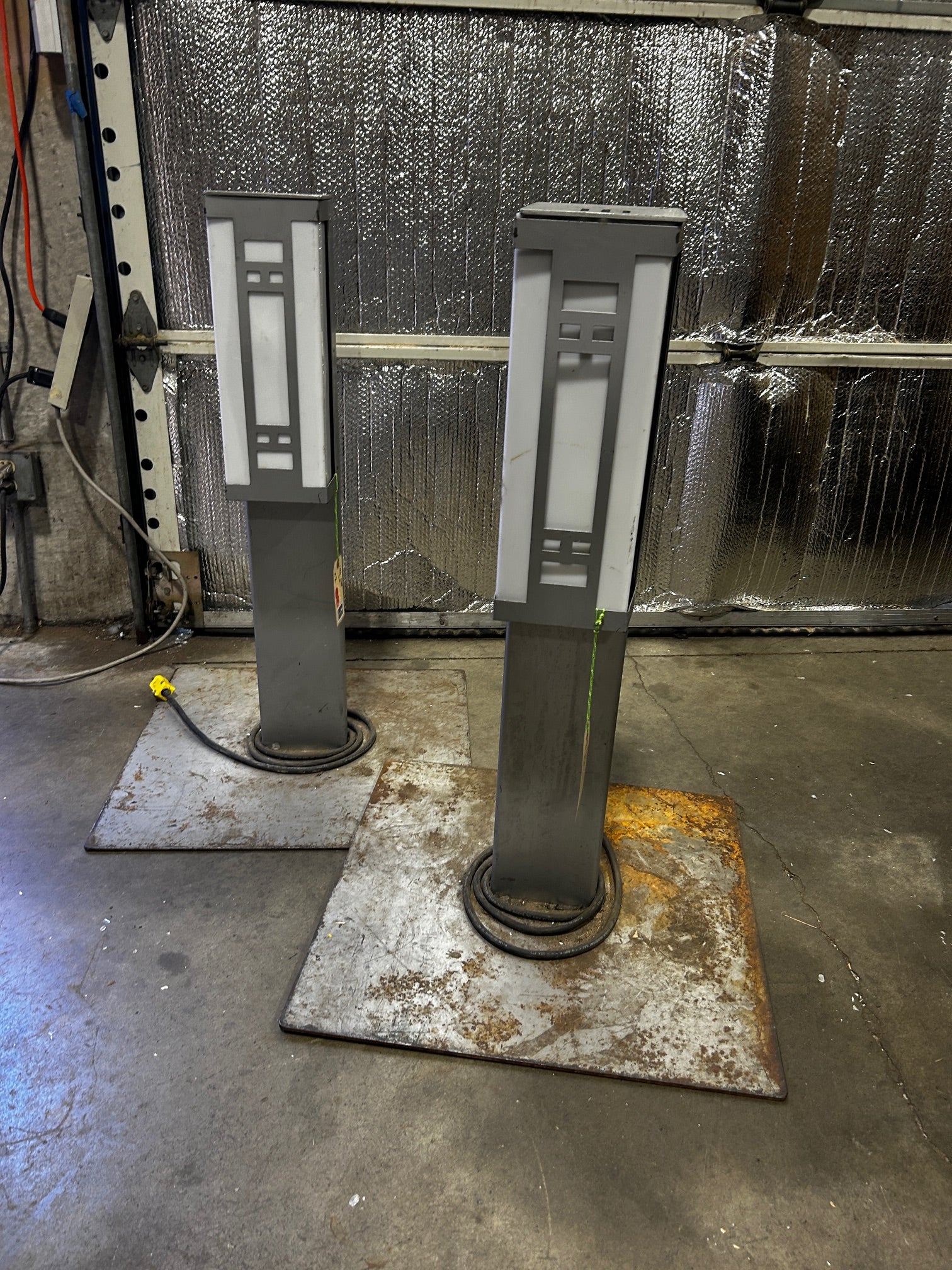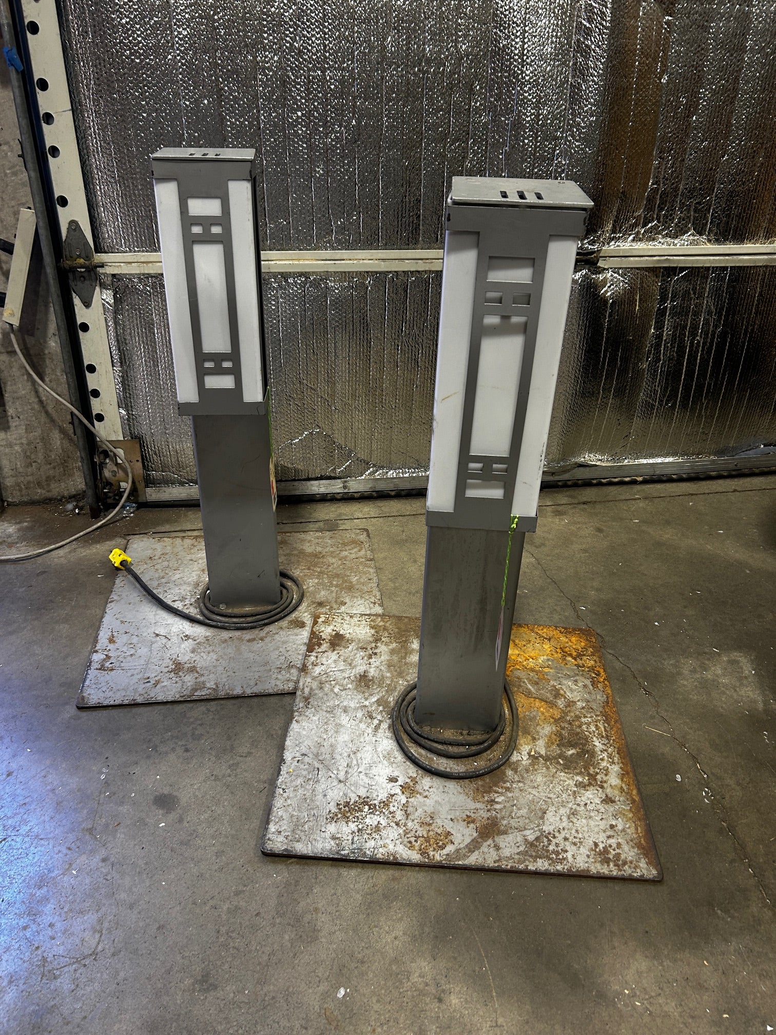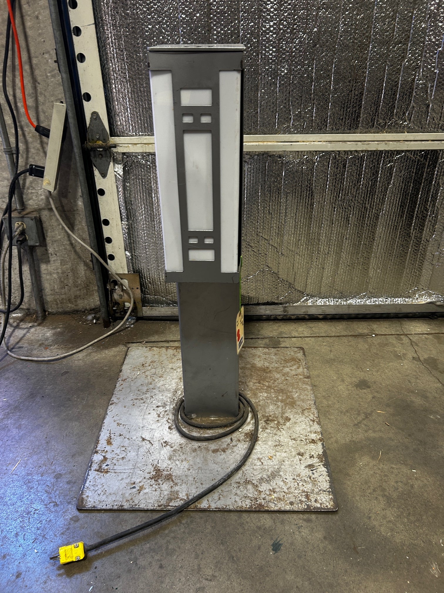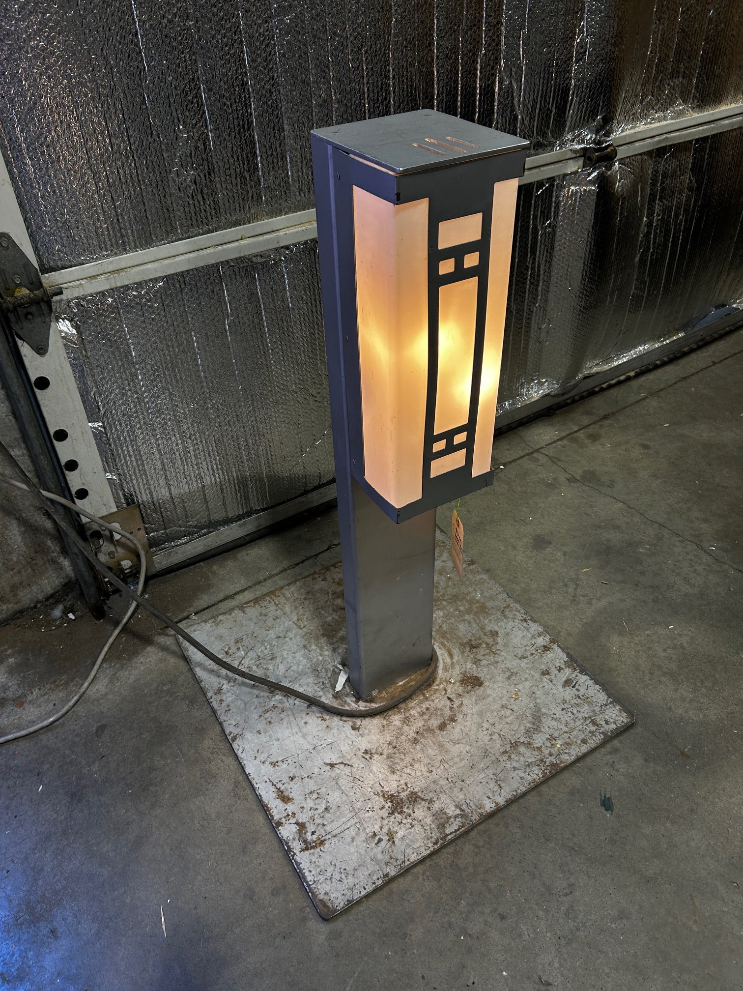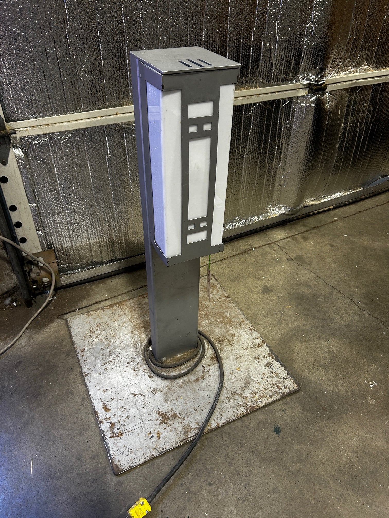 Art Deco brushed steel post with opal acrylic shade wall sconce & tail & plug