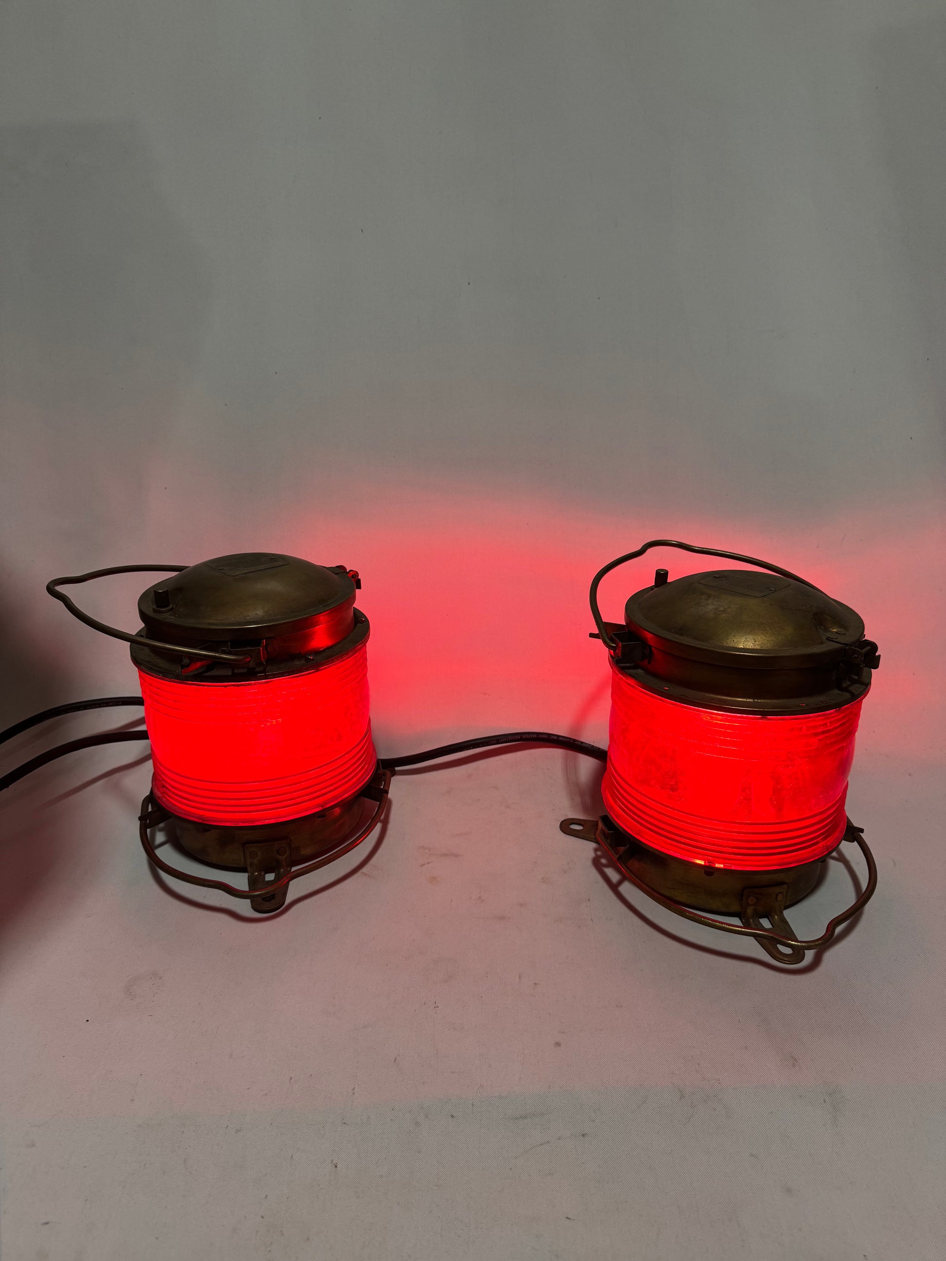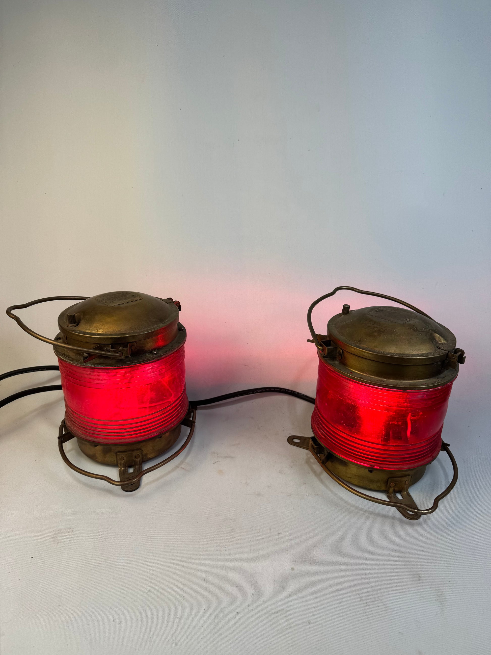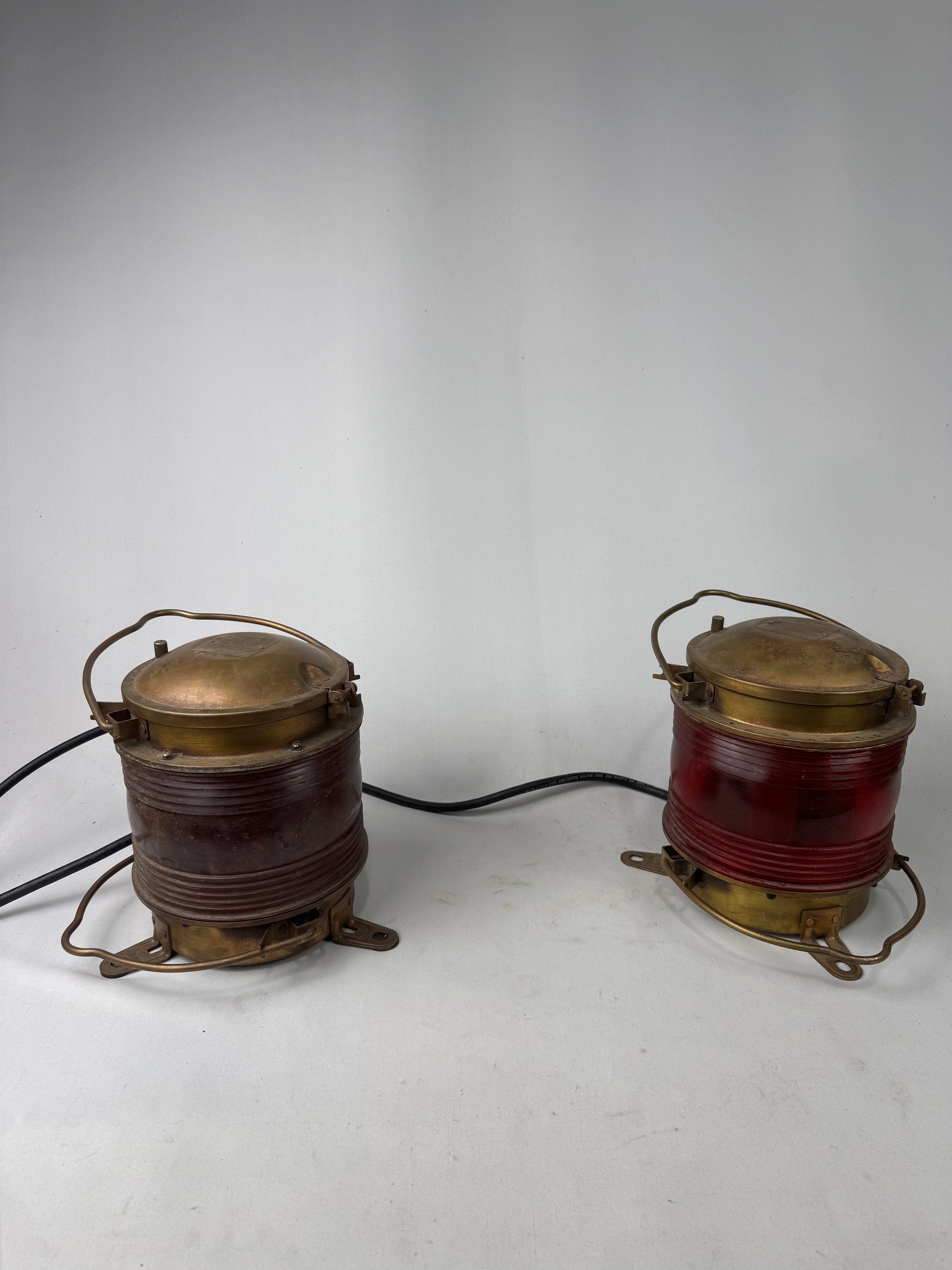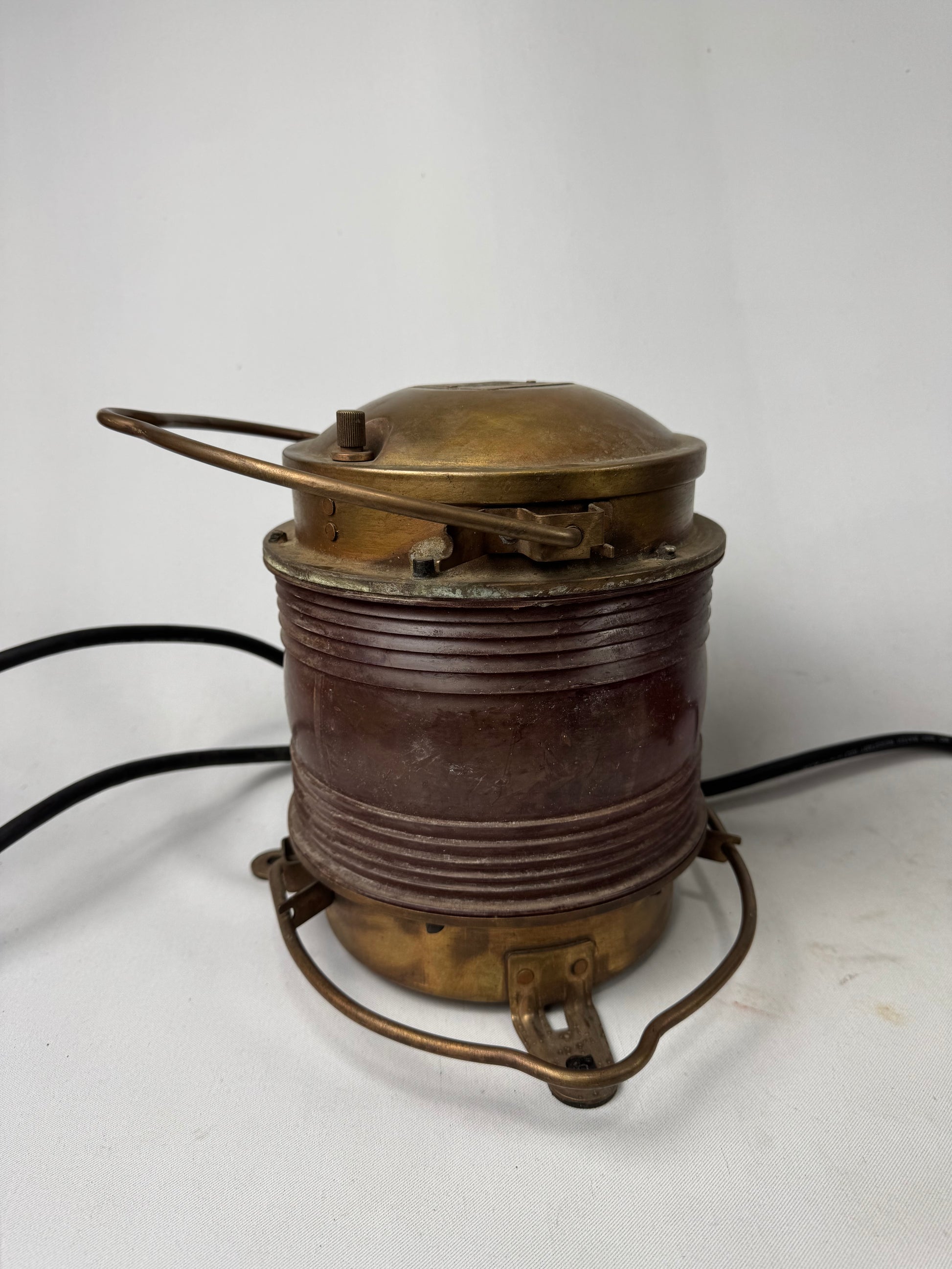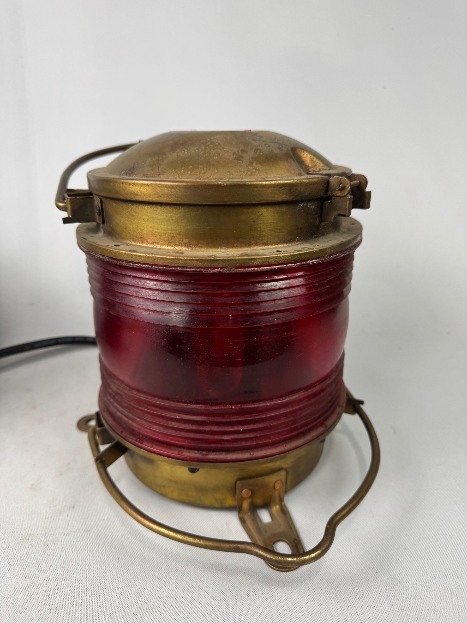 Vintage Industrial Brass Nautical Lantern with Red Fresno Lens. 2 available.