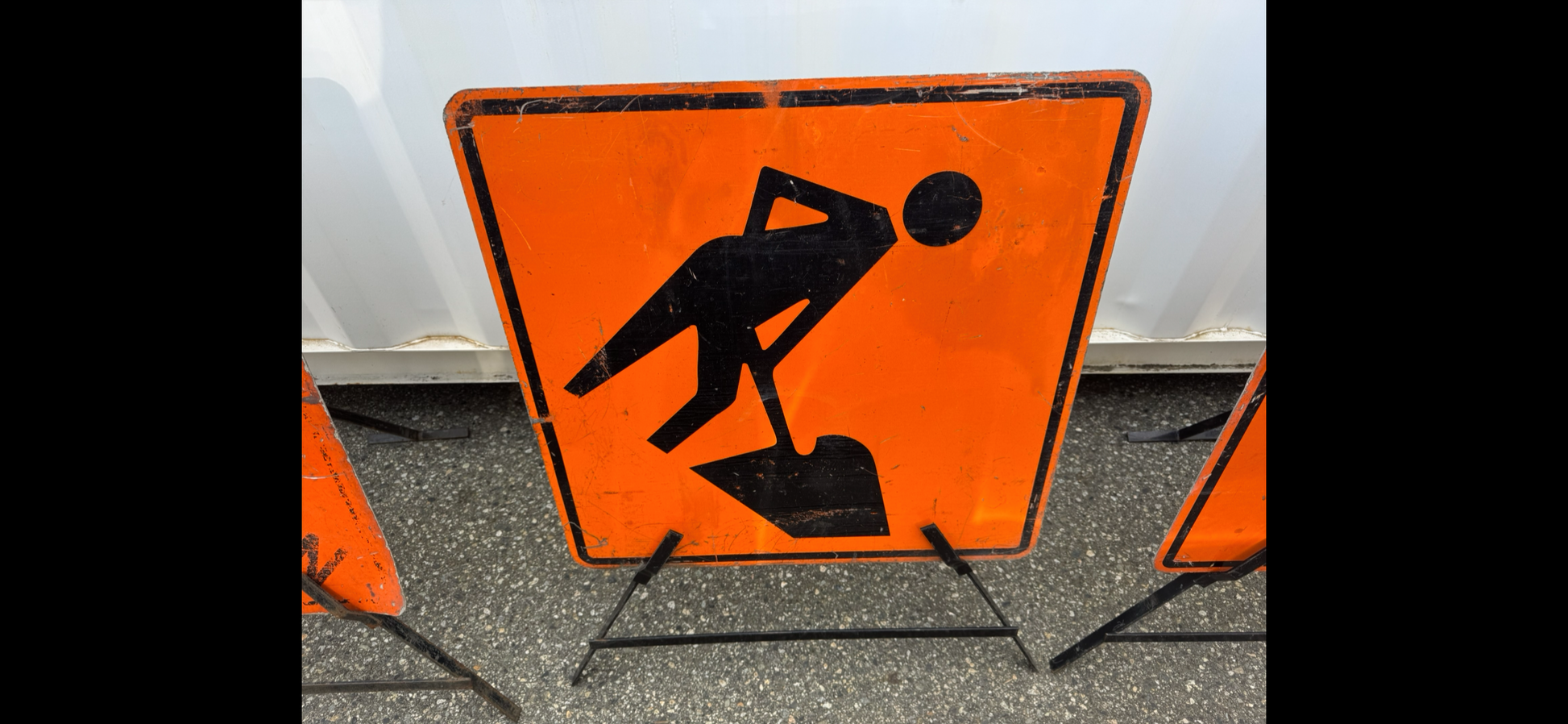 Construction Sign with Man Shoveling & Tripod Stand.