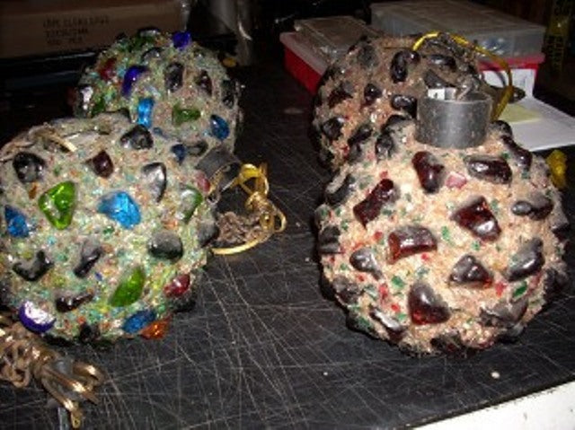 Mid-Century Swag pendant Lamp of Fiberglass Ball with Embedded chunks of glass 1950-1959