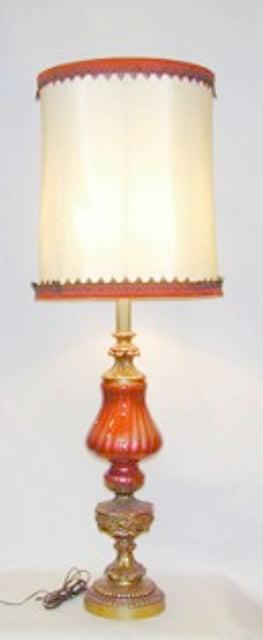 Table lamp Brass and Ruby Red Ceramic with Red silk shade