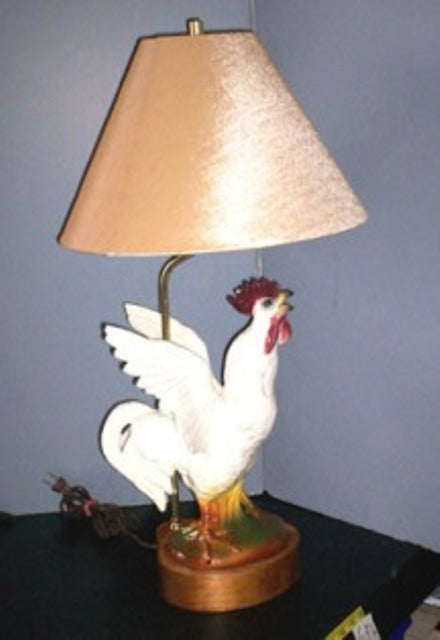 Table lamp White Porcelaine rooster with brown parchment shade. Has Been Glued.