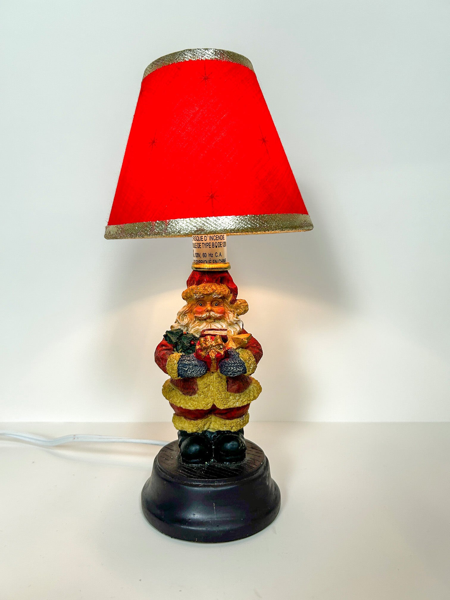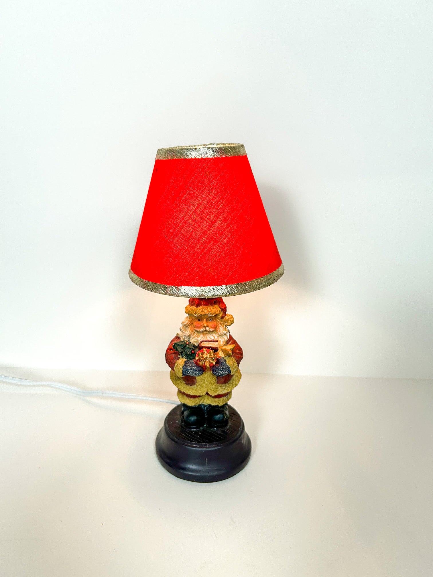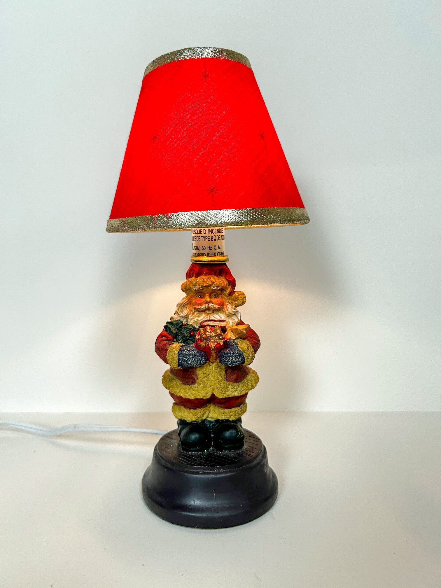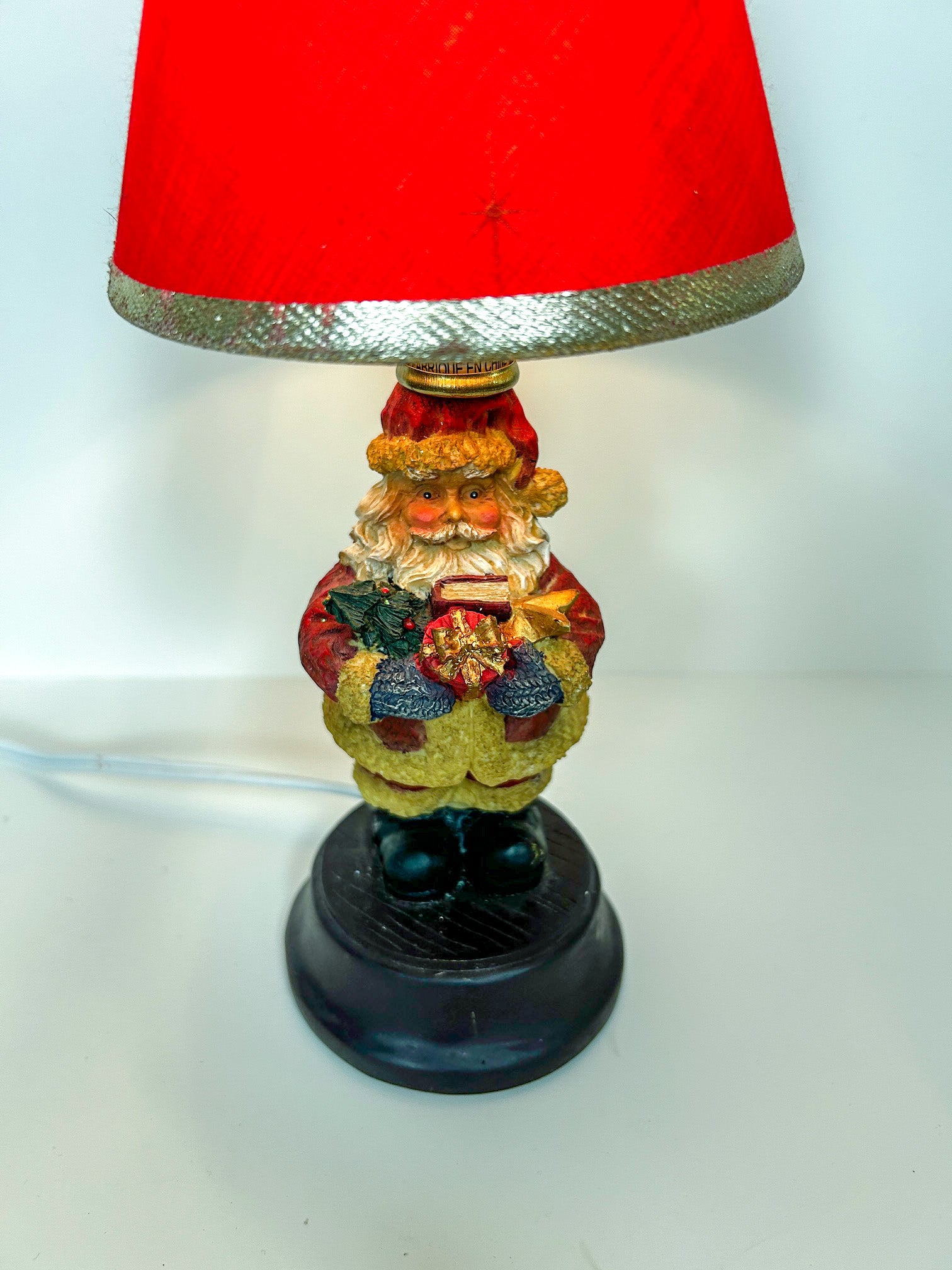 Small Santa Claus table lamp with a red clip on shade.
