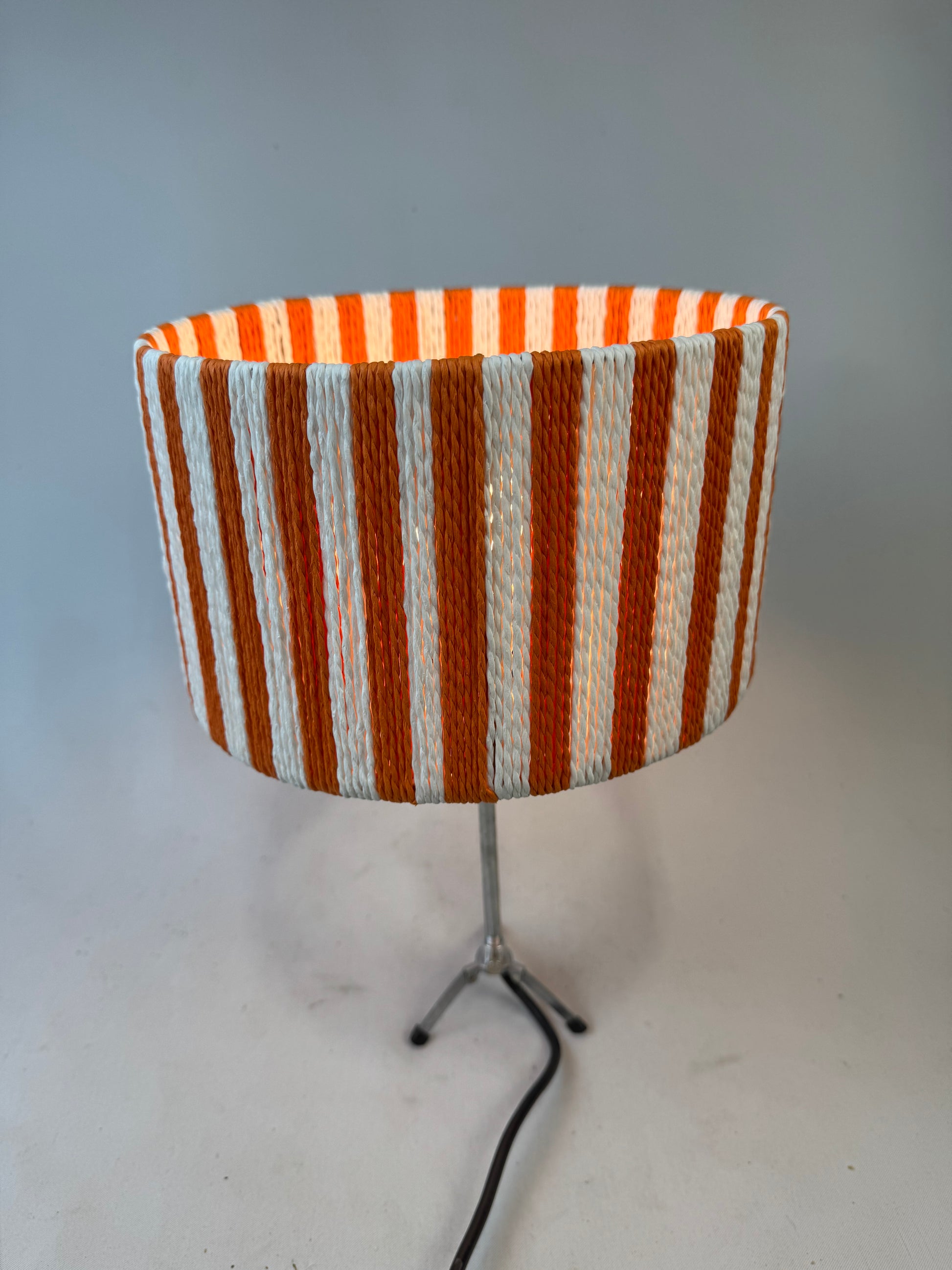 Kitsch Table Lamp Handspun Pinstripe shade with Wire Frame.