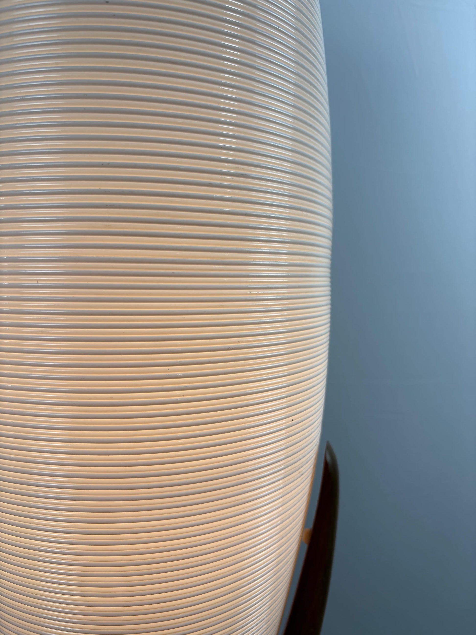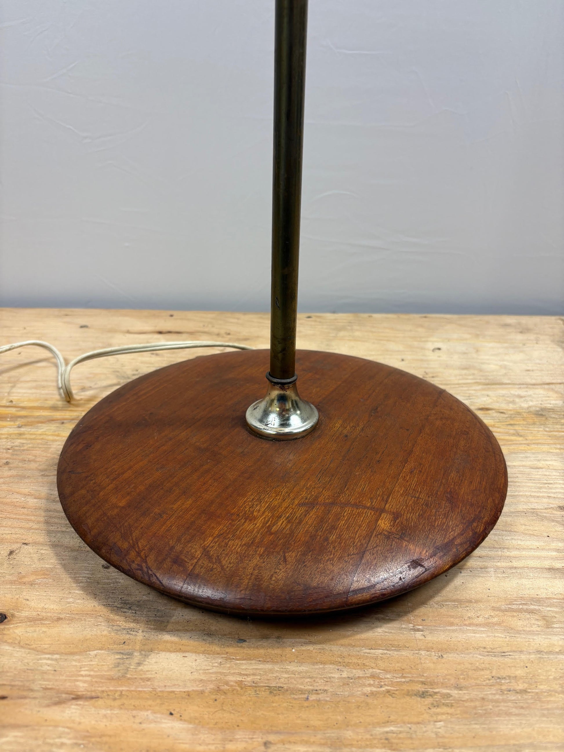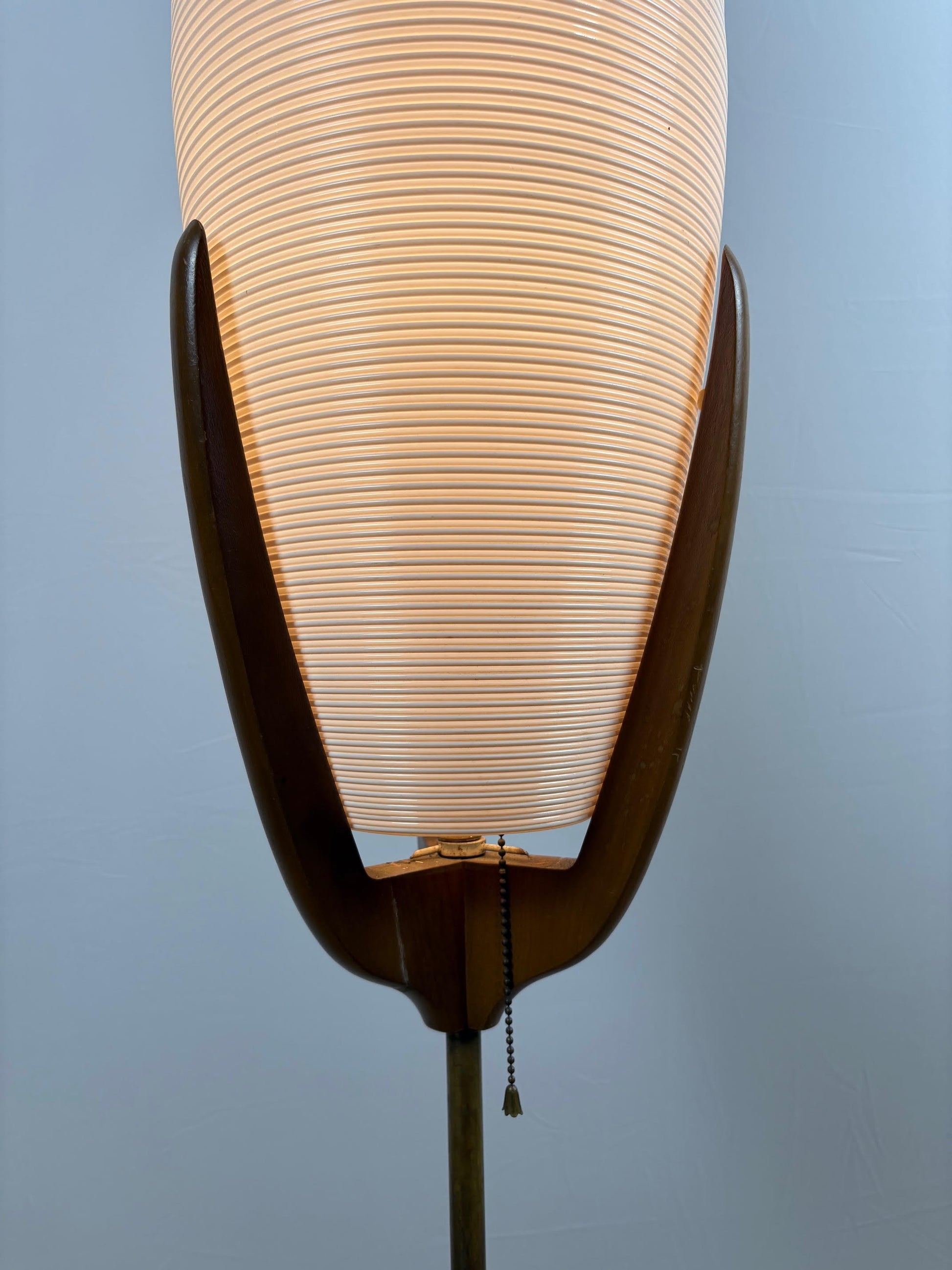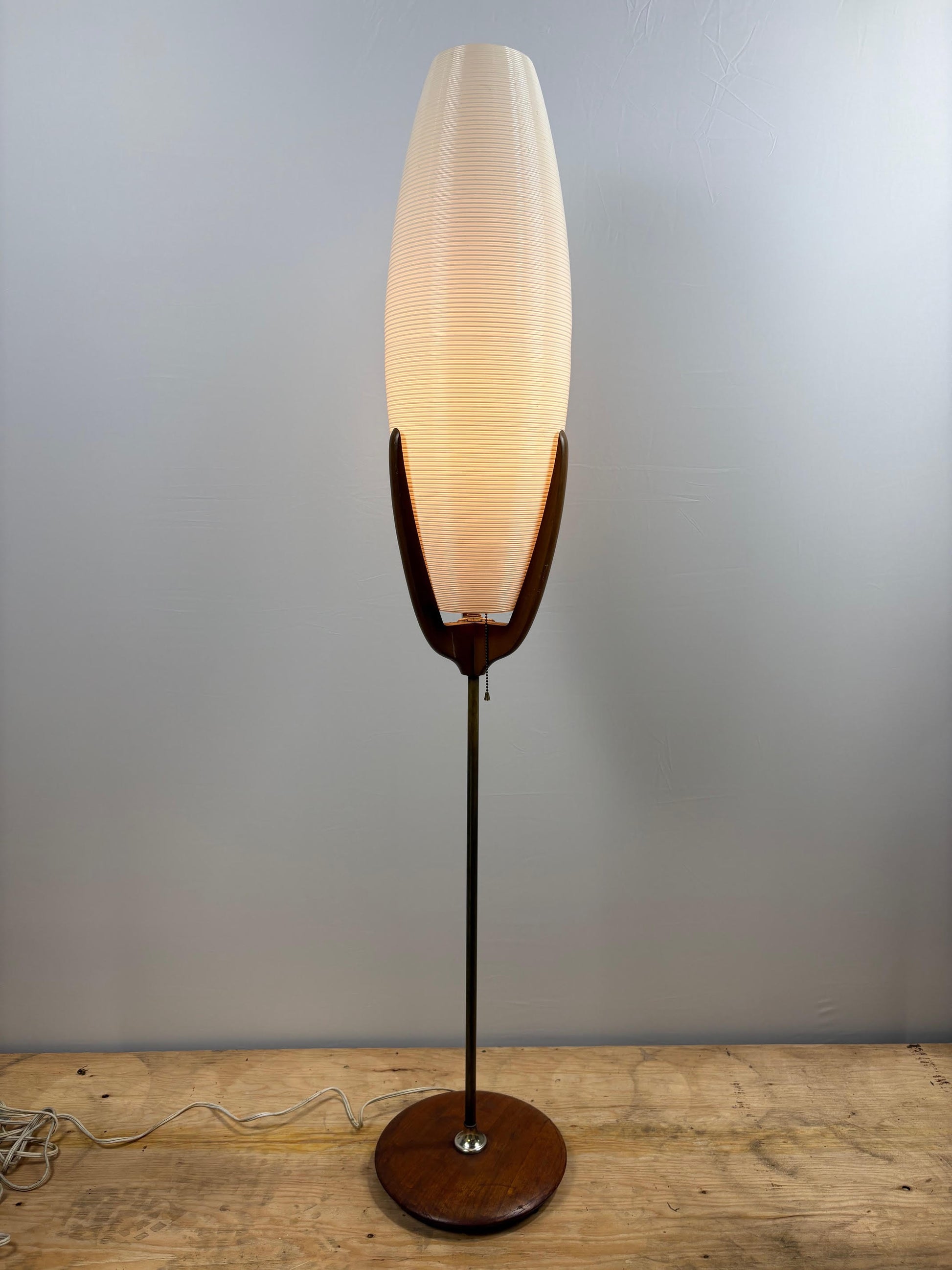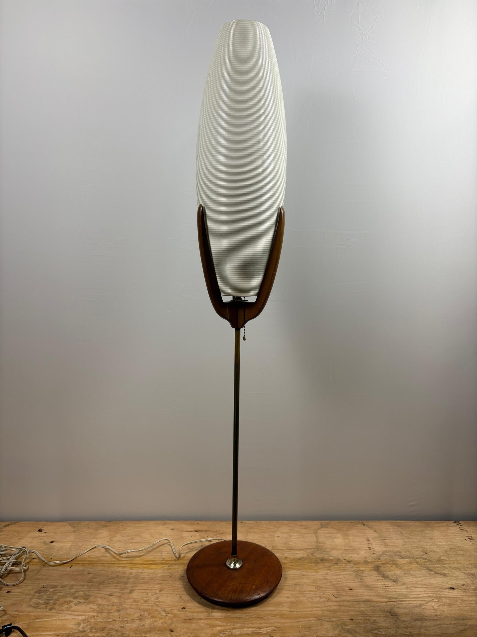Mid Century Modern Floor Lamp Danish Teak with Opal Acrylic Shade & Pullchain