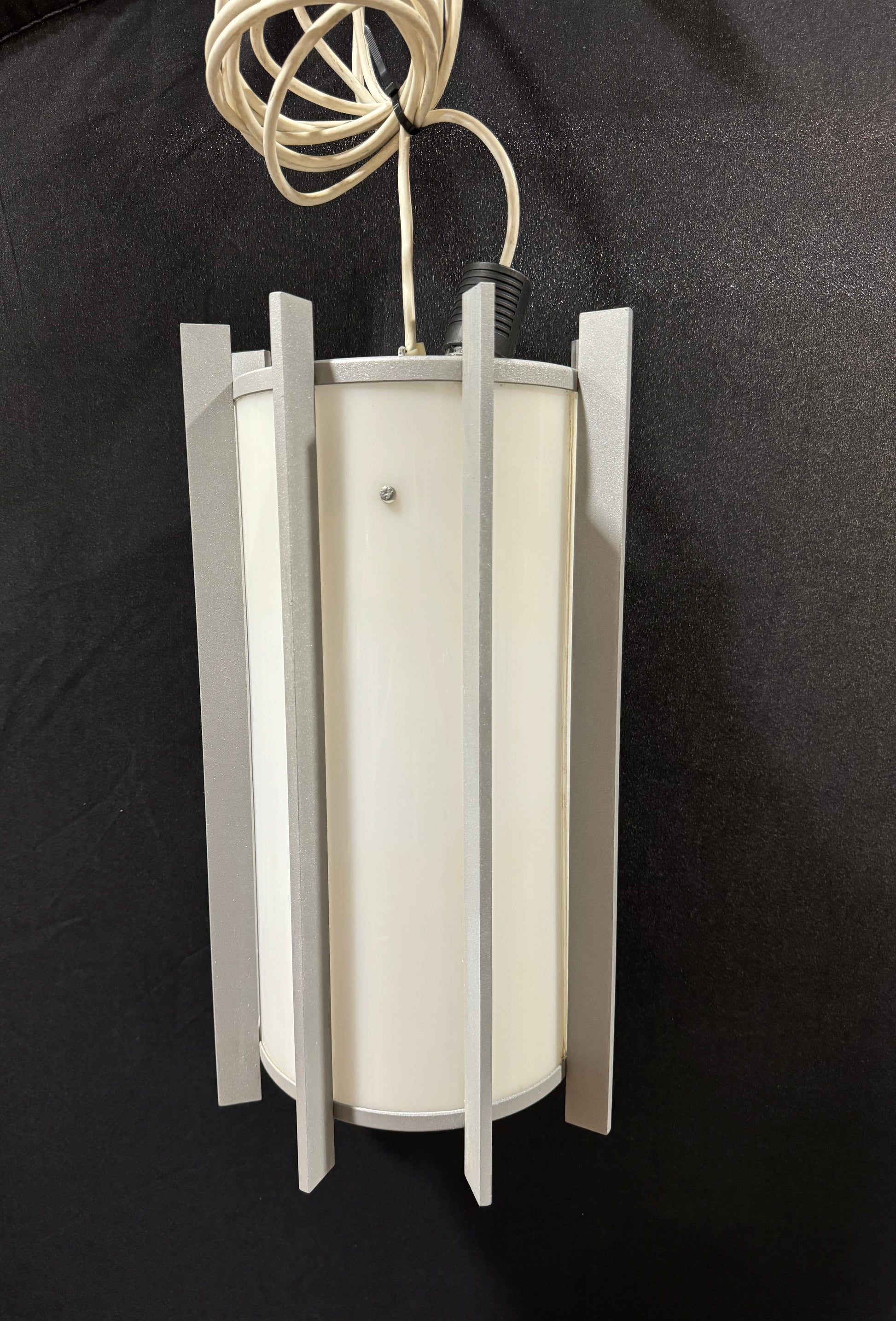 50' s Pendant Grey Powder Coated with Opal Plexi cylinder diffuser.
