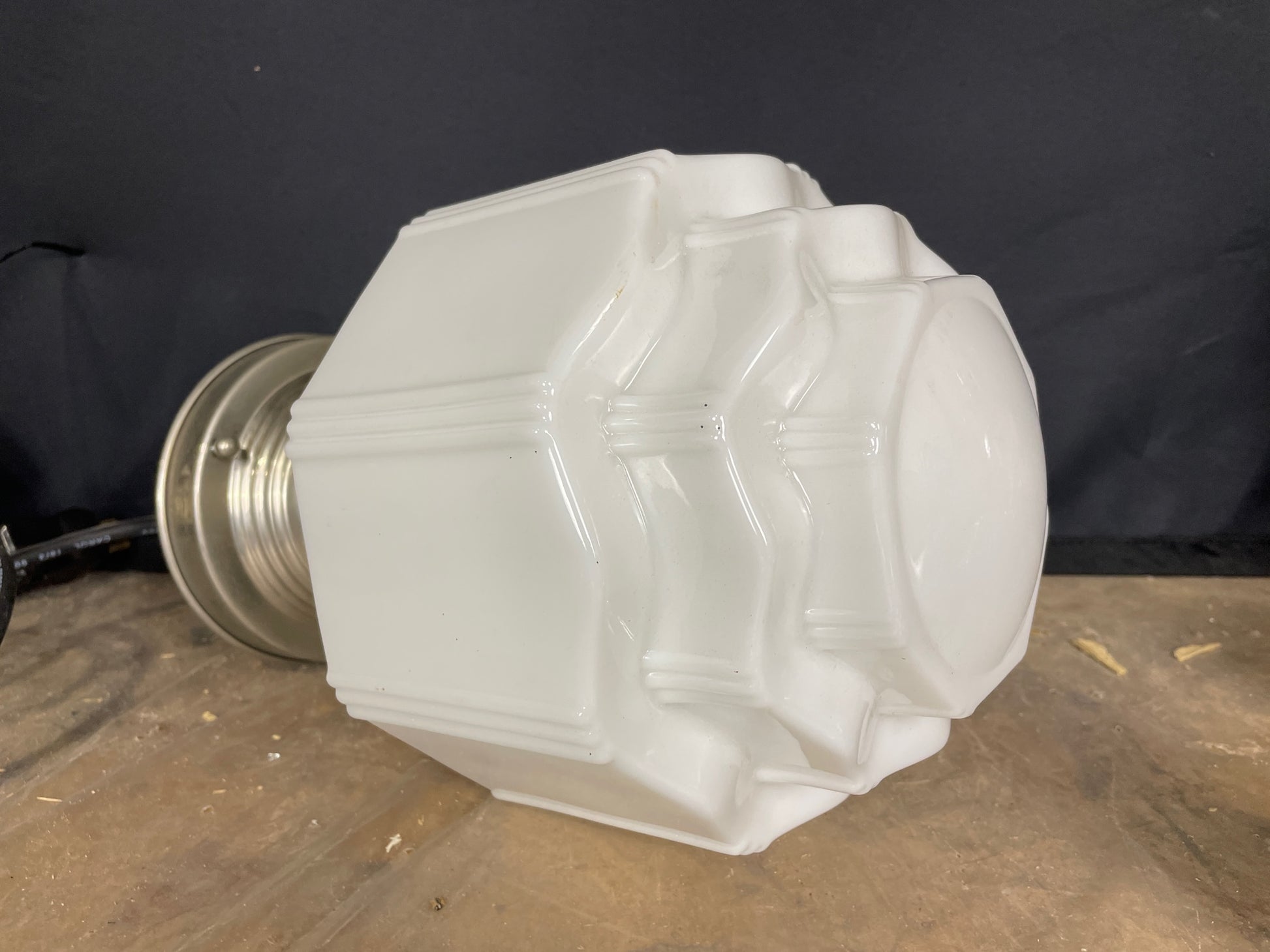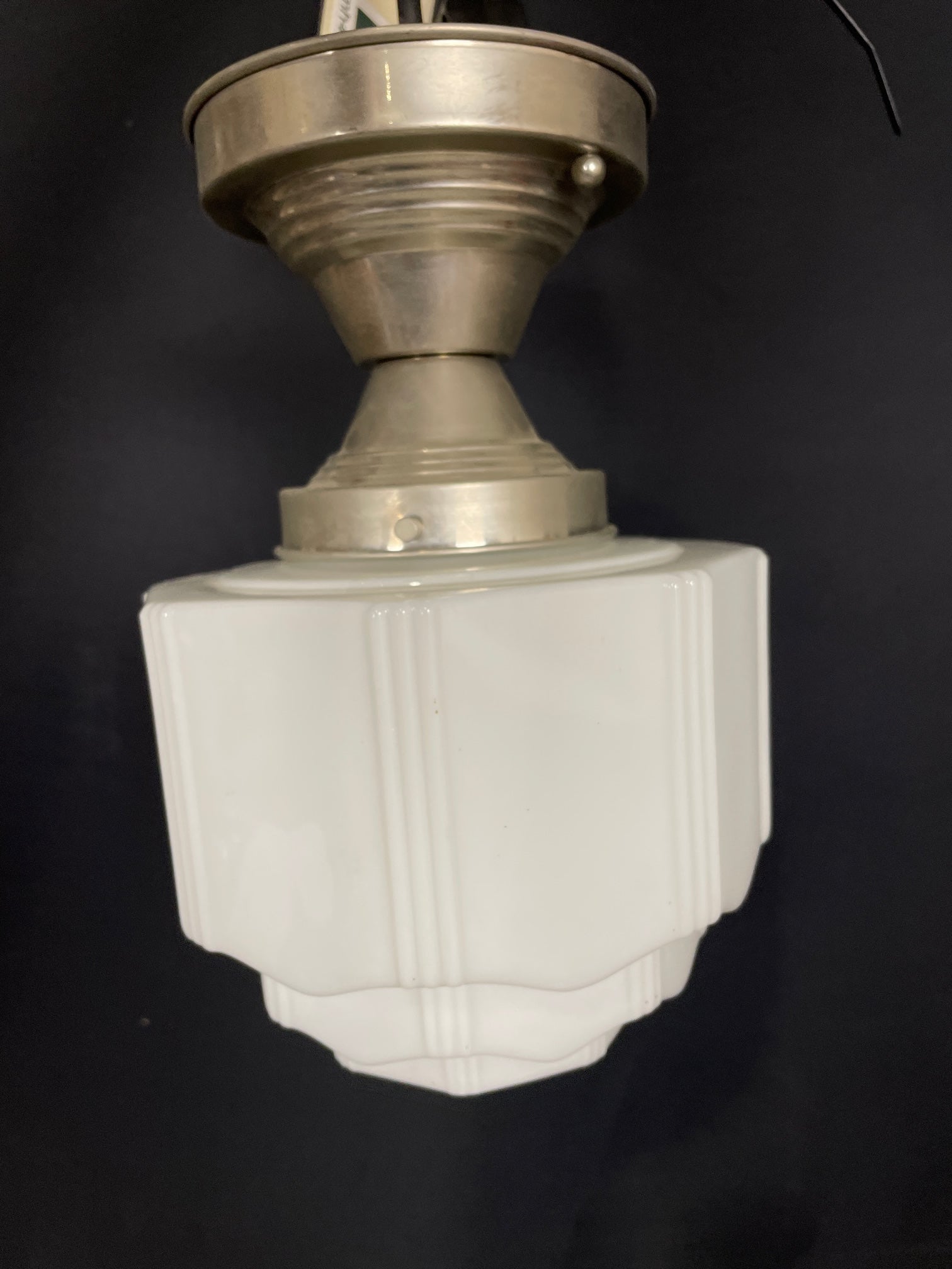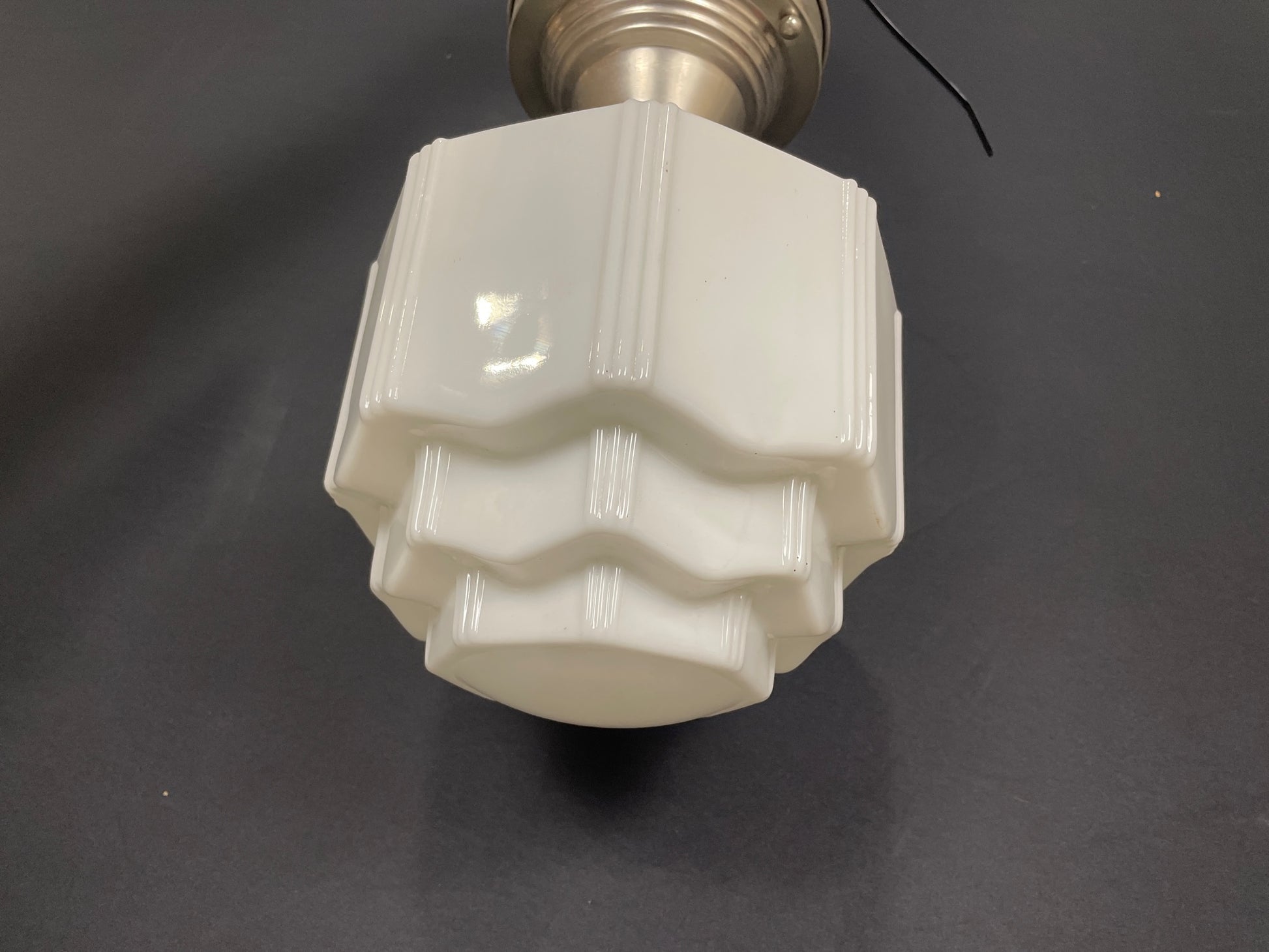 Vintage Art Deco Milk Glass 3 Tier Ceiling Light Fixture on Nickel ceiling mount