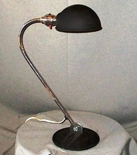 Desk Lamp Chrome Gooseneck with Grey Parabolic metal shade