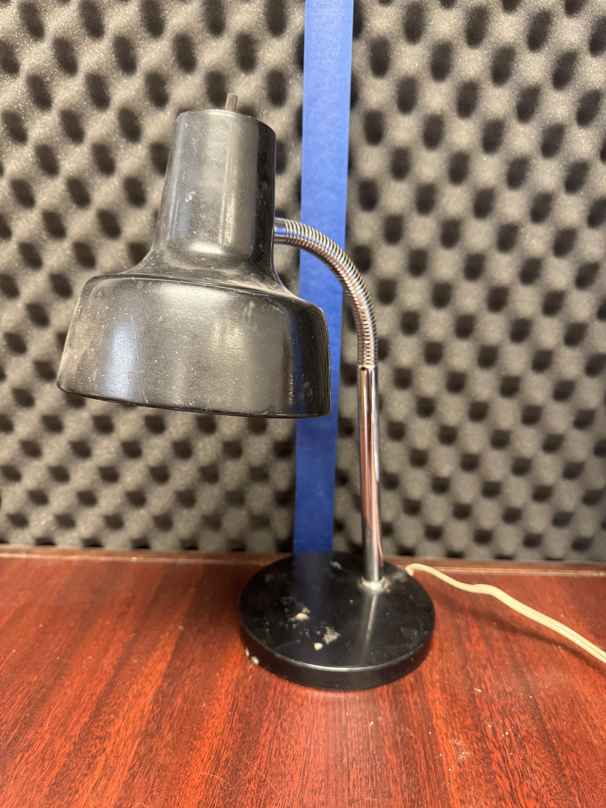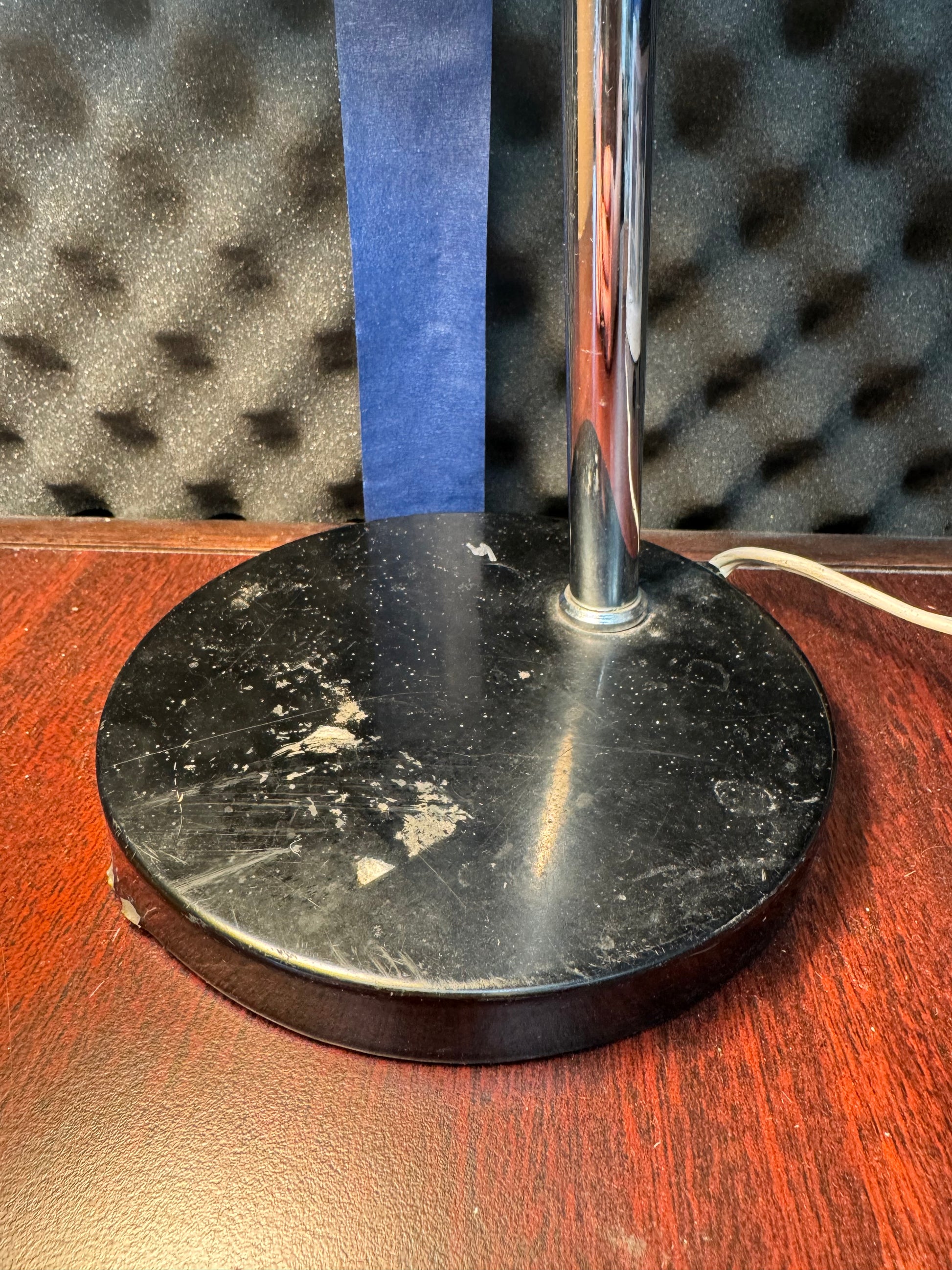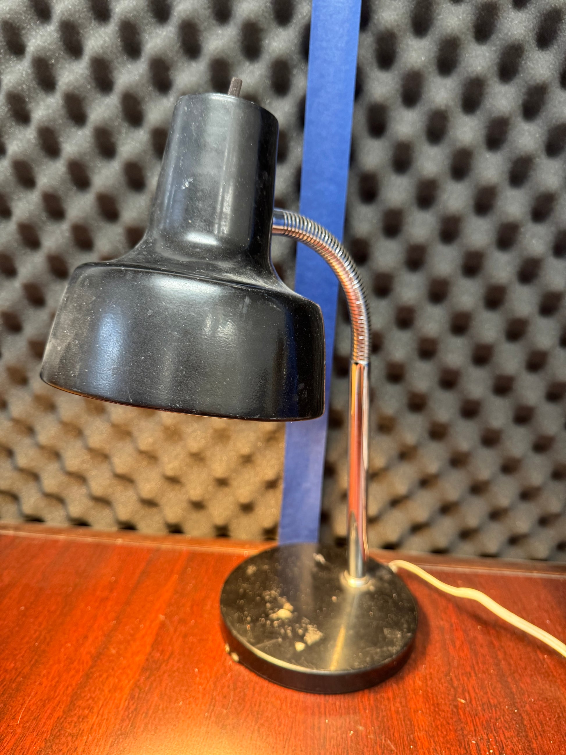 Traditional Desk Lamp Black with Chrome Gooseneck. Has Been Aged.