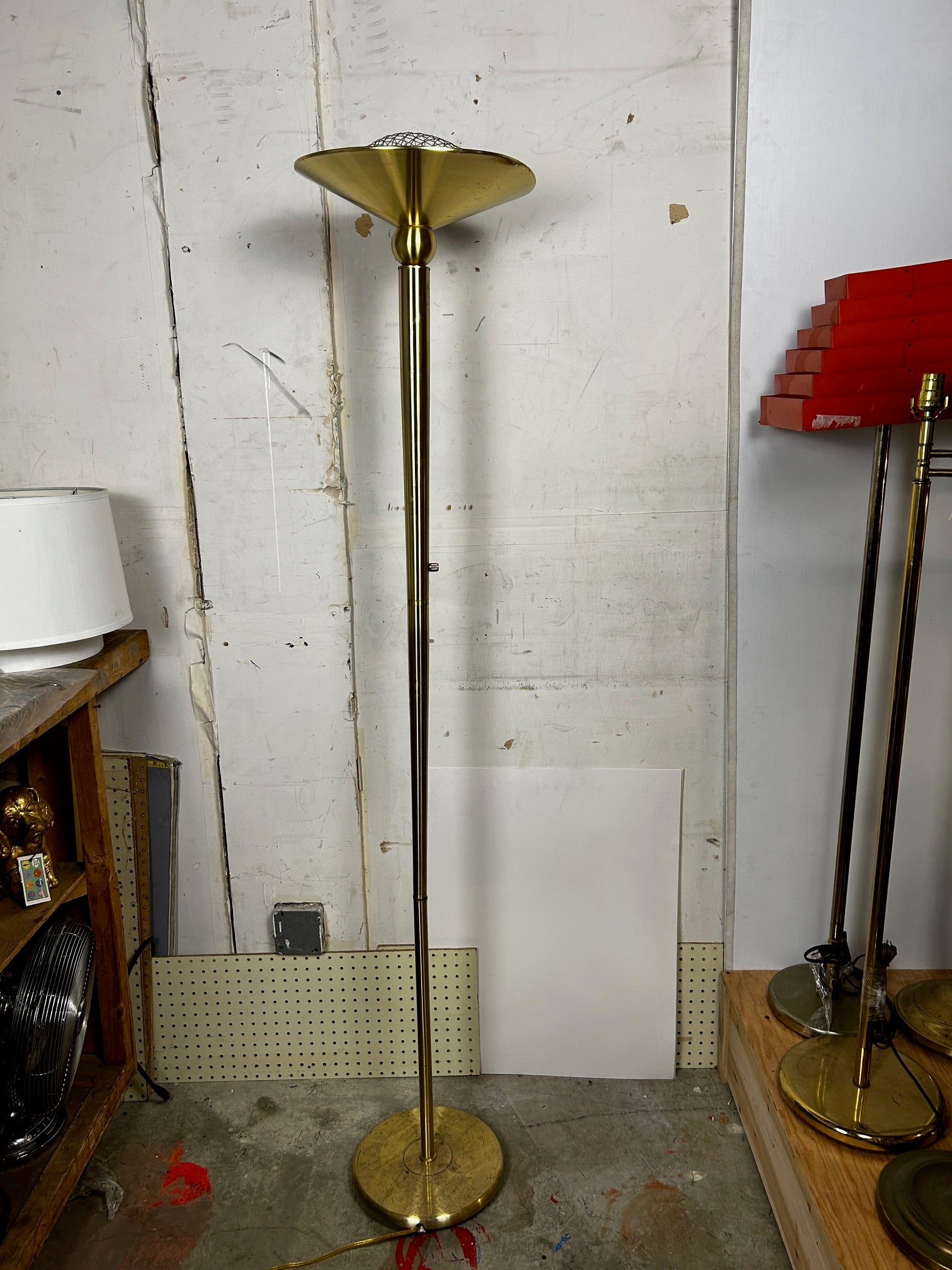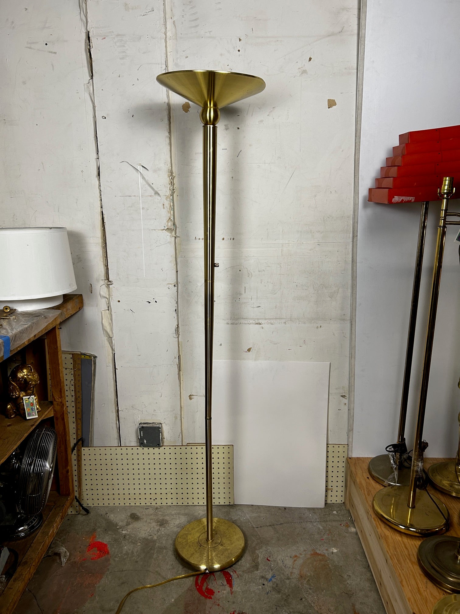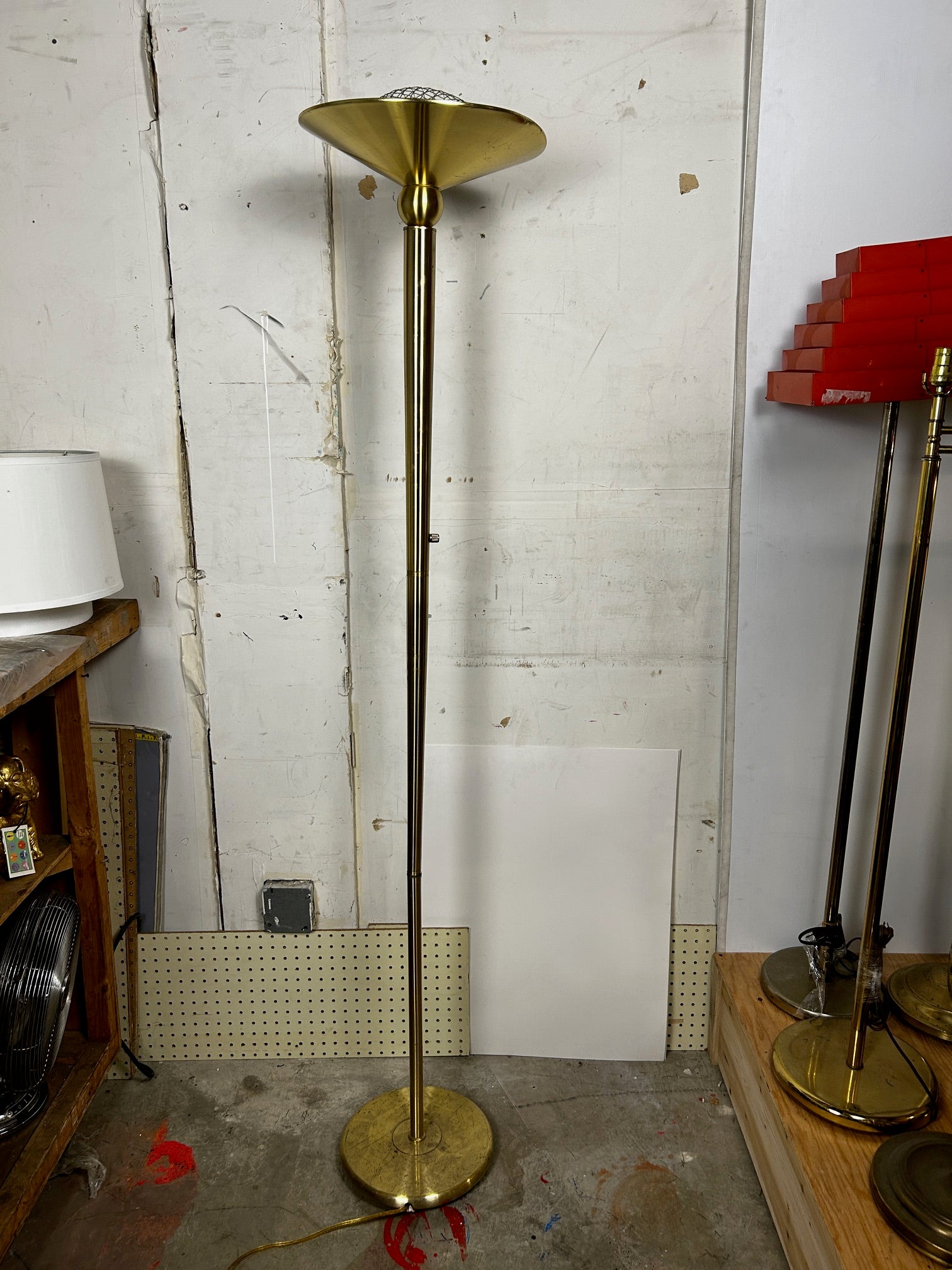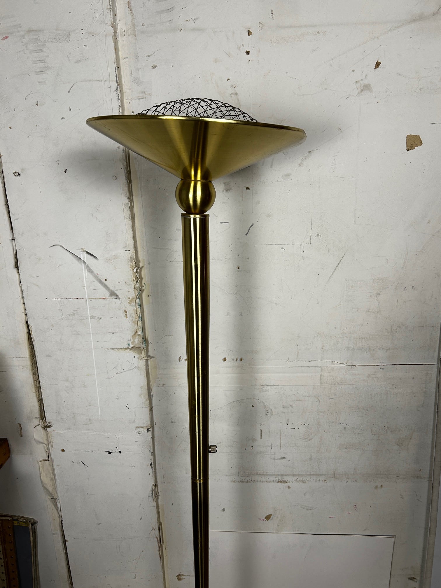 Floor Lamp Brass Torchier with Halogen bulb and wire guard.