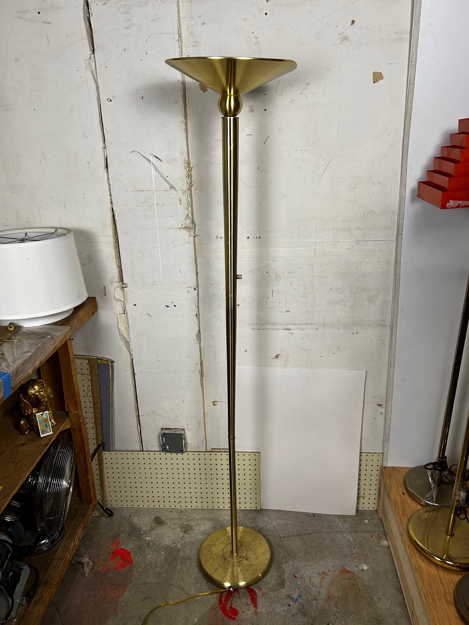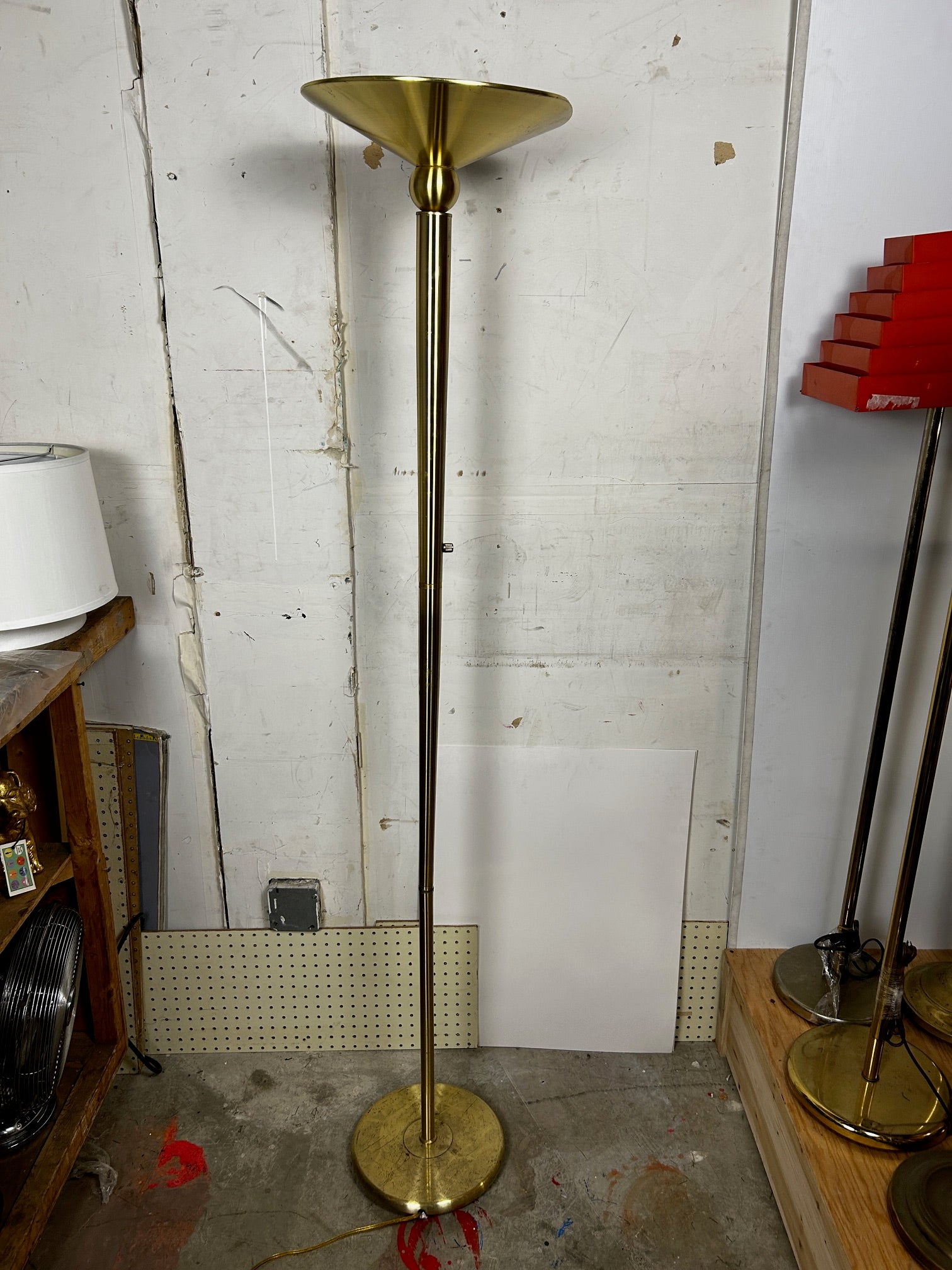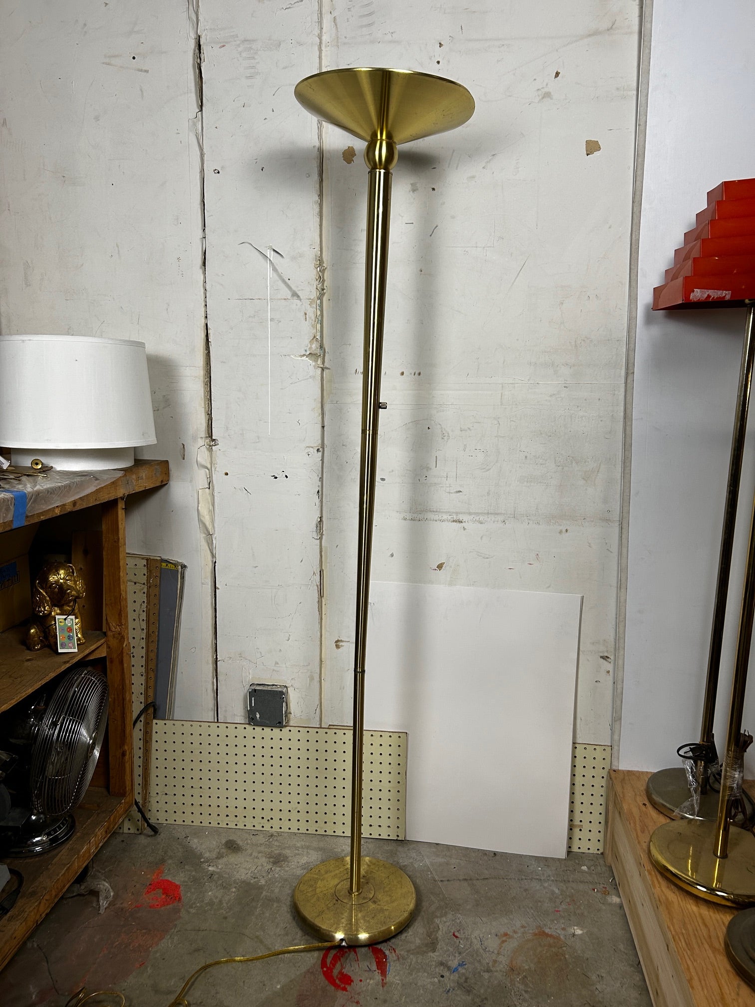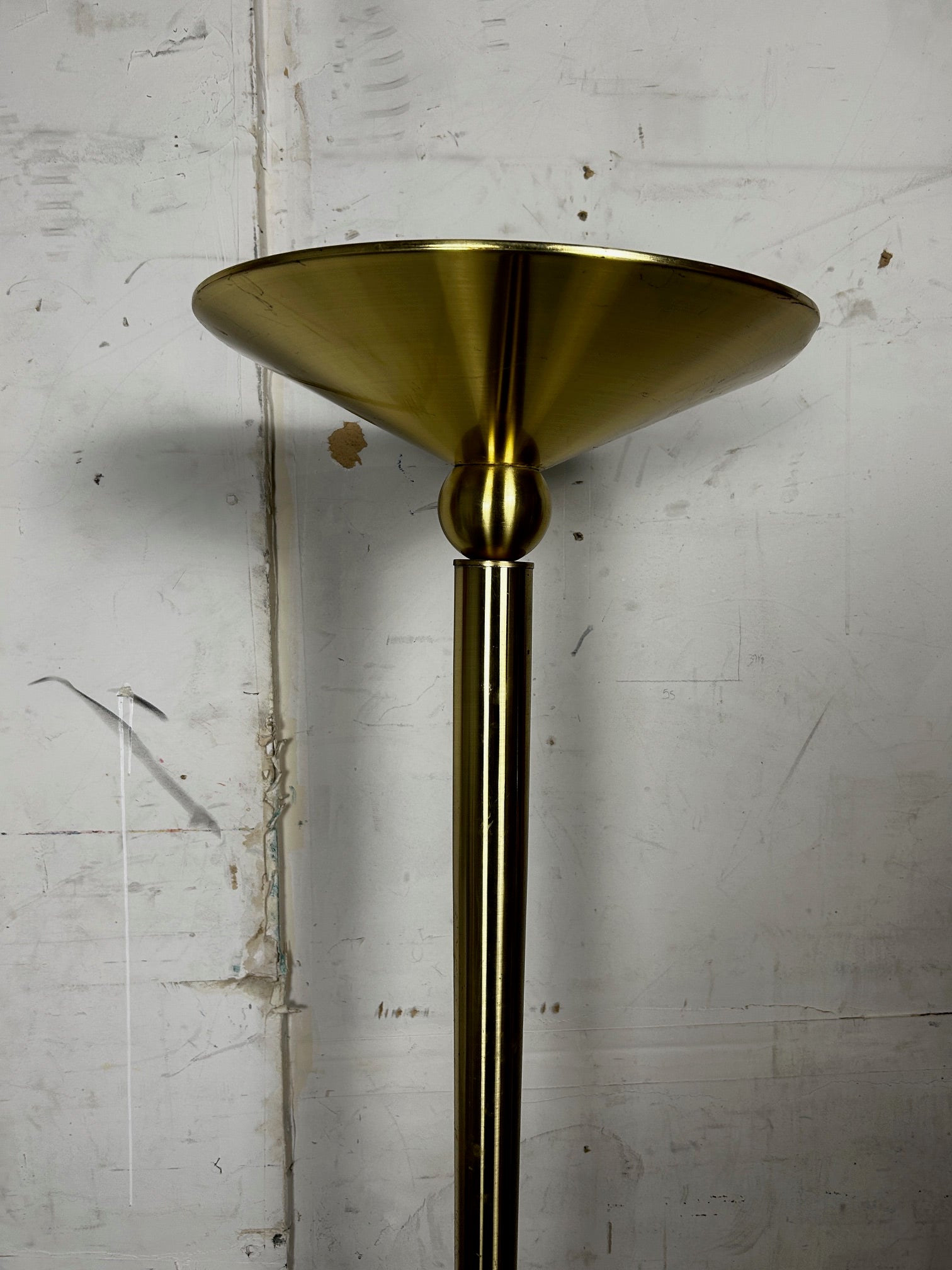 Floor Lamp Brass Torchier with Halogen bulb and wire guard.