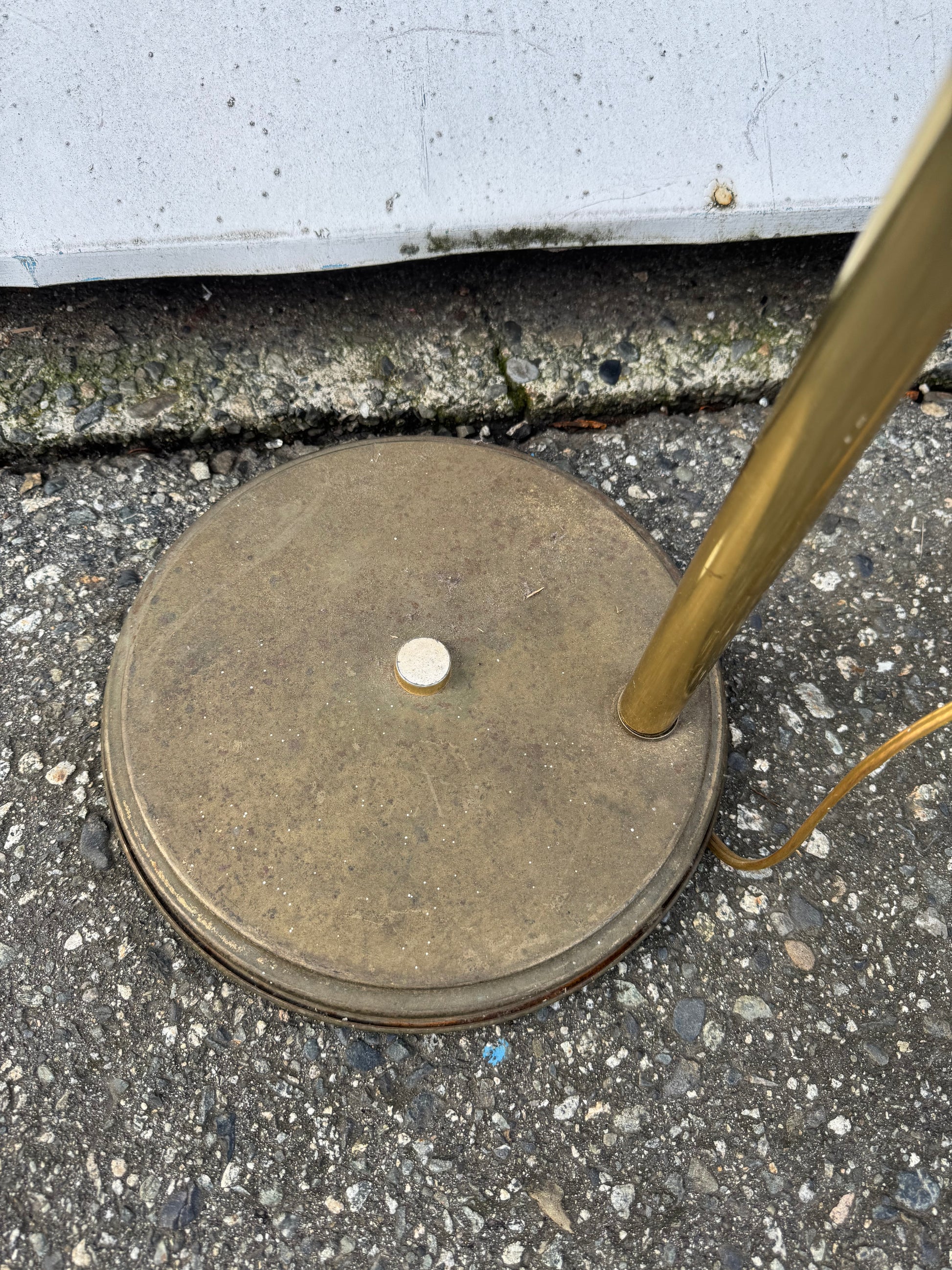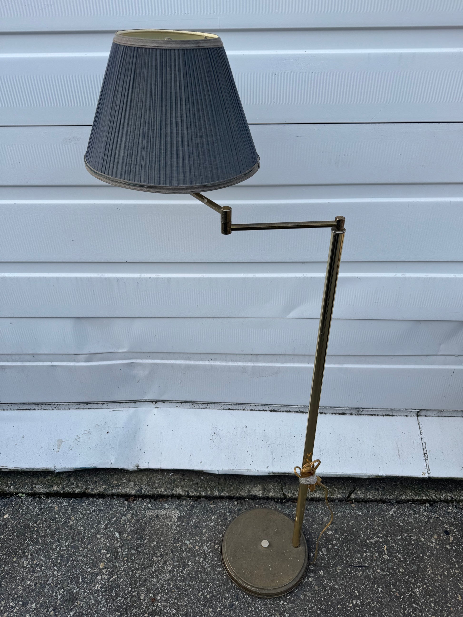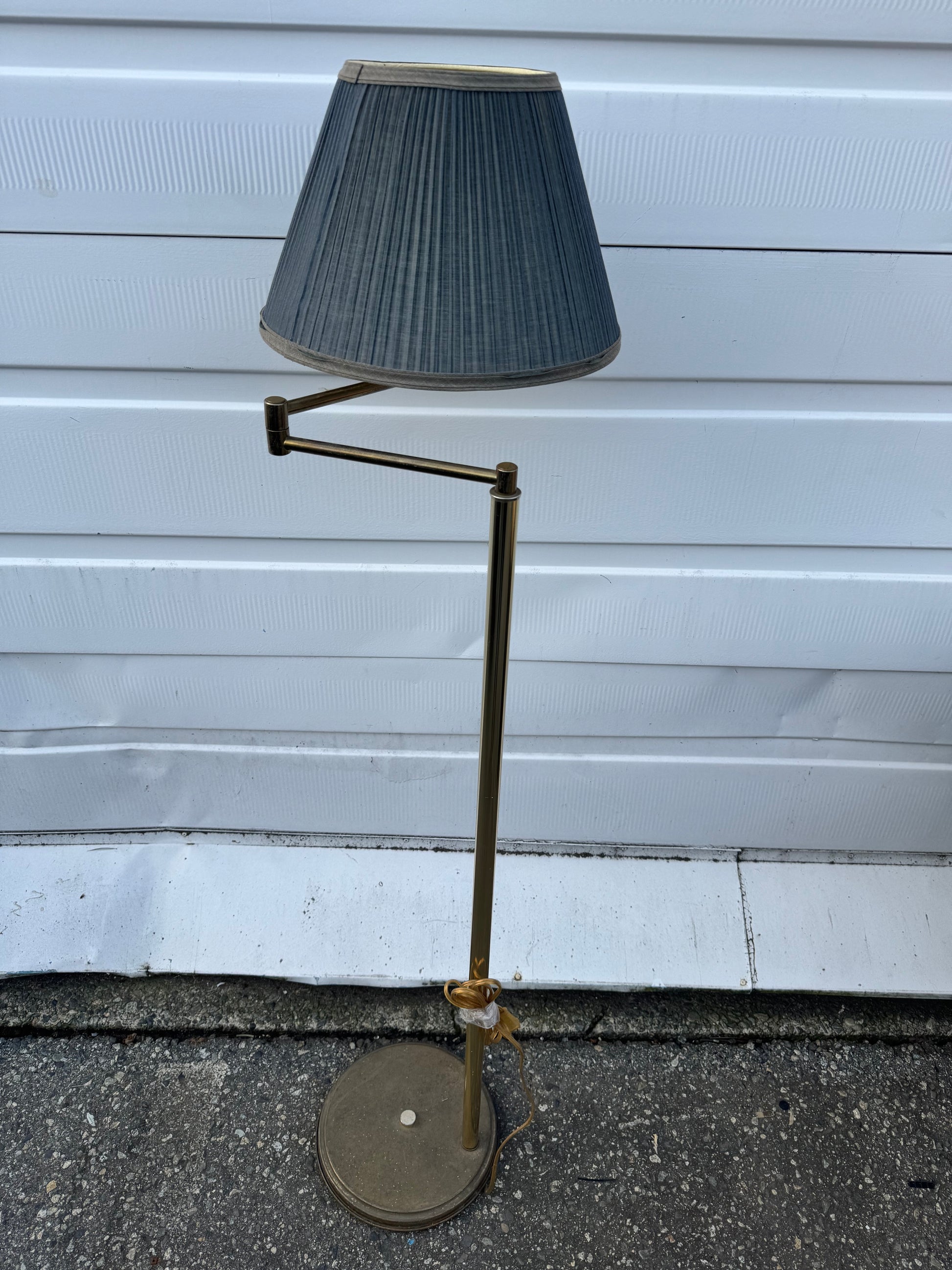 Aged Floor lamp Brass Swing Arm with Blue Pleated Shade.