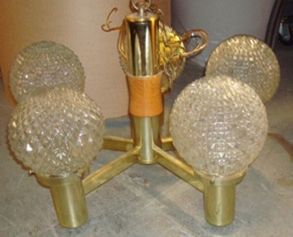 Ceiling Chandelier Chrome and wood with 5 arms with glass ball frosted Nub shades