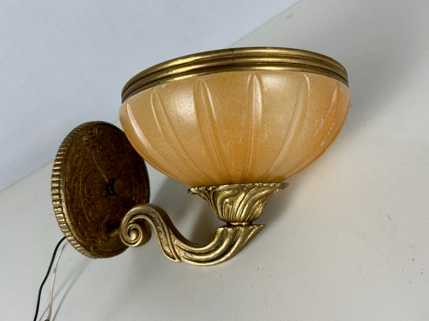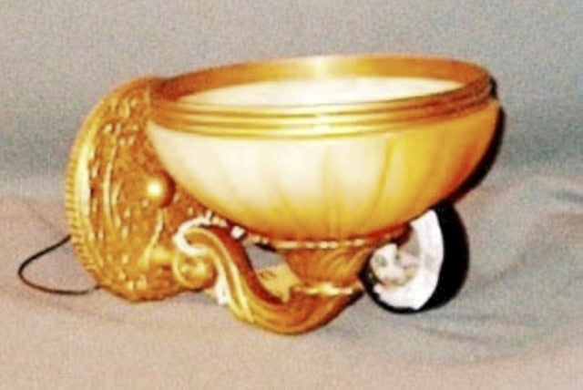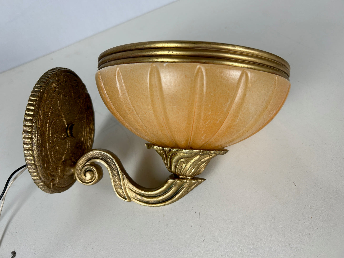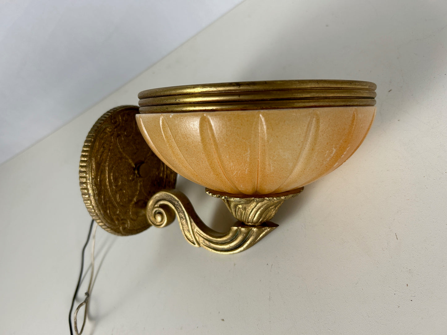 Wall sconce Single antique gold finish over cast metal with alabaster shade