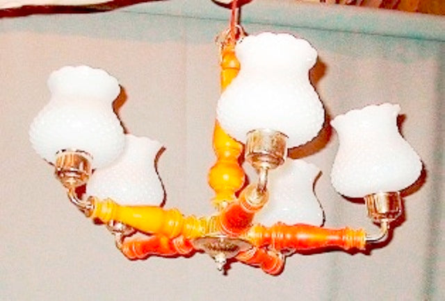 Chandelier Colonial with 5 arms and Hub Nail glass shade