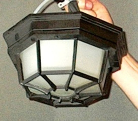 Outdoor ceiling porch light octangonal with frosted glass wired with box tail & plug