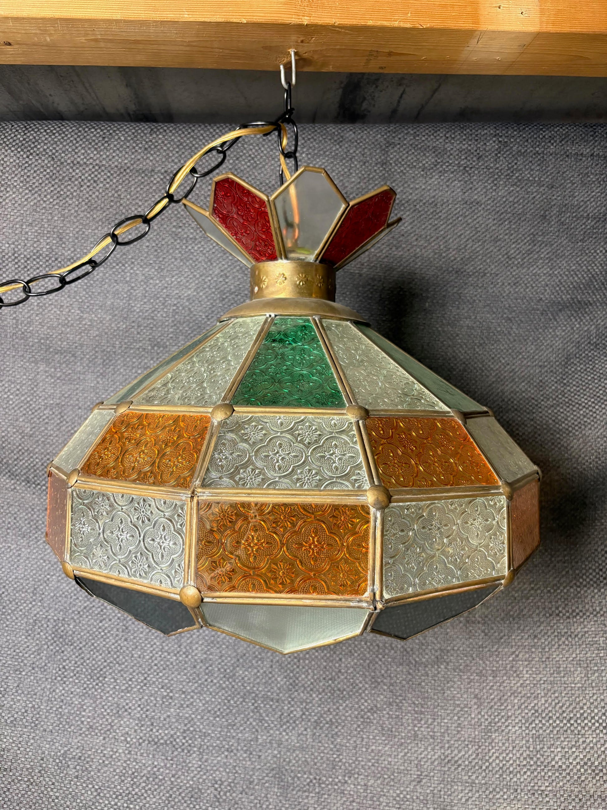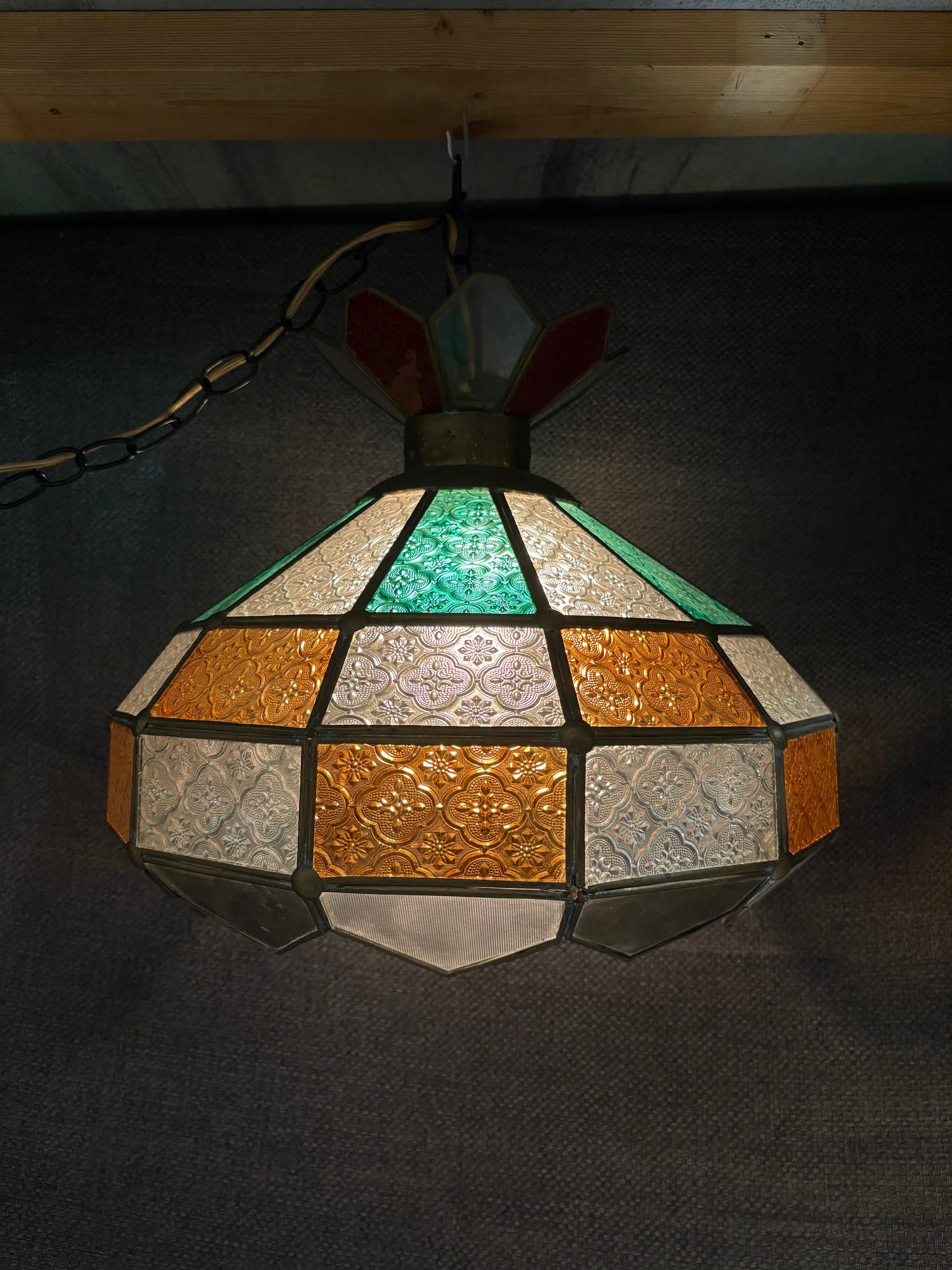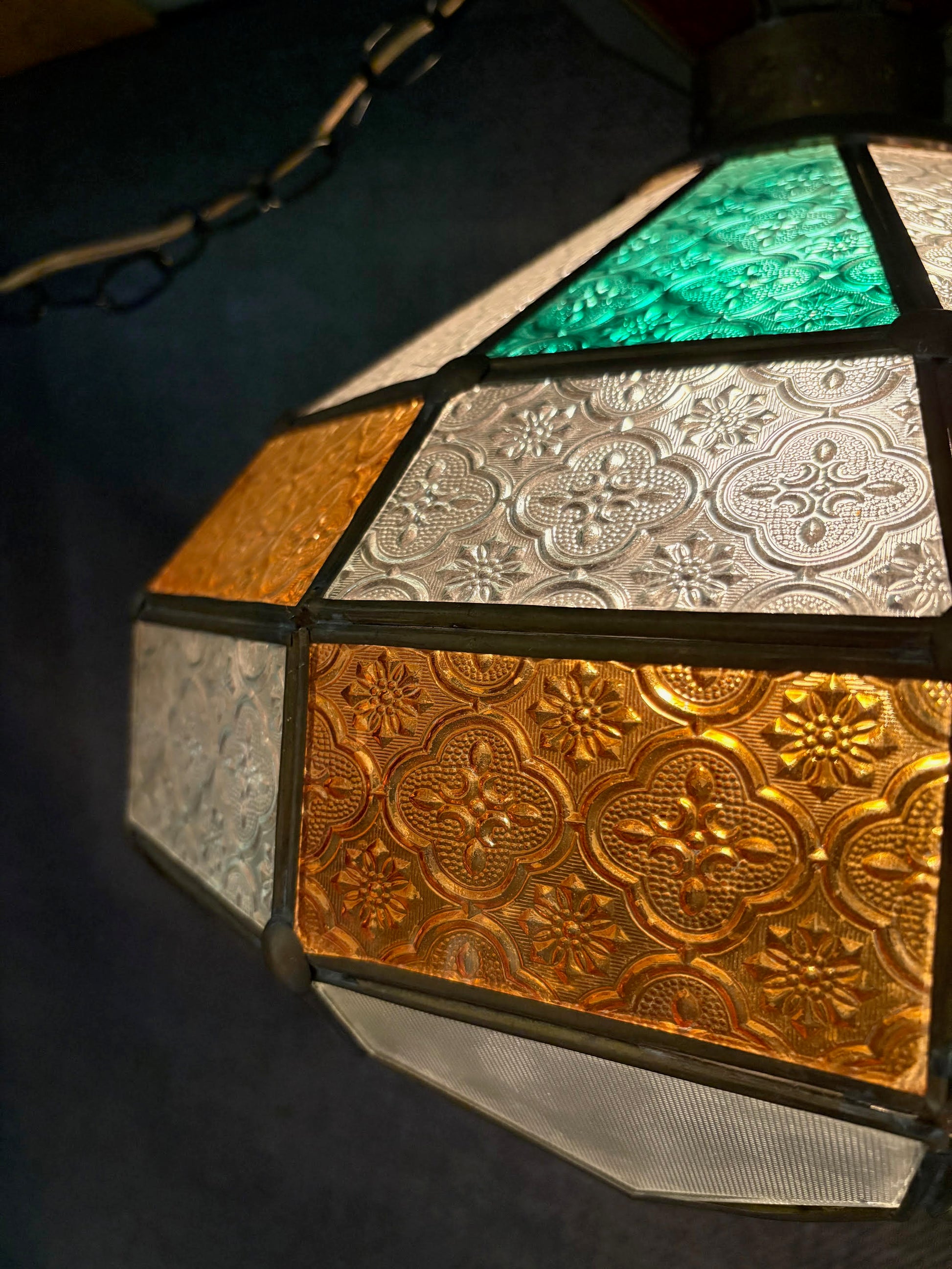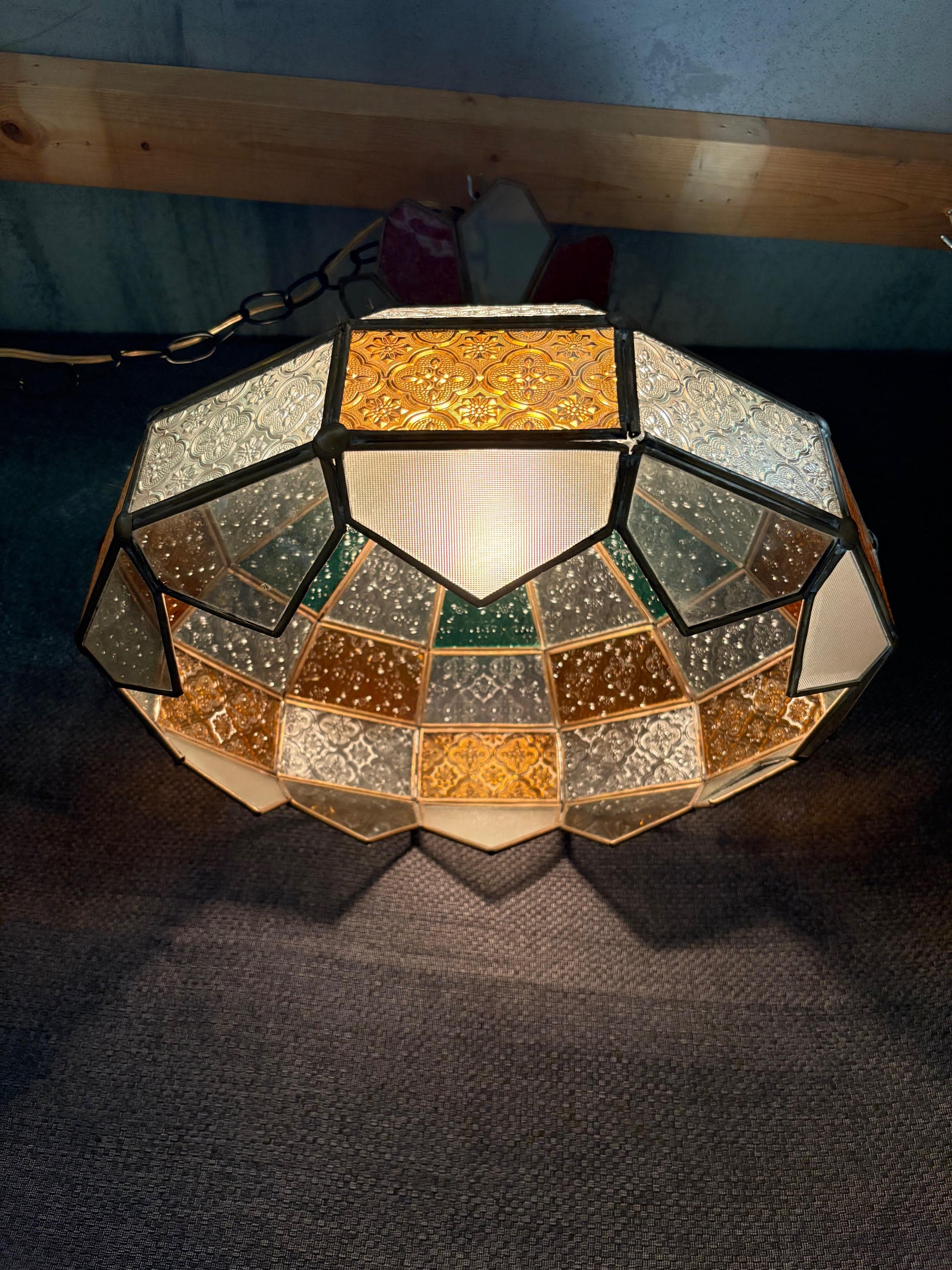 Hanging Art glass green amber and white