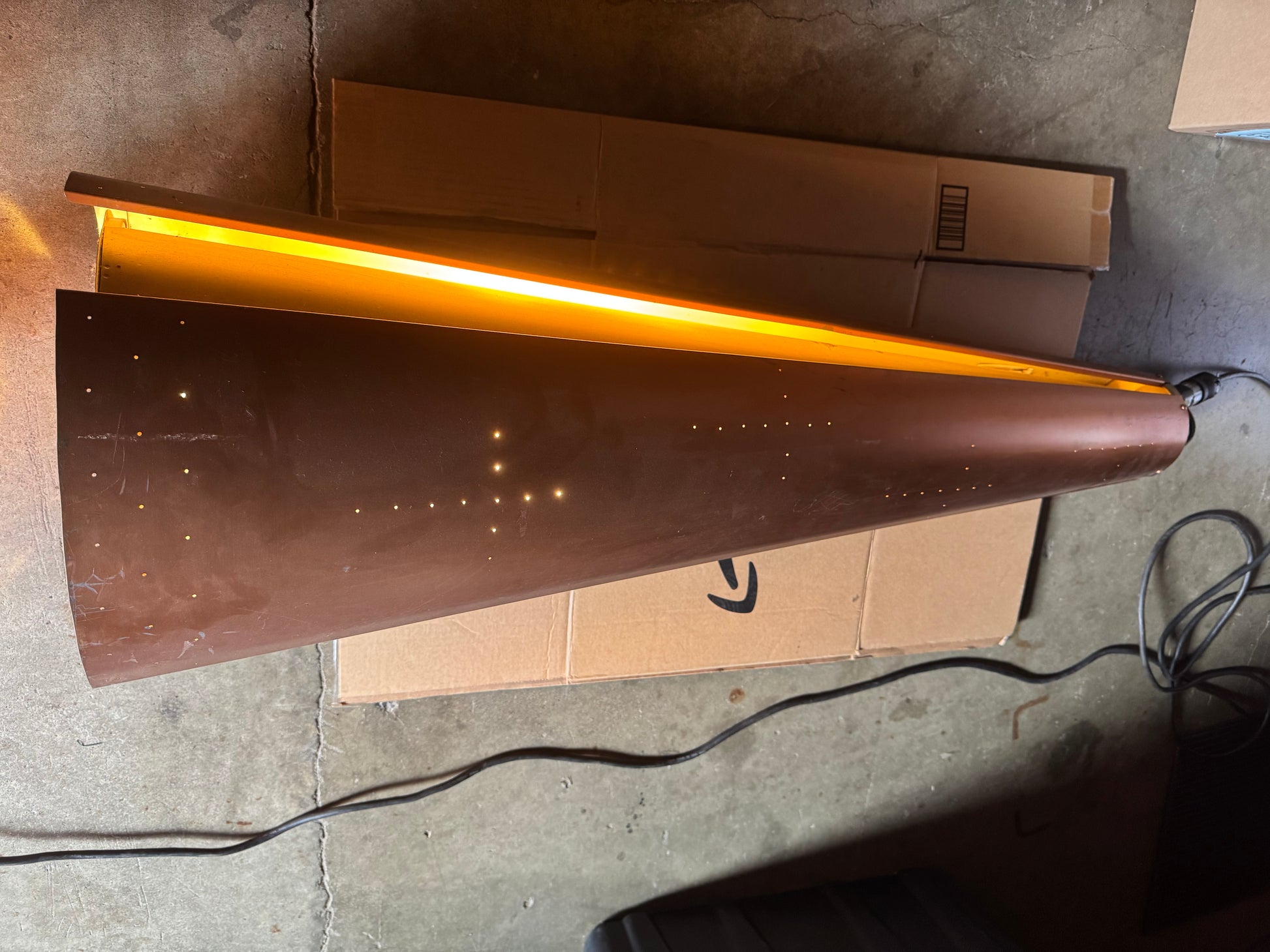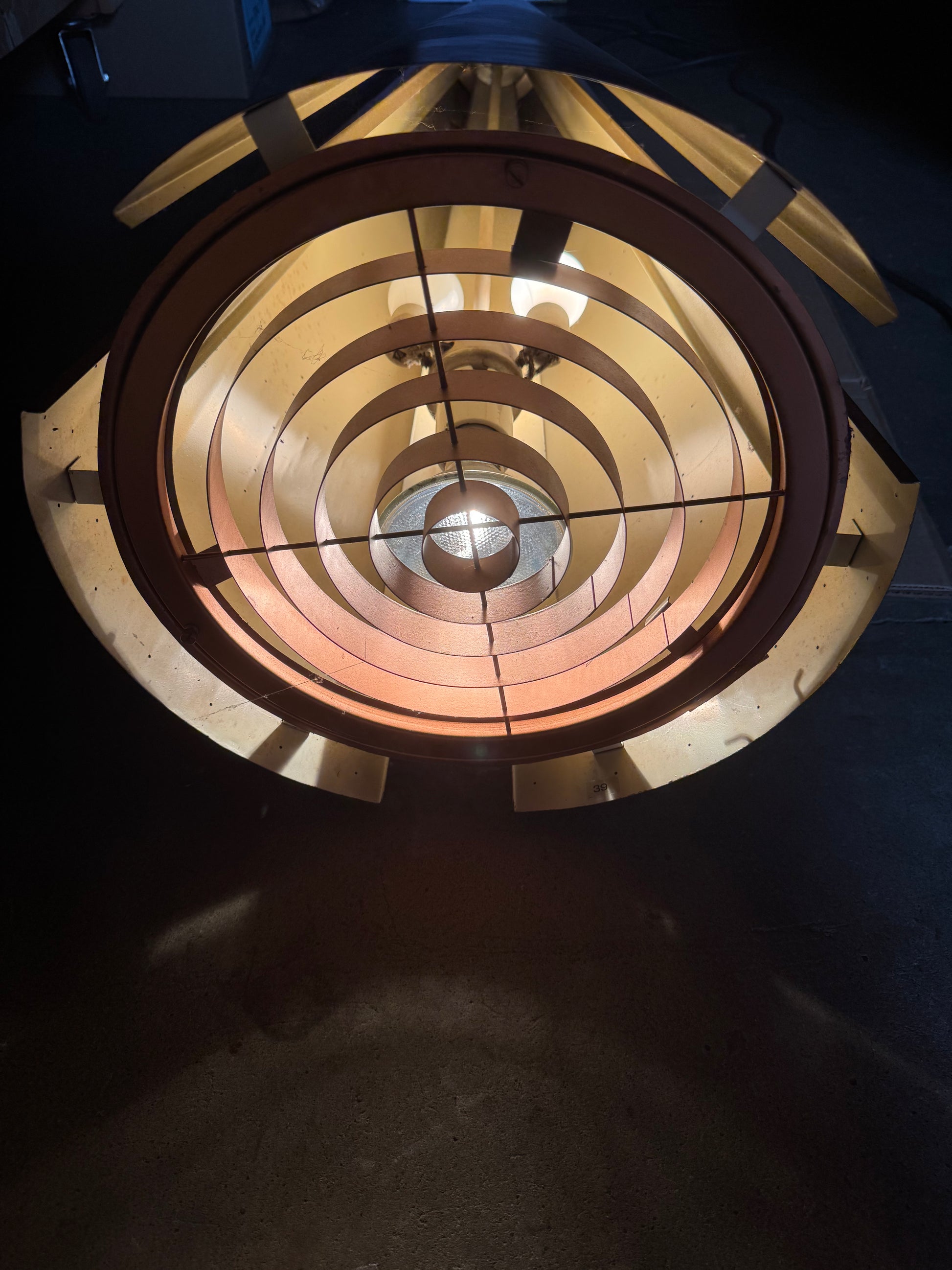 Huge Pendant in Copper Anodized Aluminum with Glass Lens, 1950s