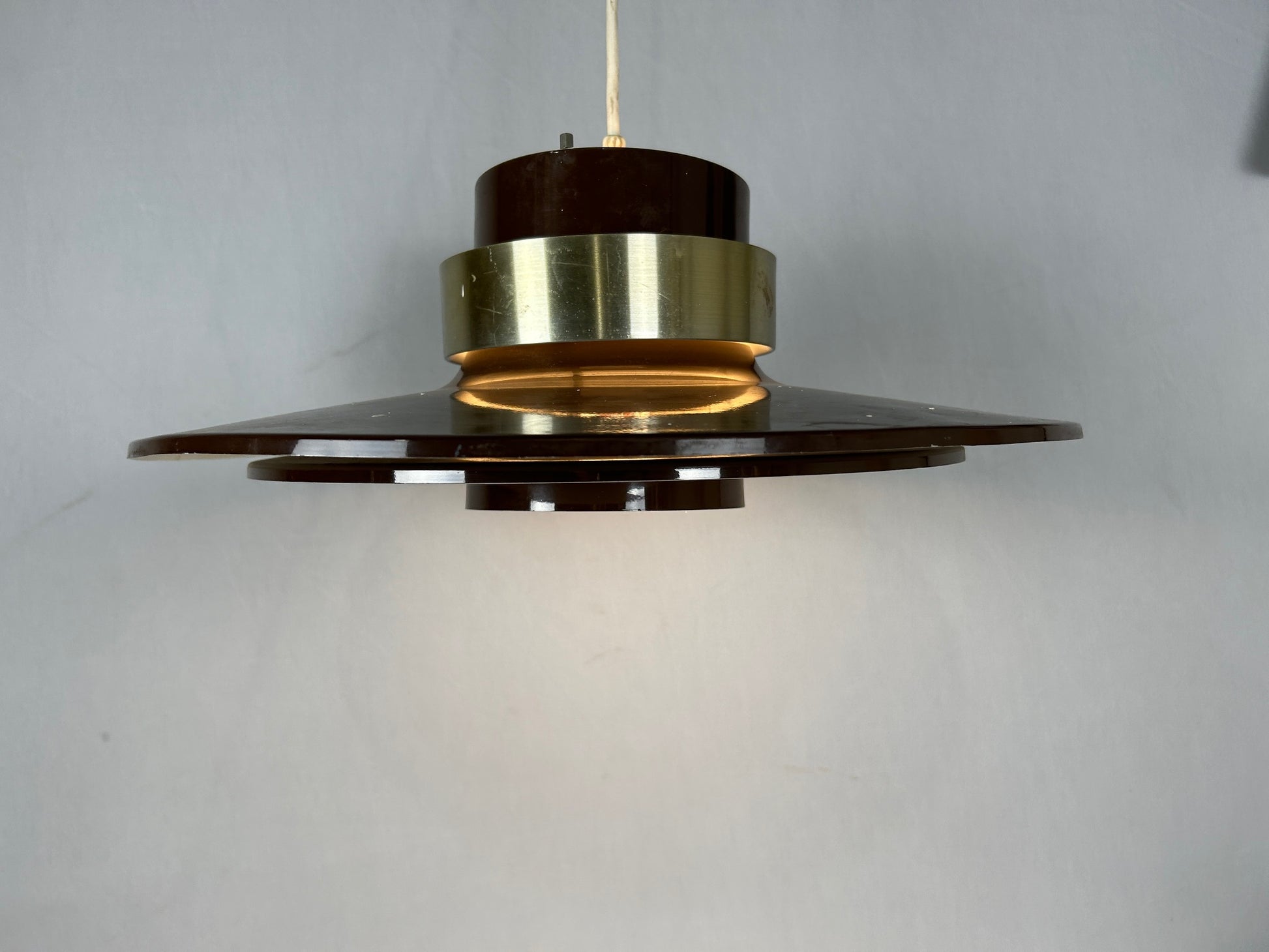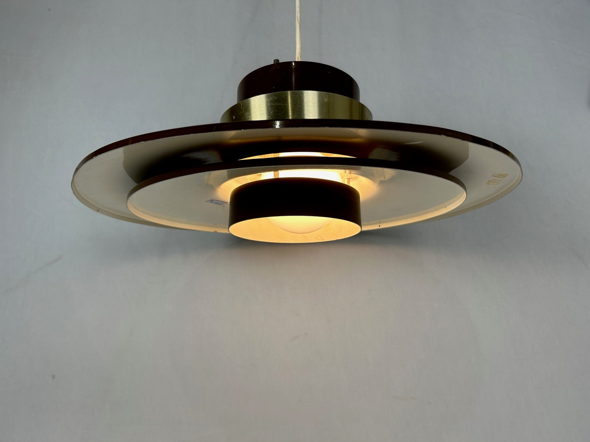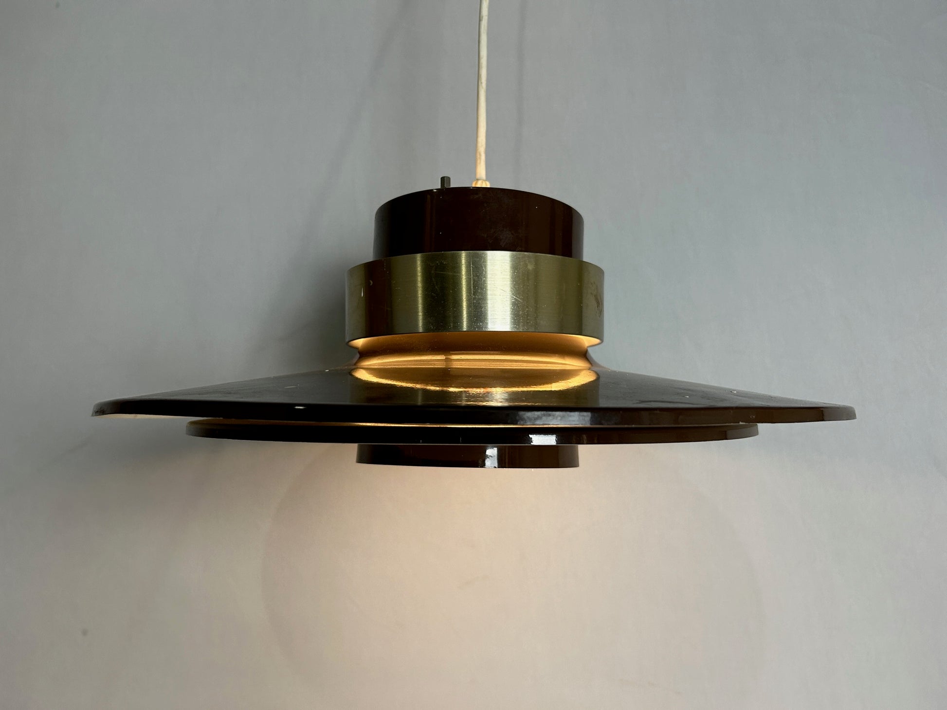 Pendant light 3 disk metal brown finish and with brass ring on top
