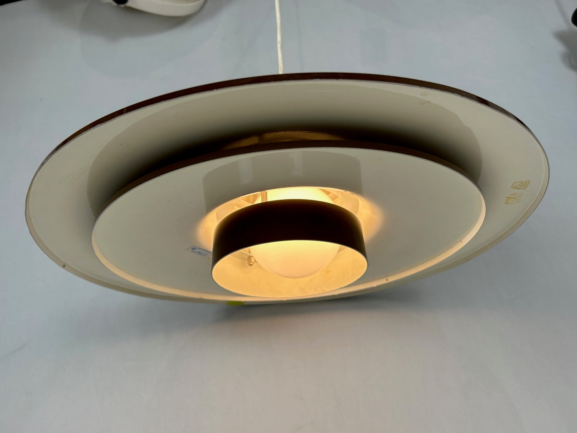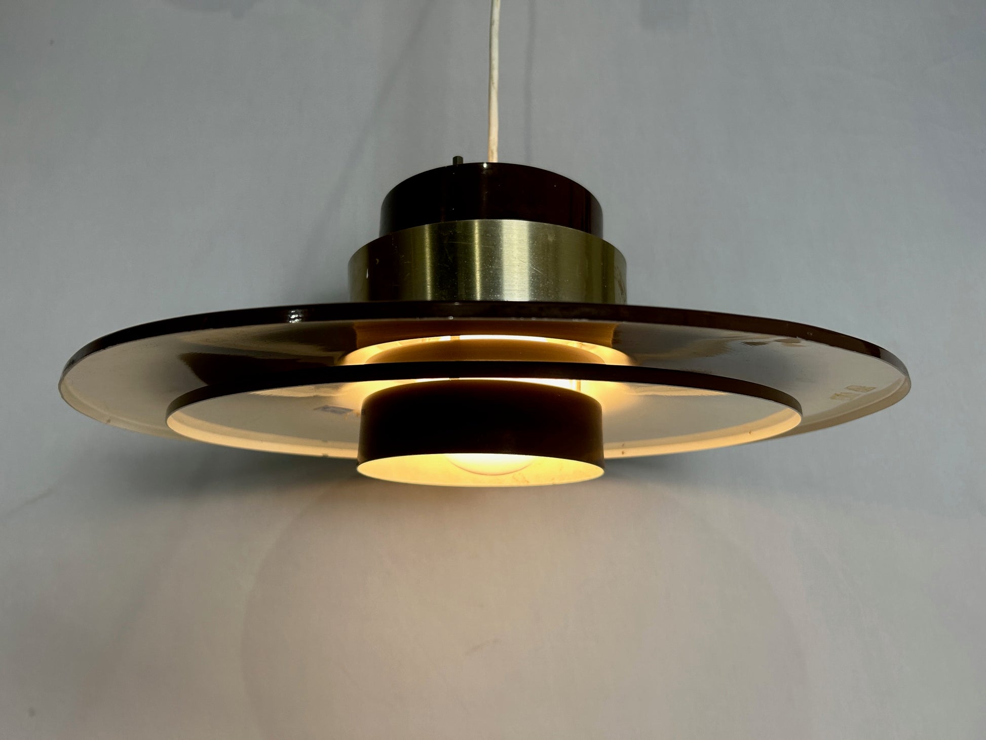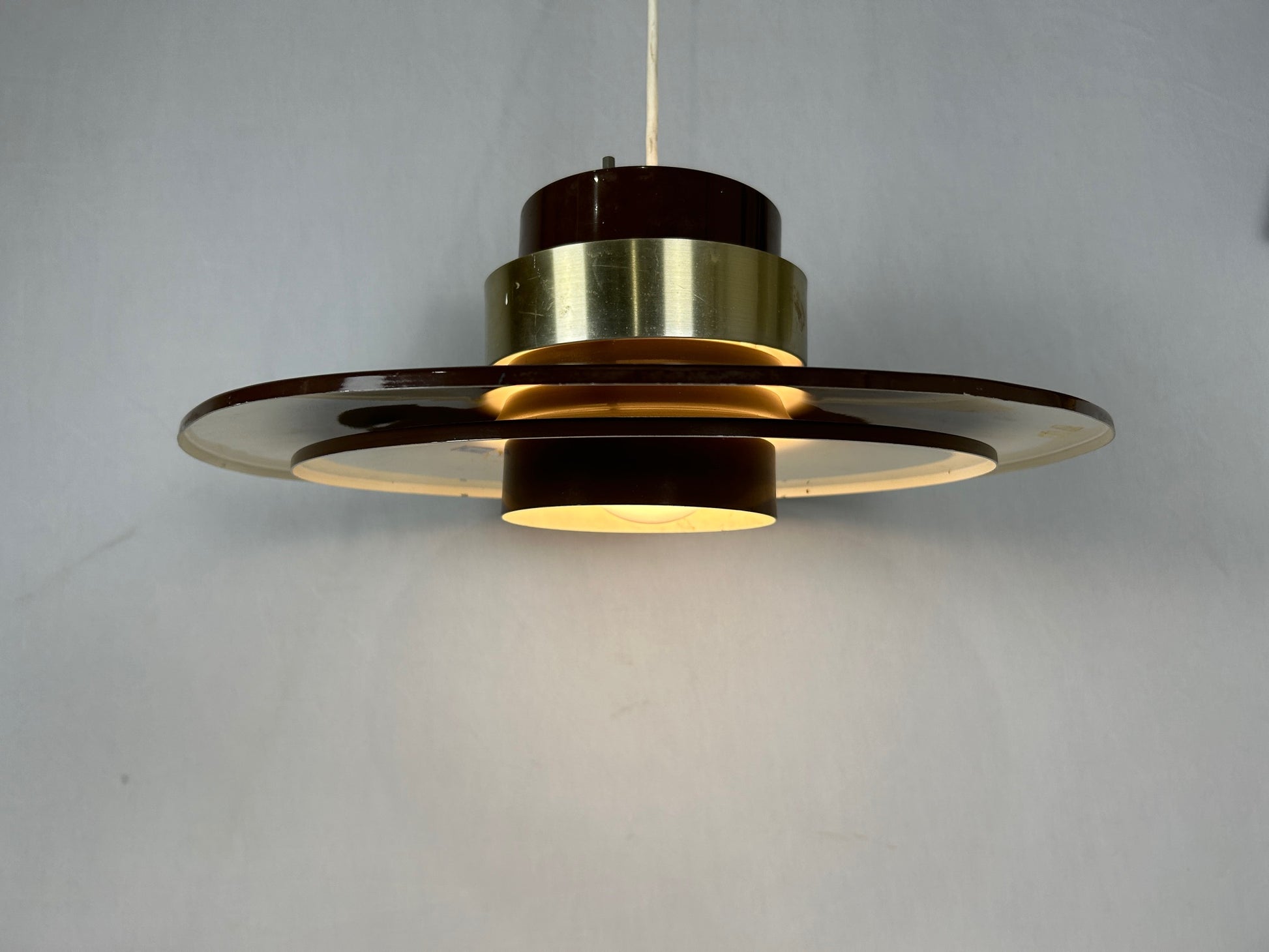 Pendant light 3 disk metal brown finish and with brass ring on top
