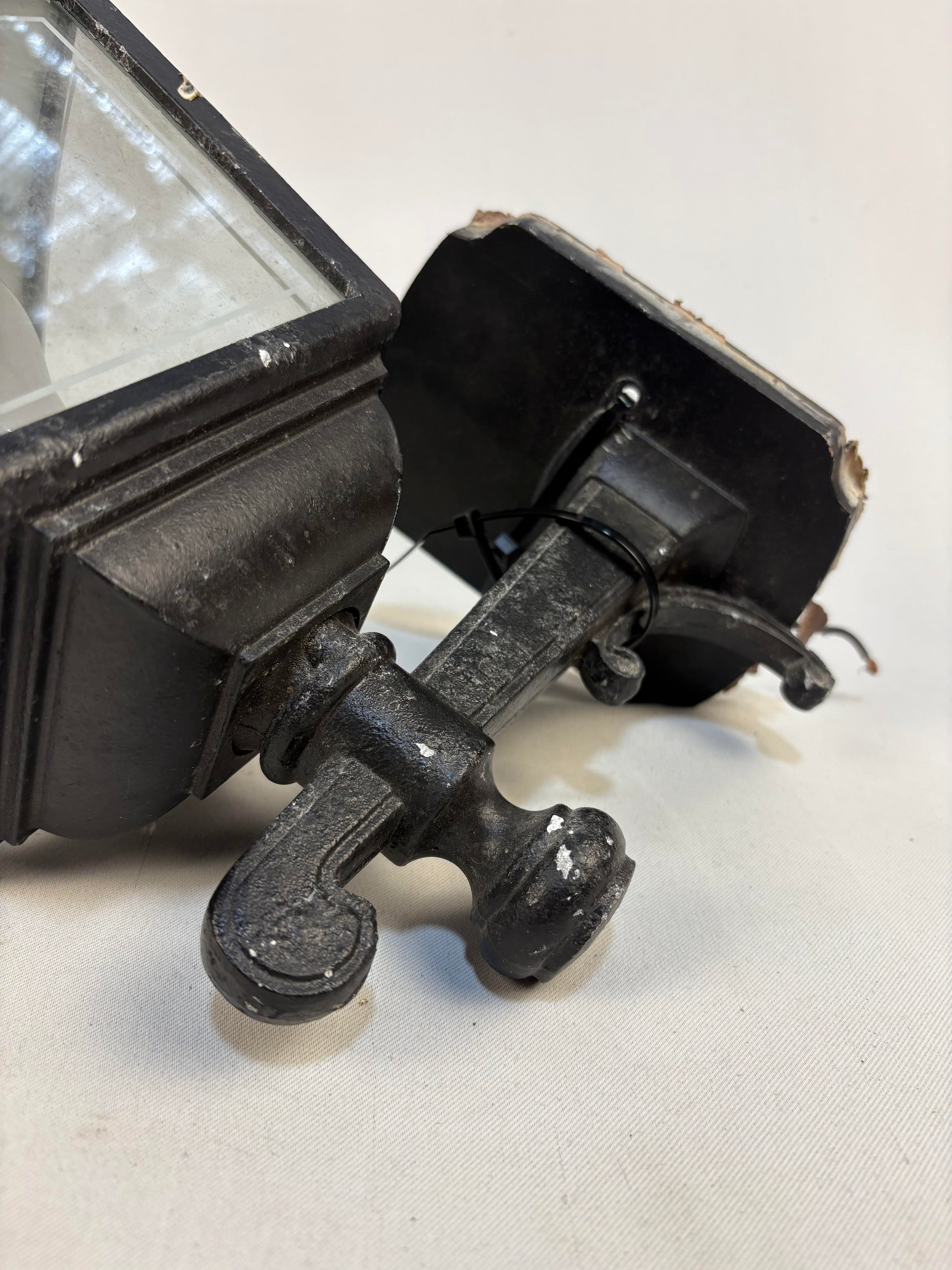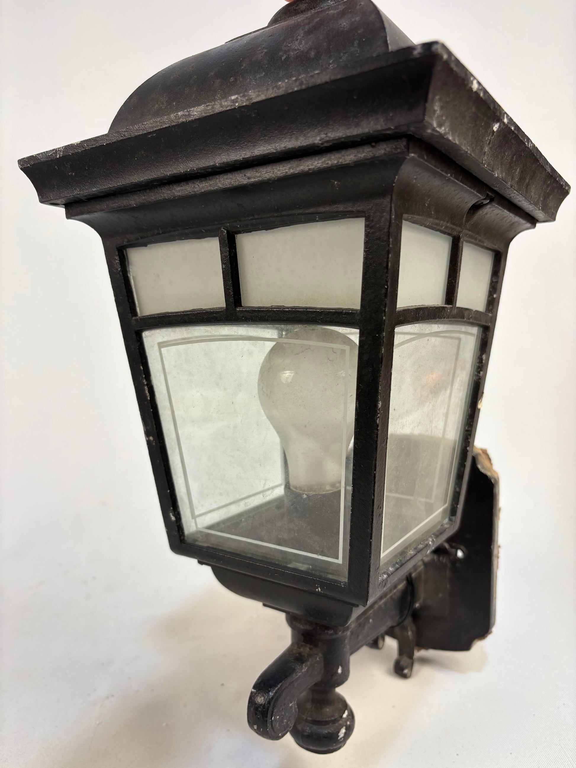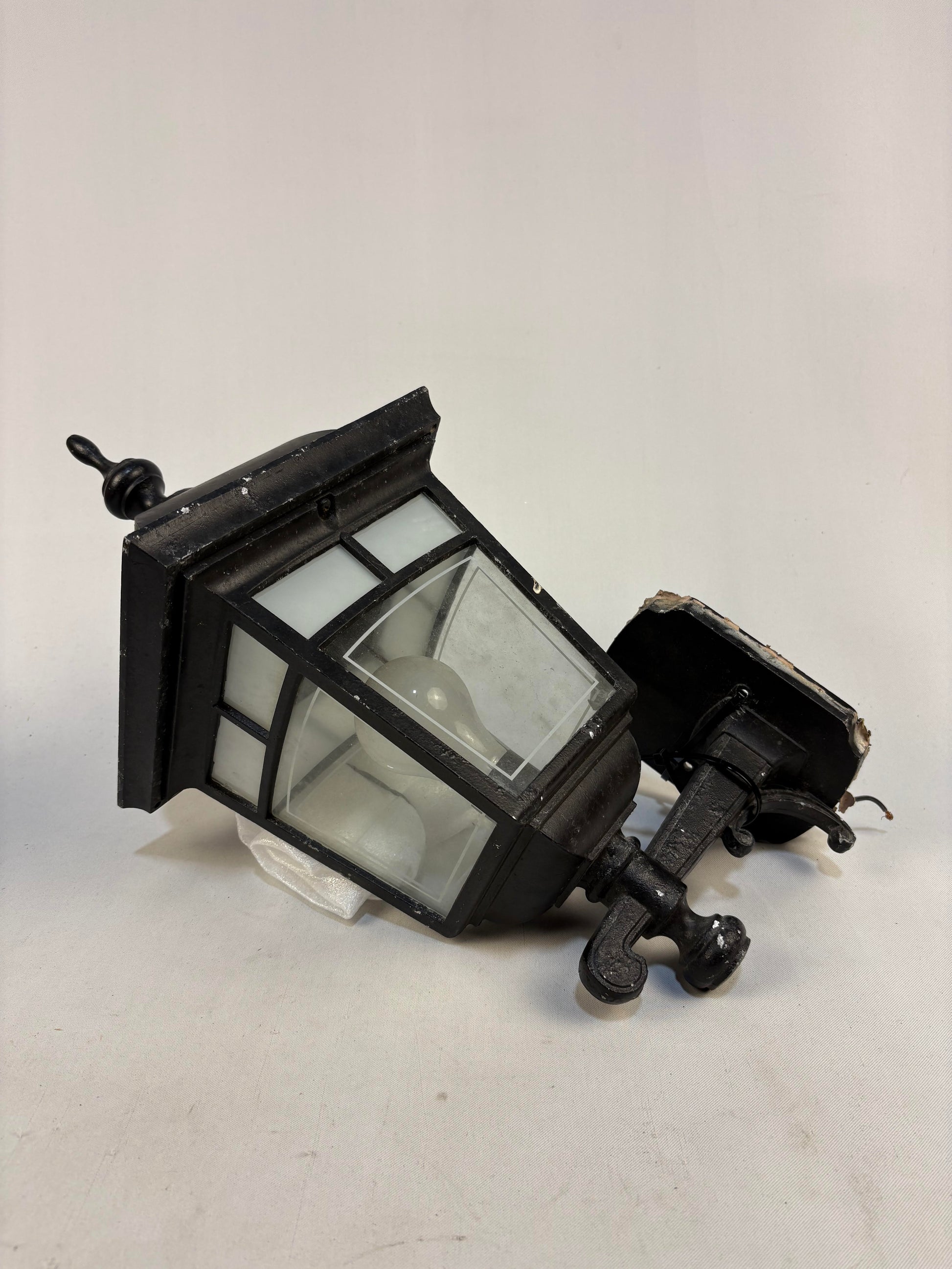 Traditional Black Cast Iron Wall Sconce with white window glass accents