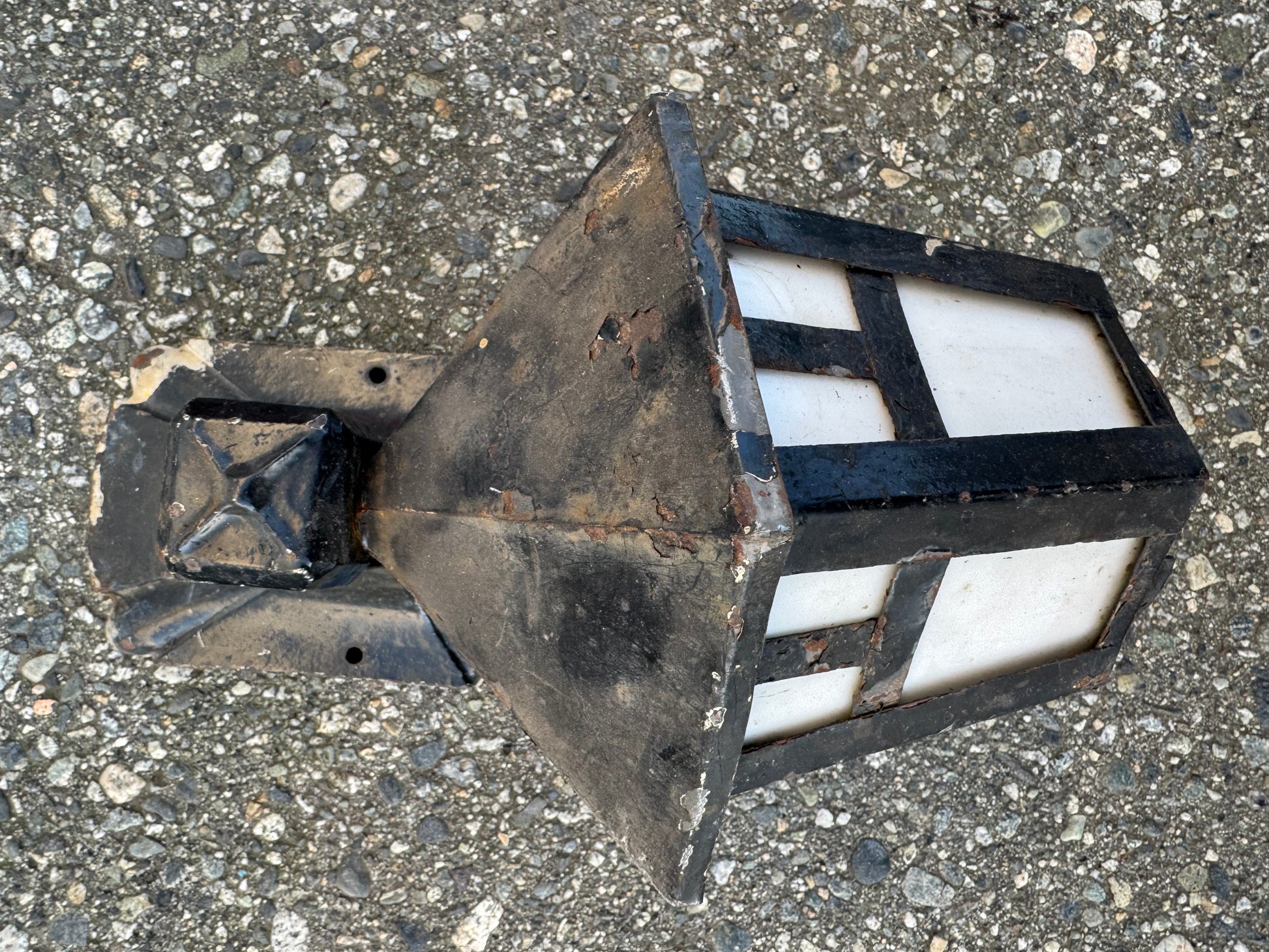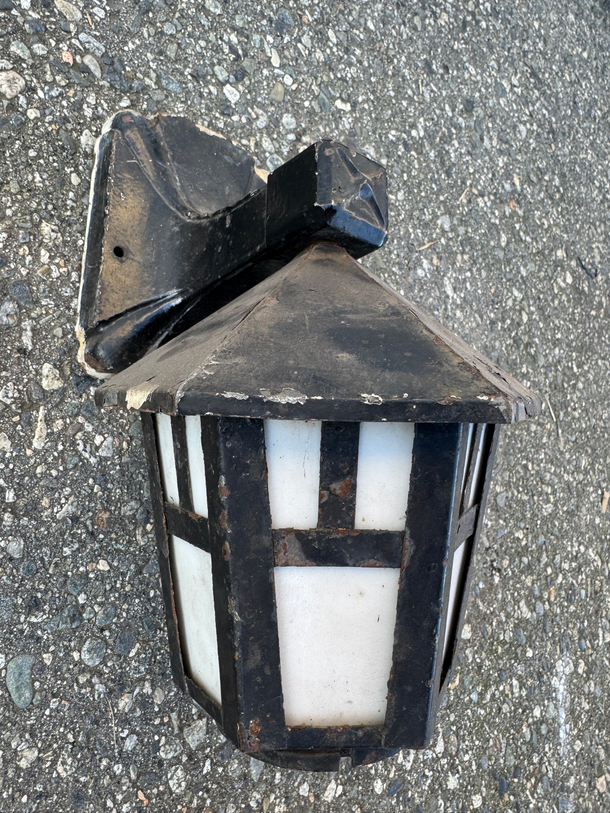 Cast Iron Wall Sconce with Opal Glass Panels.