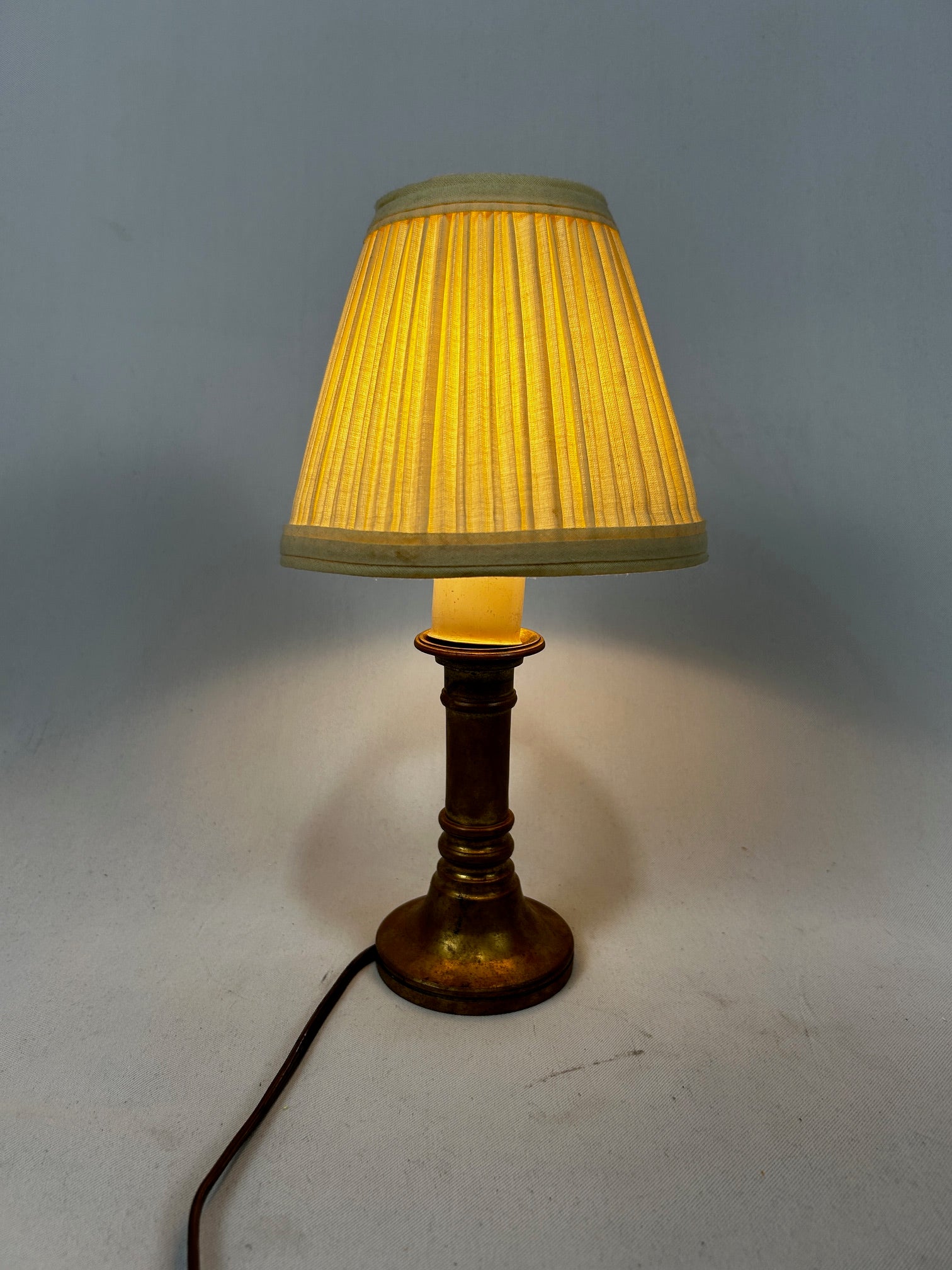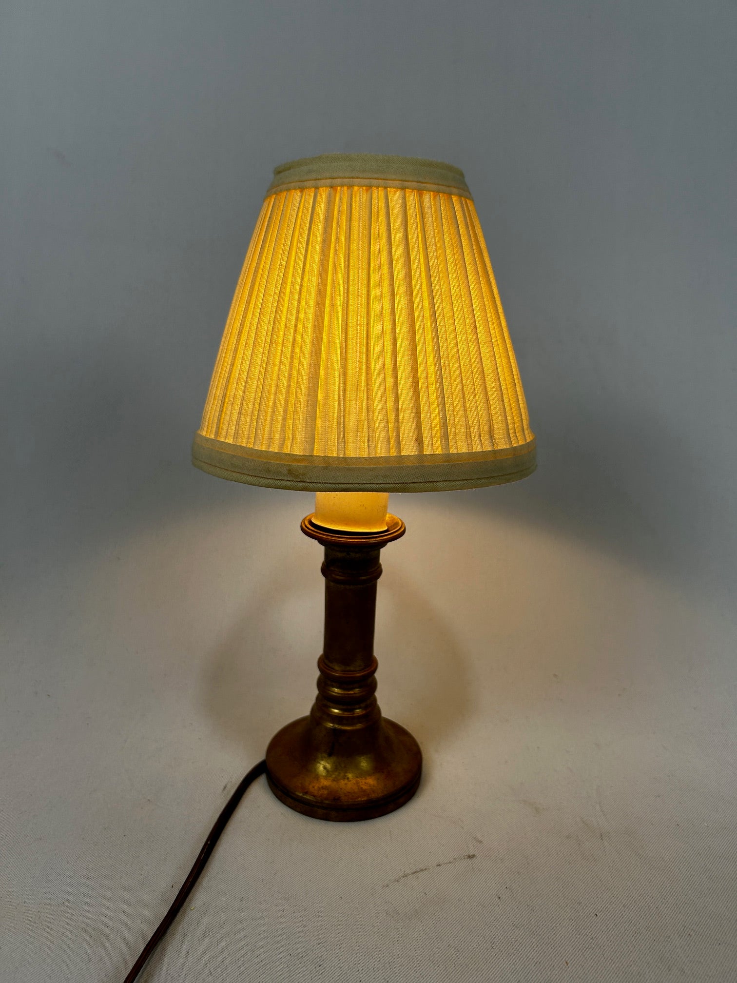 Small Table lamp Brass with medium socket with Brass sleeve over white candle sleeve
