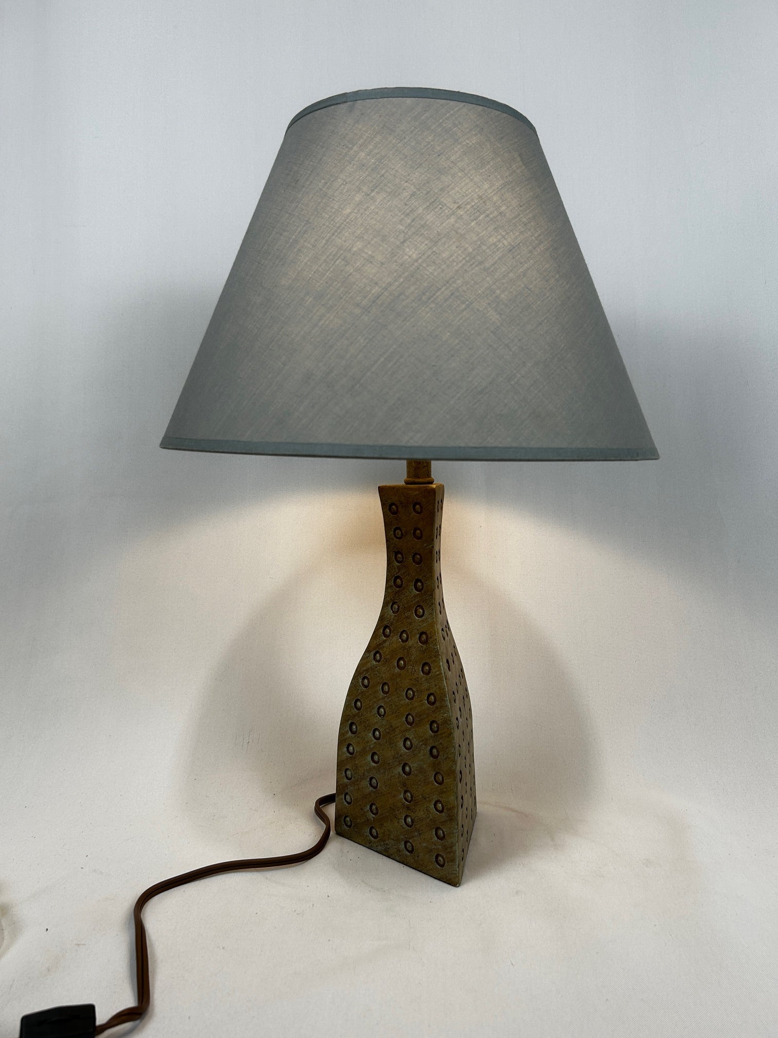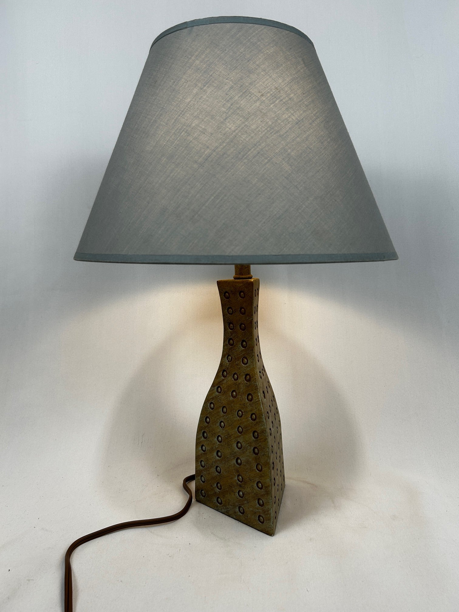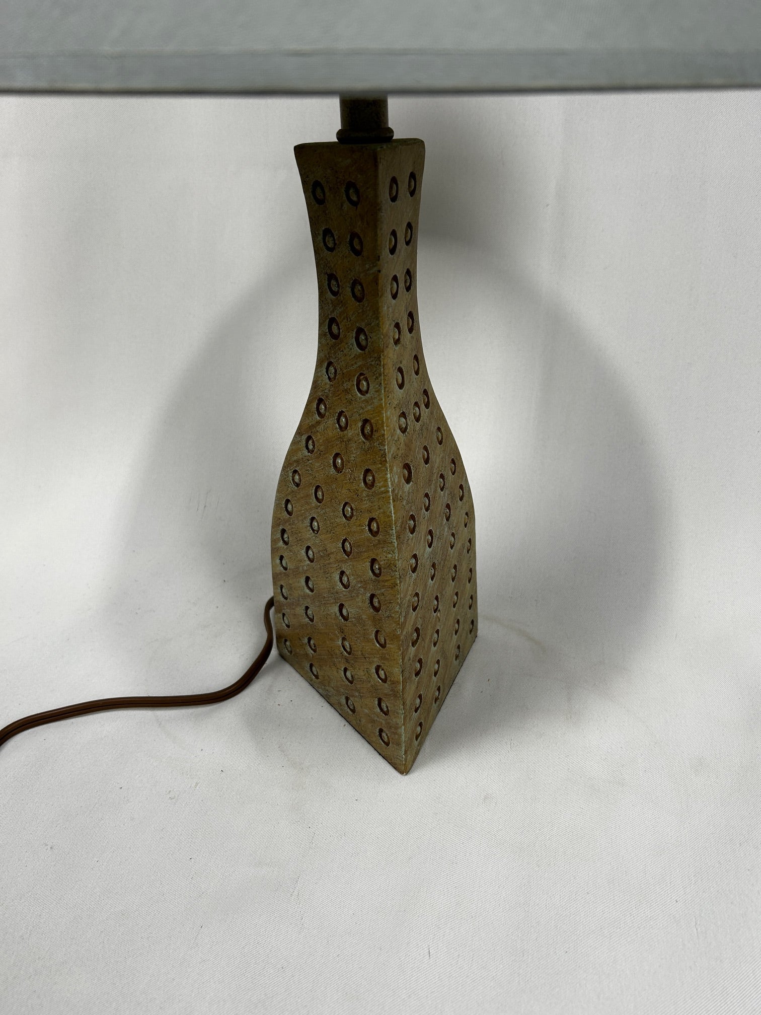 Table lamp Triangle shape vase beige with Dots with silk barrel shade