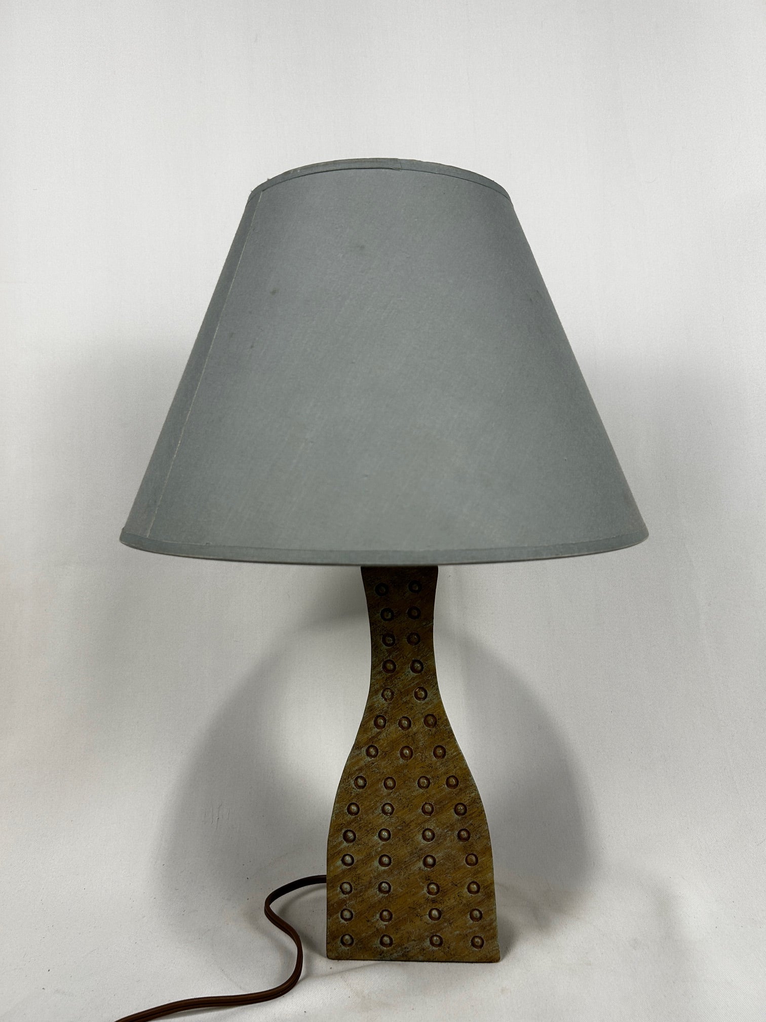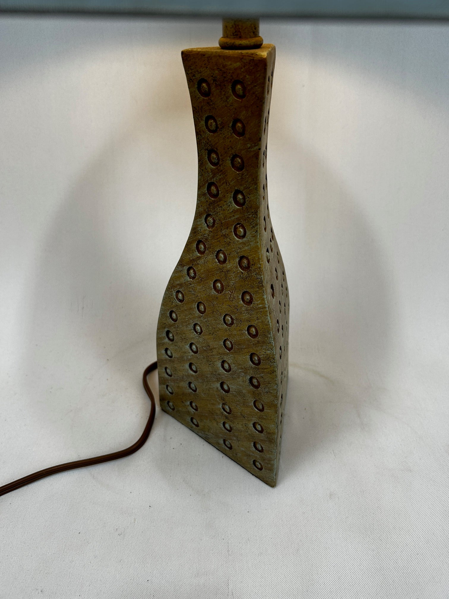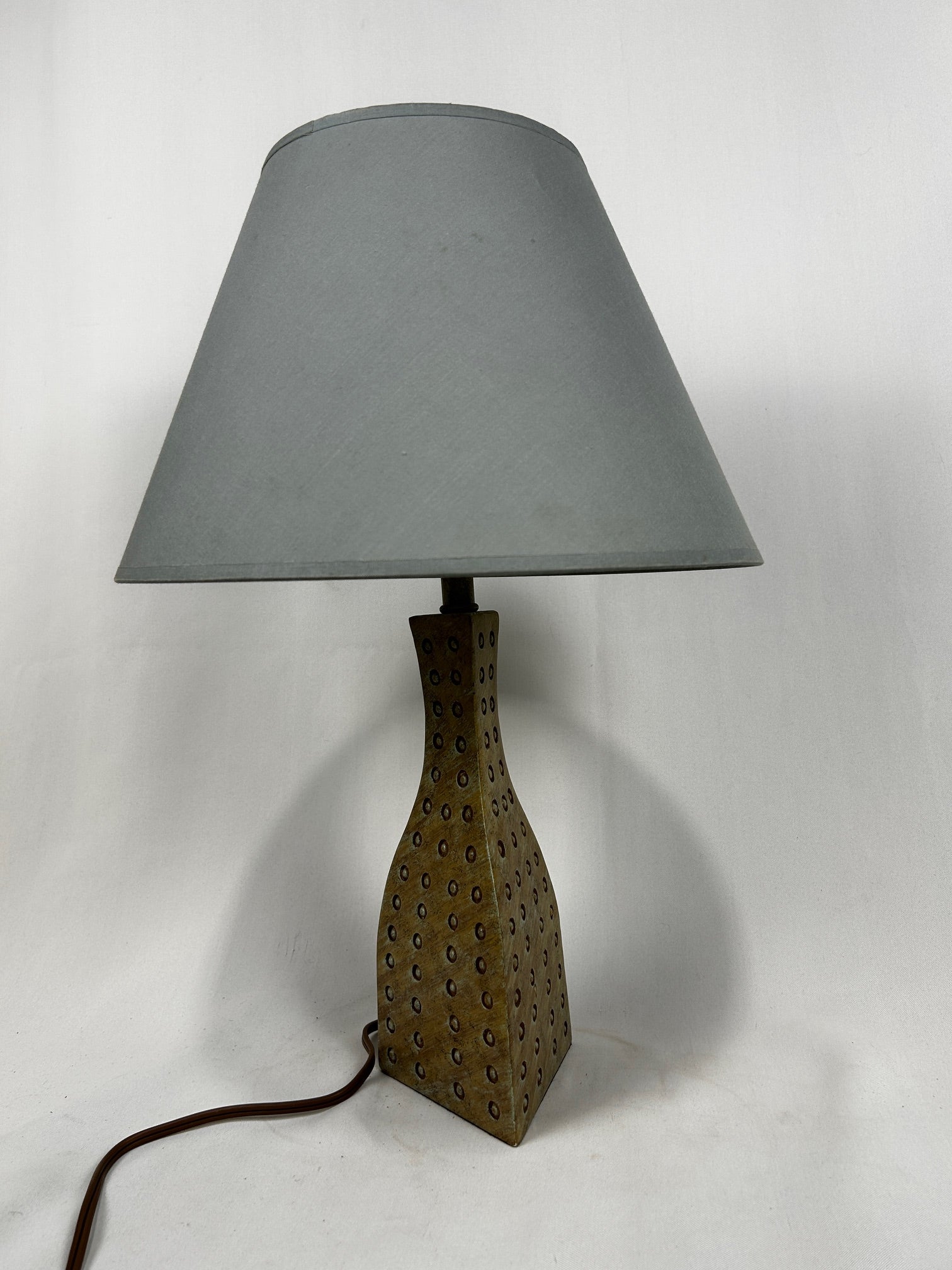 Table lamp Triangle shape vase beige with Dots with silk barrel shade