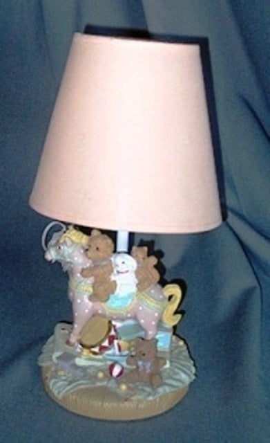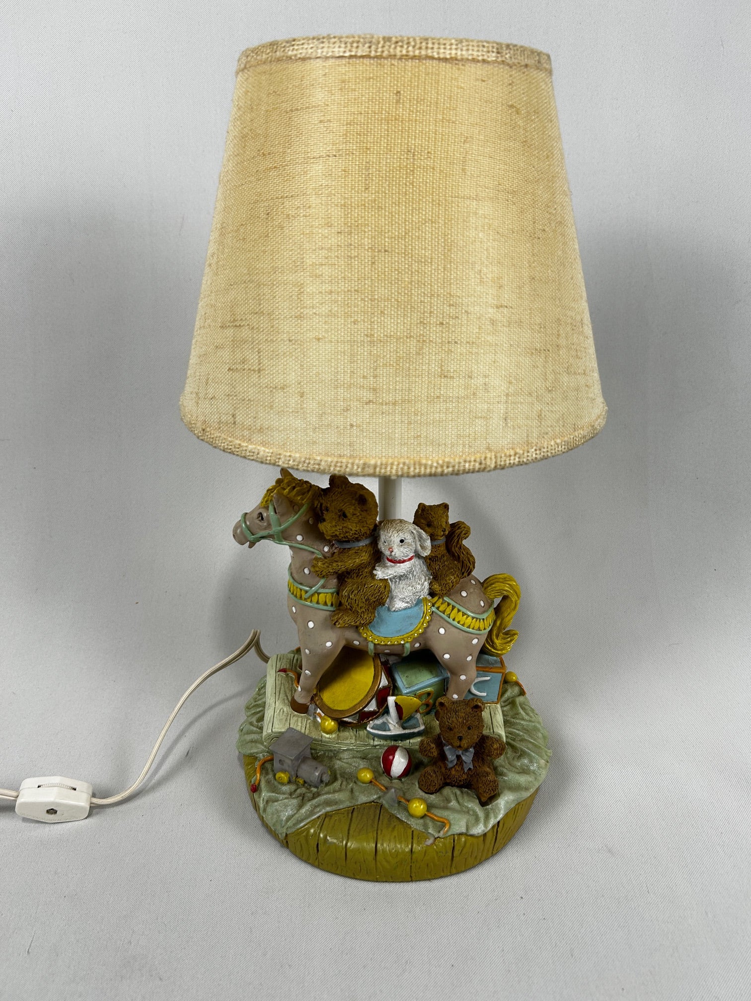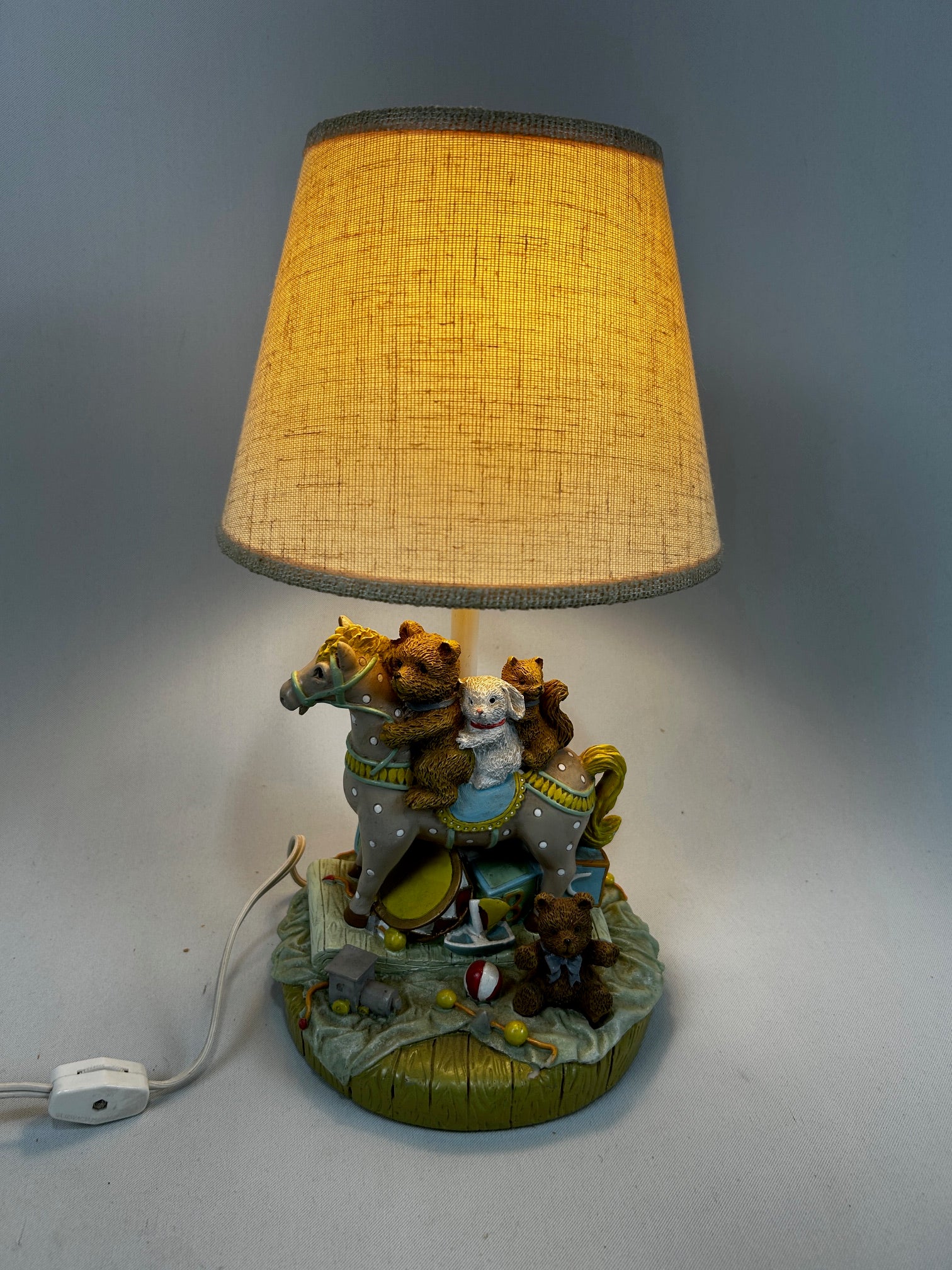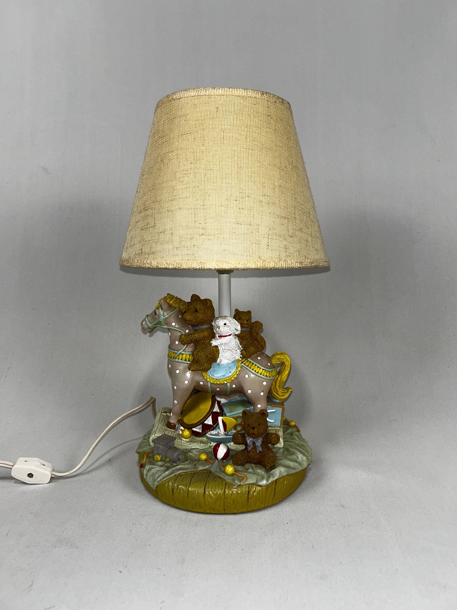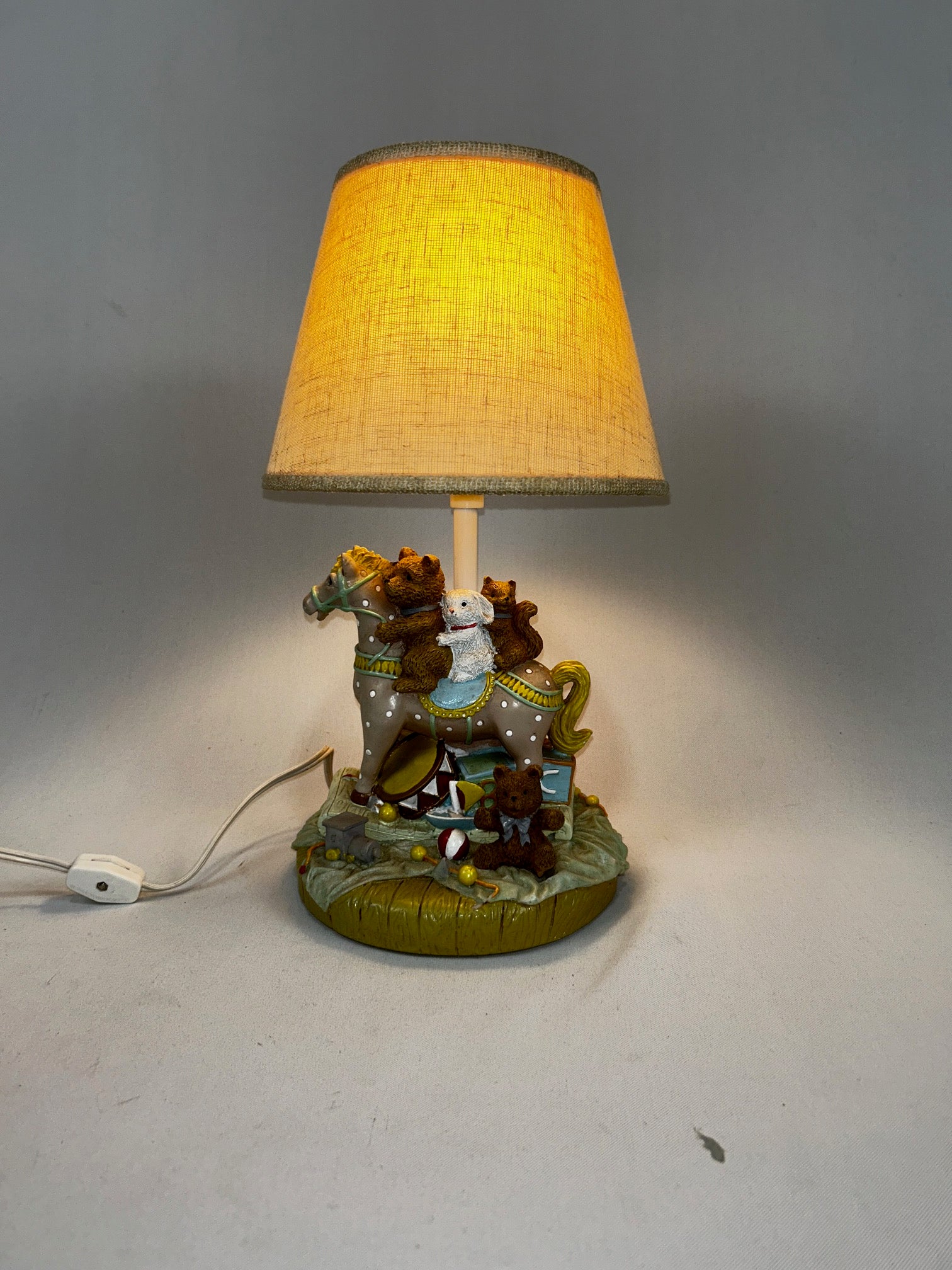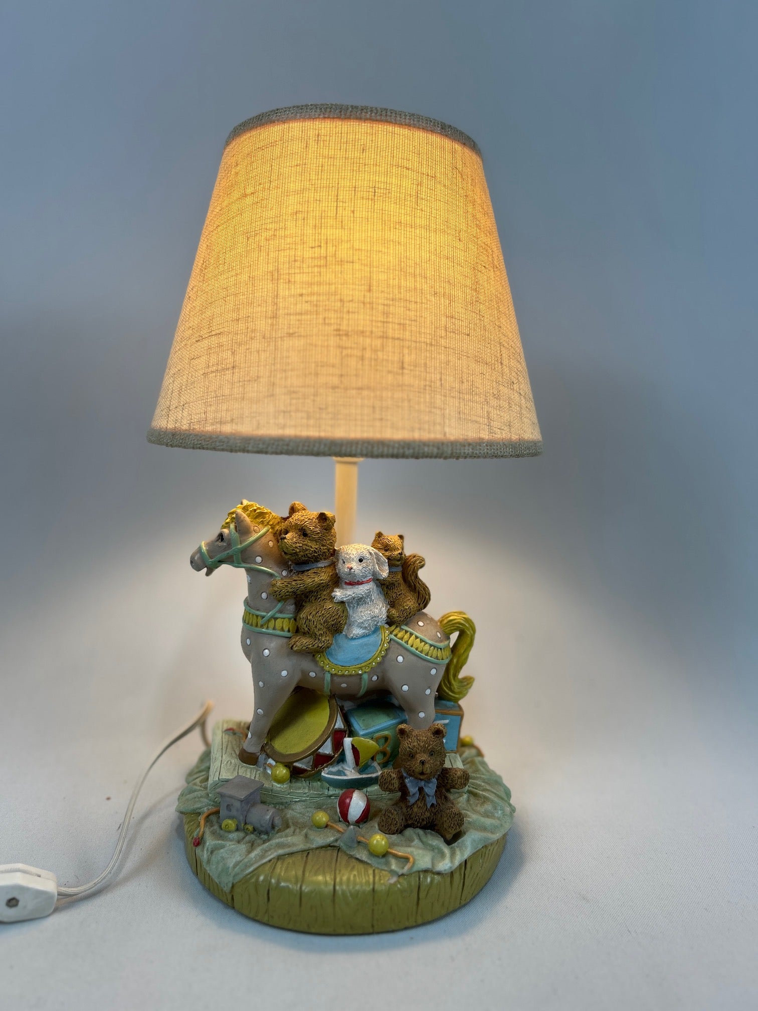 Table lamp small horse with teddy bears with linen shade