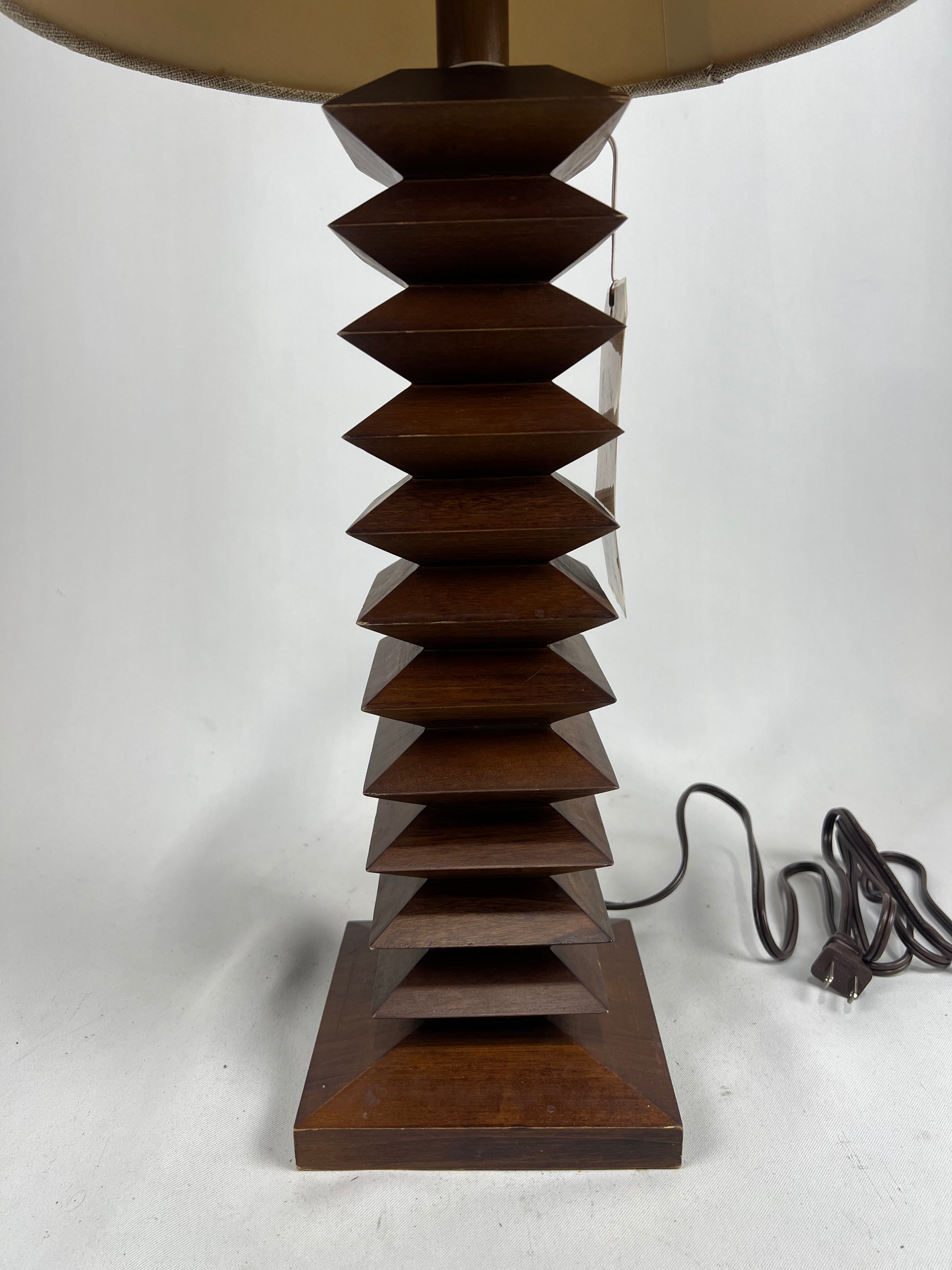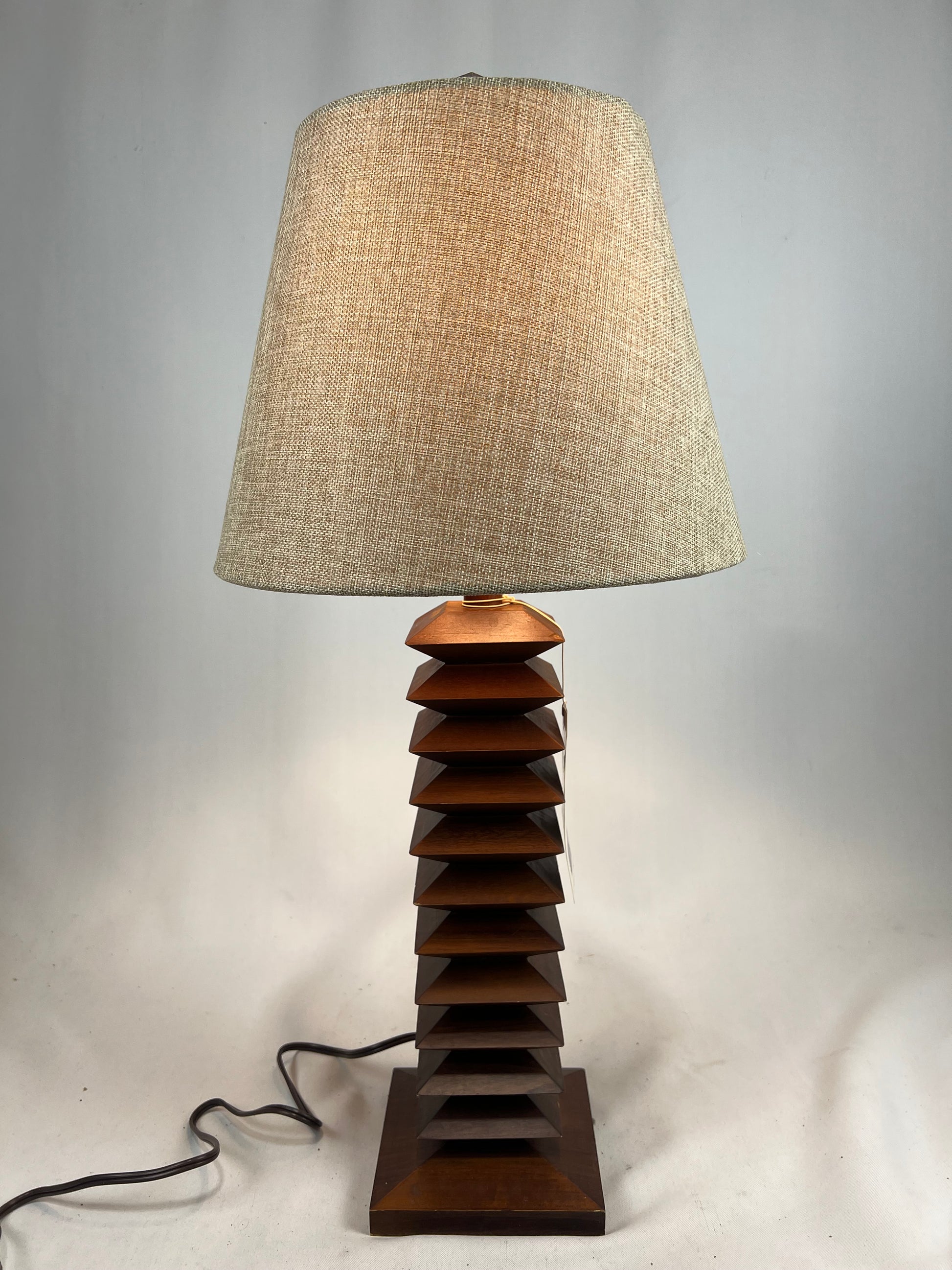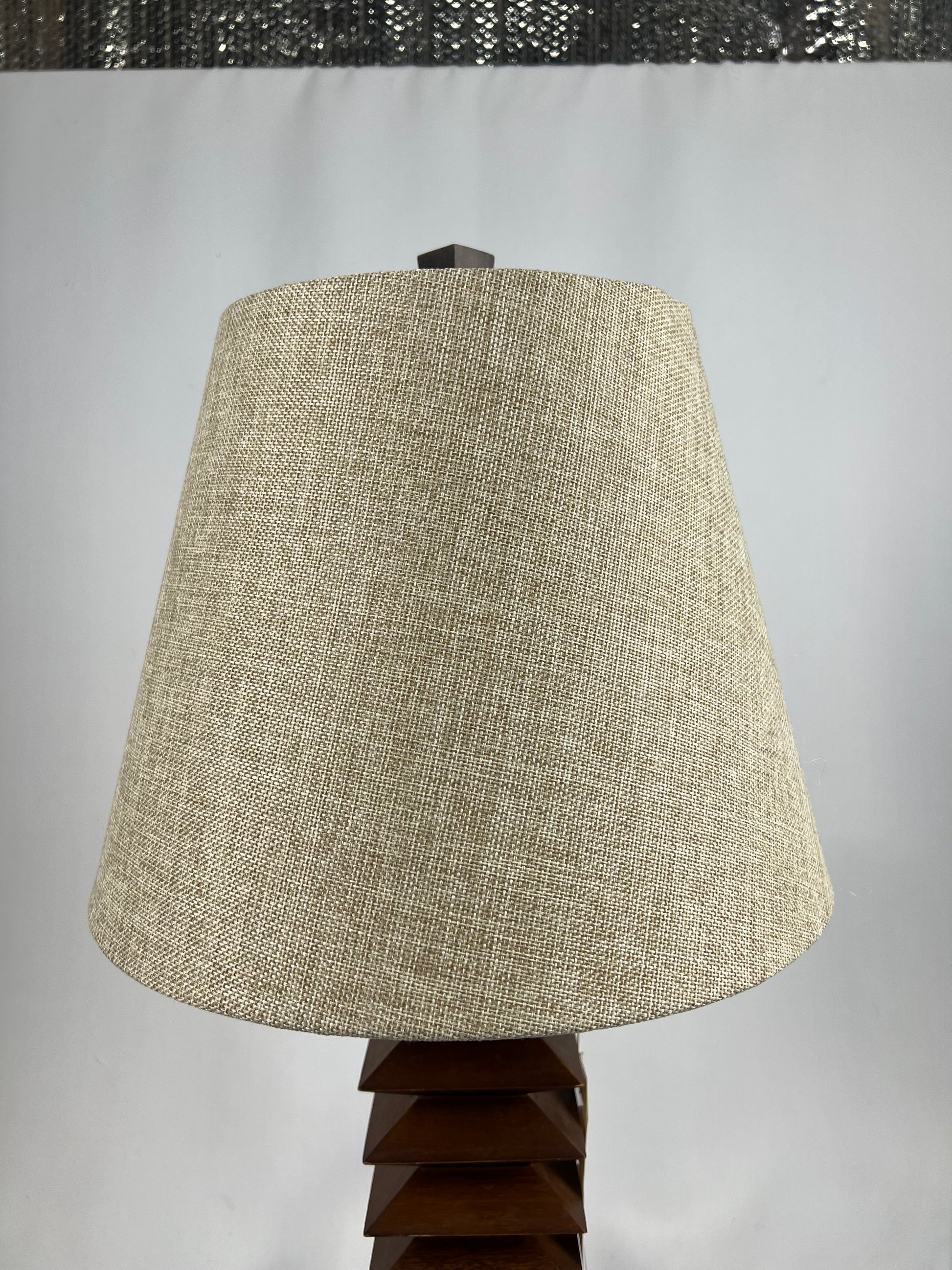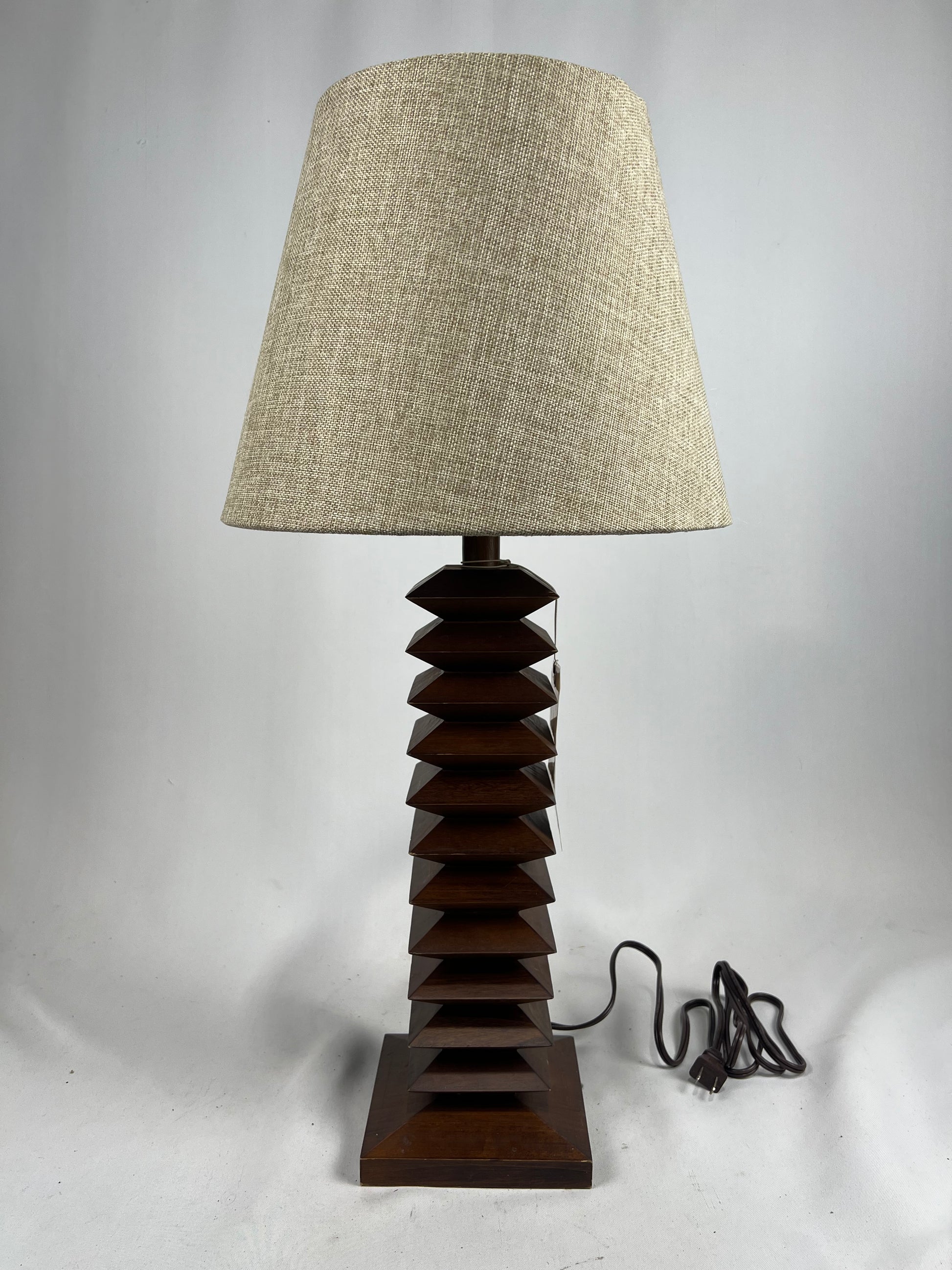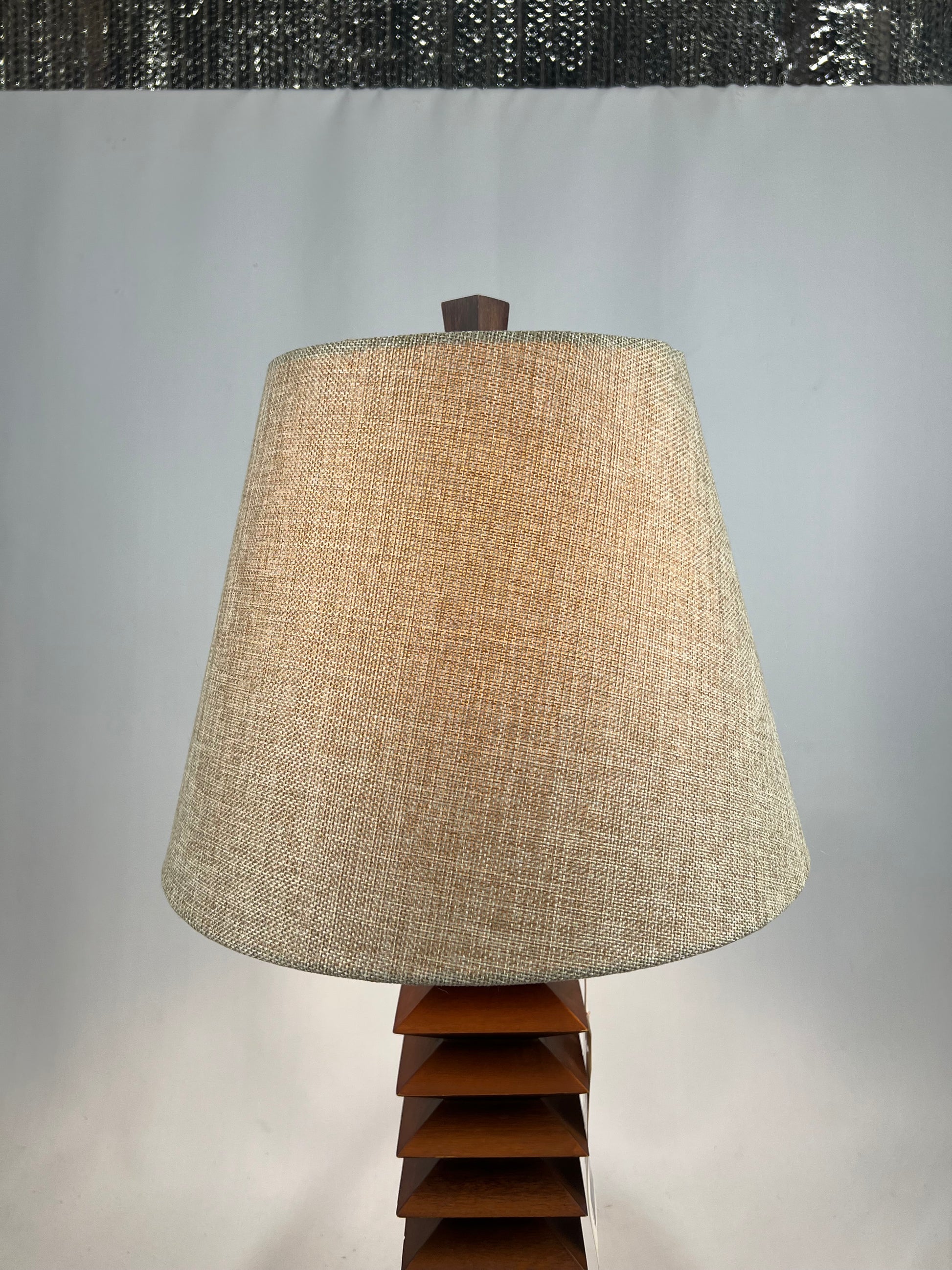 Table lamp Walnut finish square column Ribbed with Linen shade