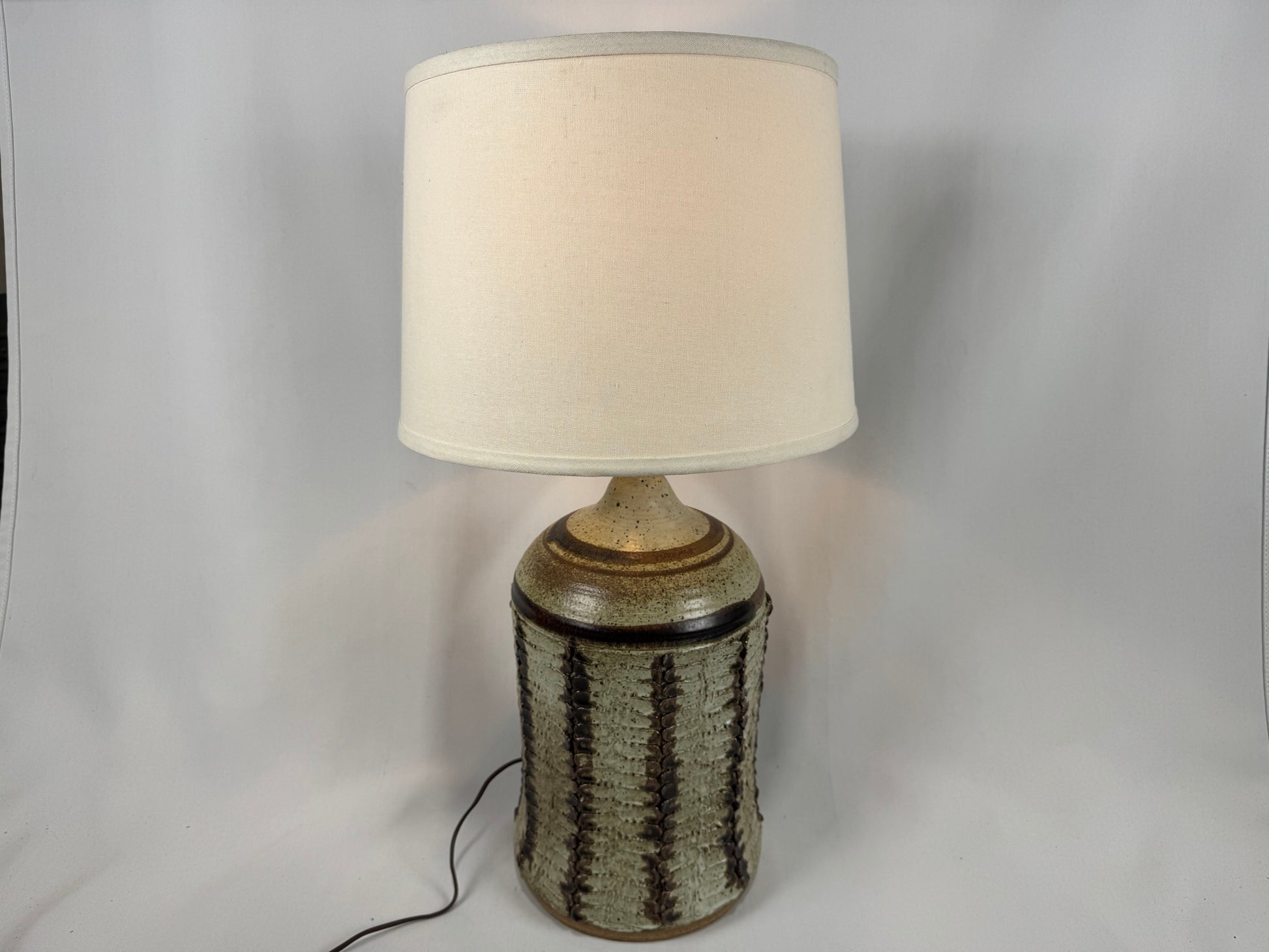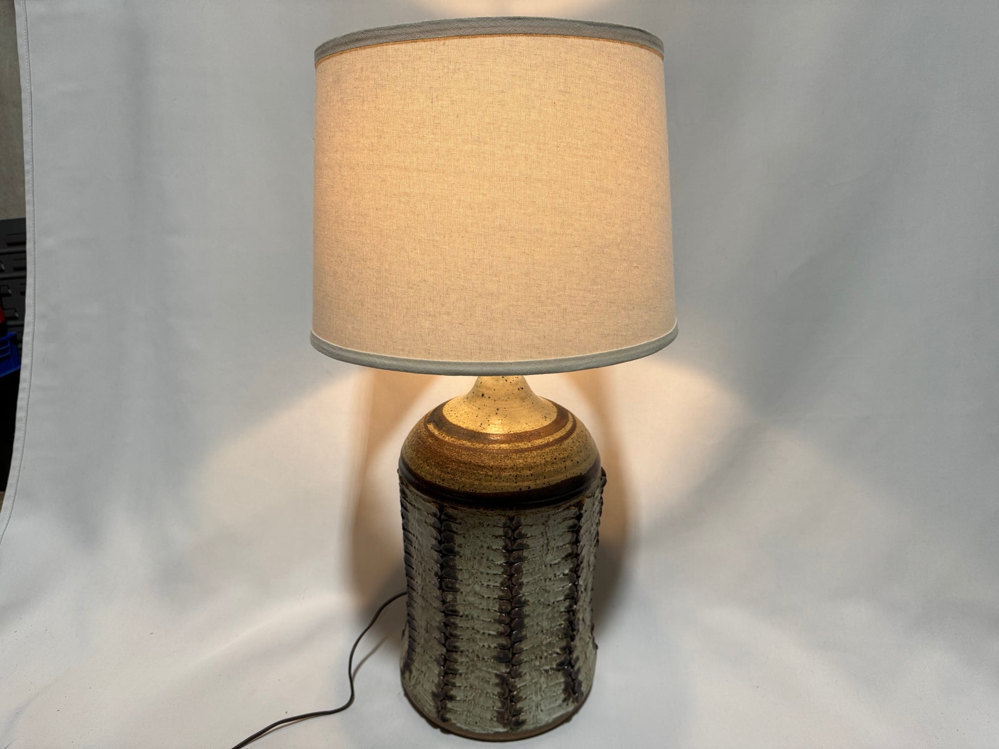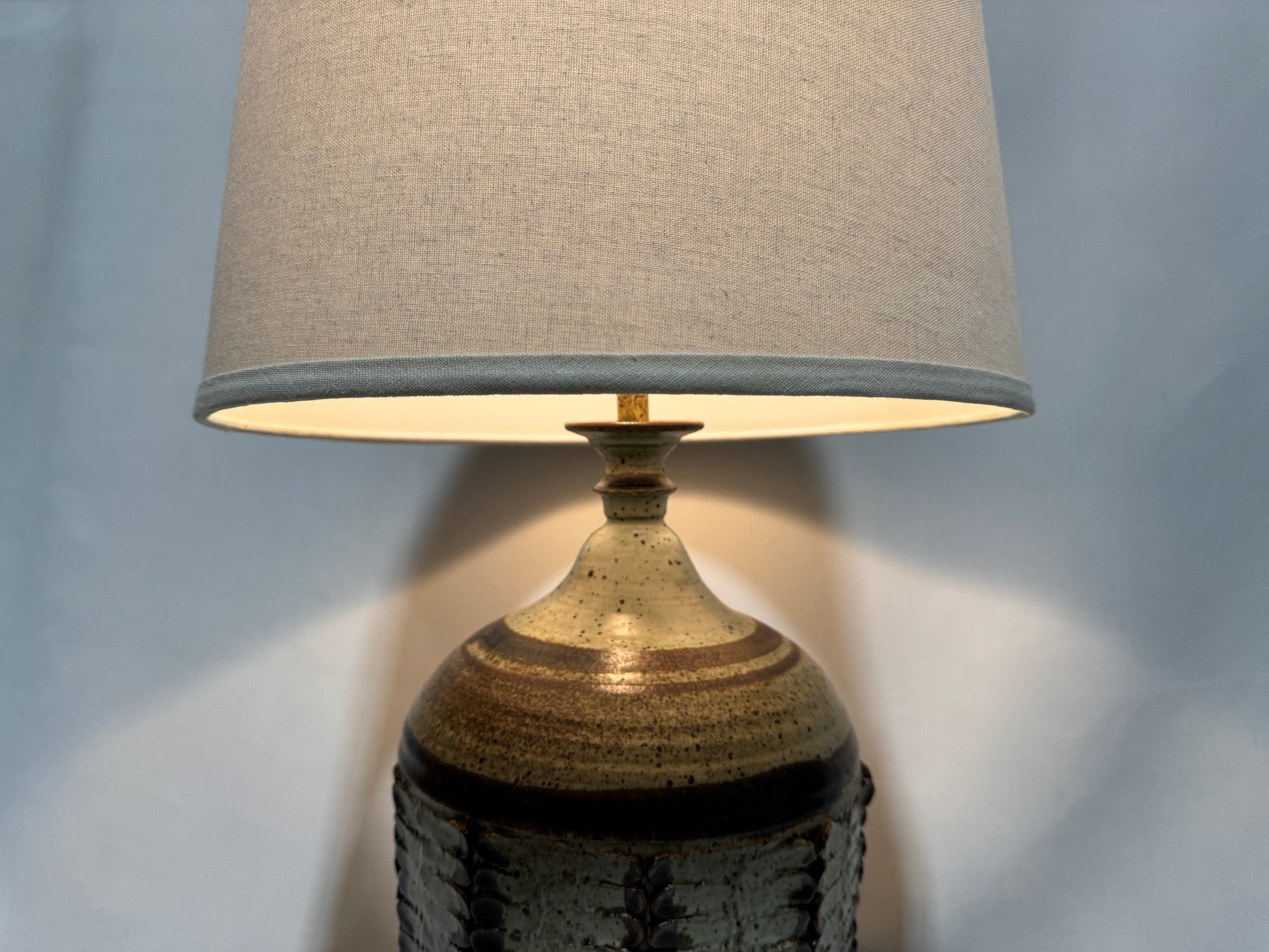 Table Lamp Textured Ceramic Jug with Tapered Shade.