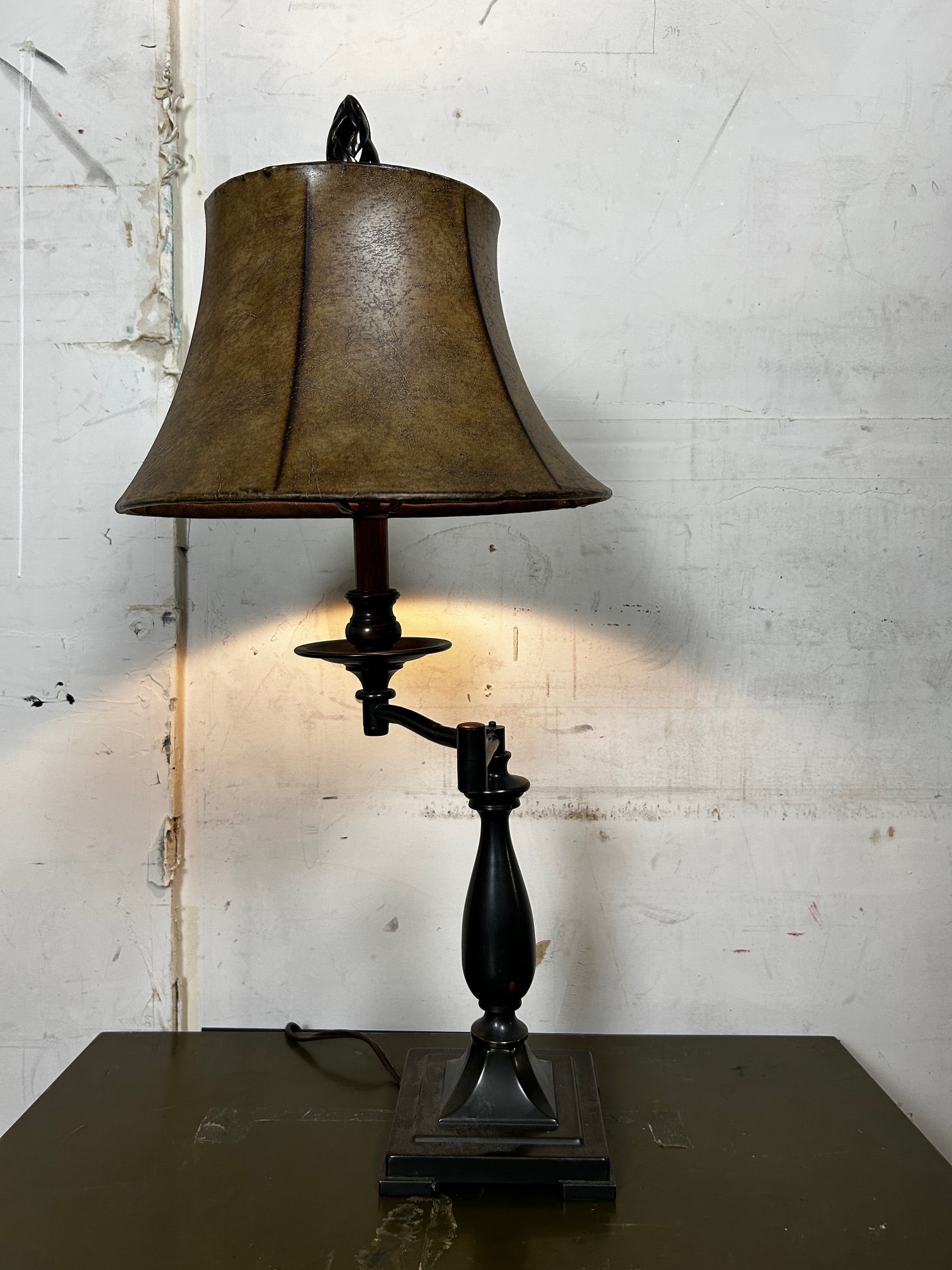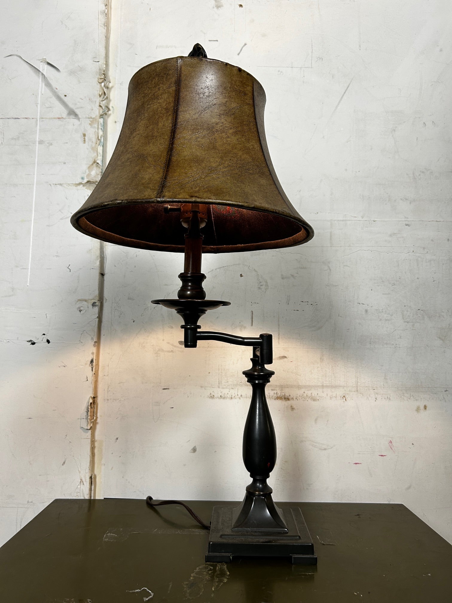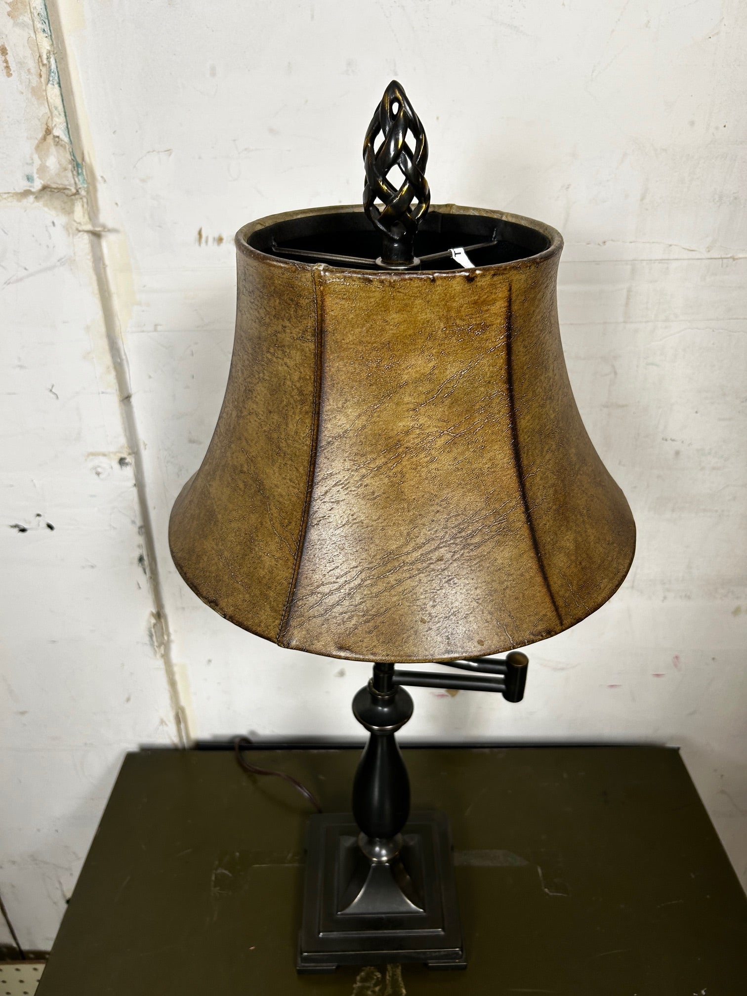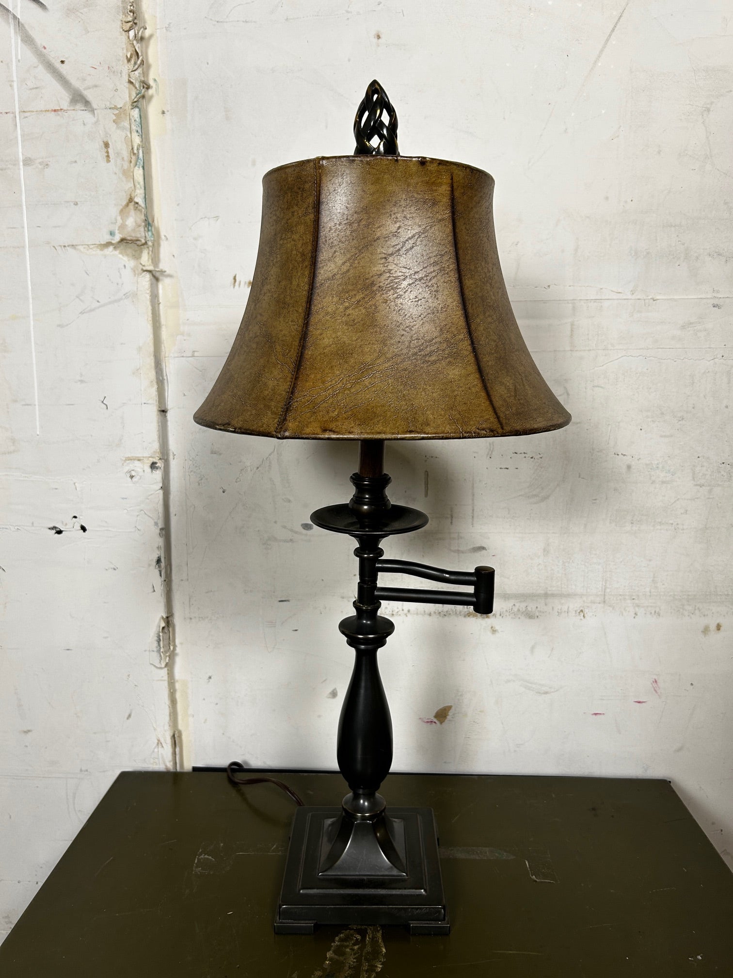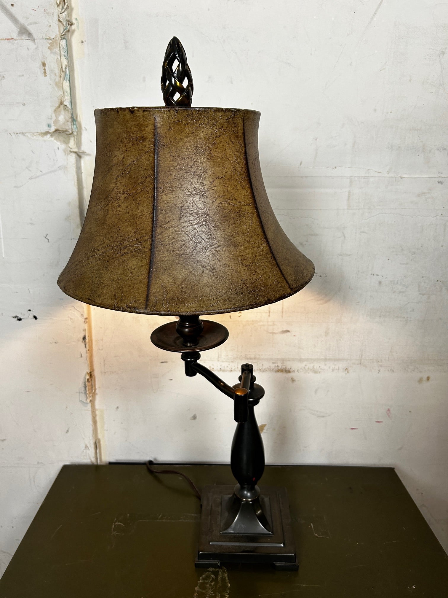 Table lamp Swing Arm Bronze with Rust Vinyl shade and Finial to match