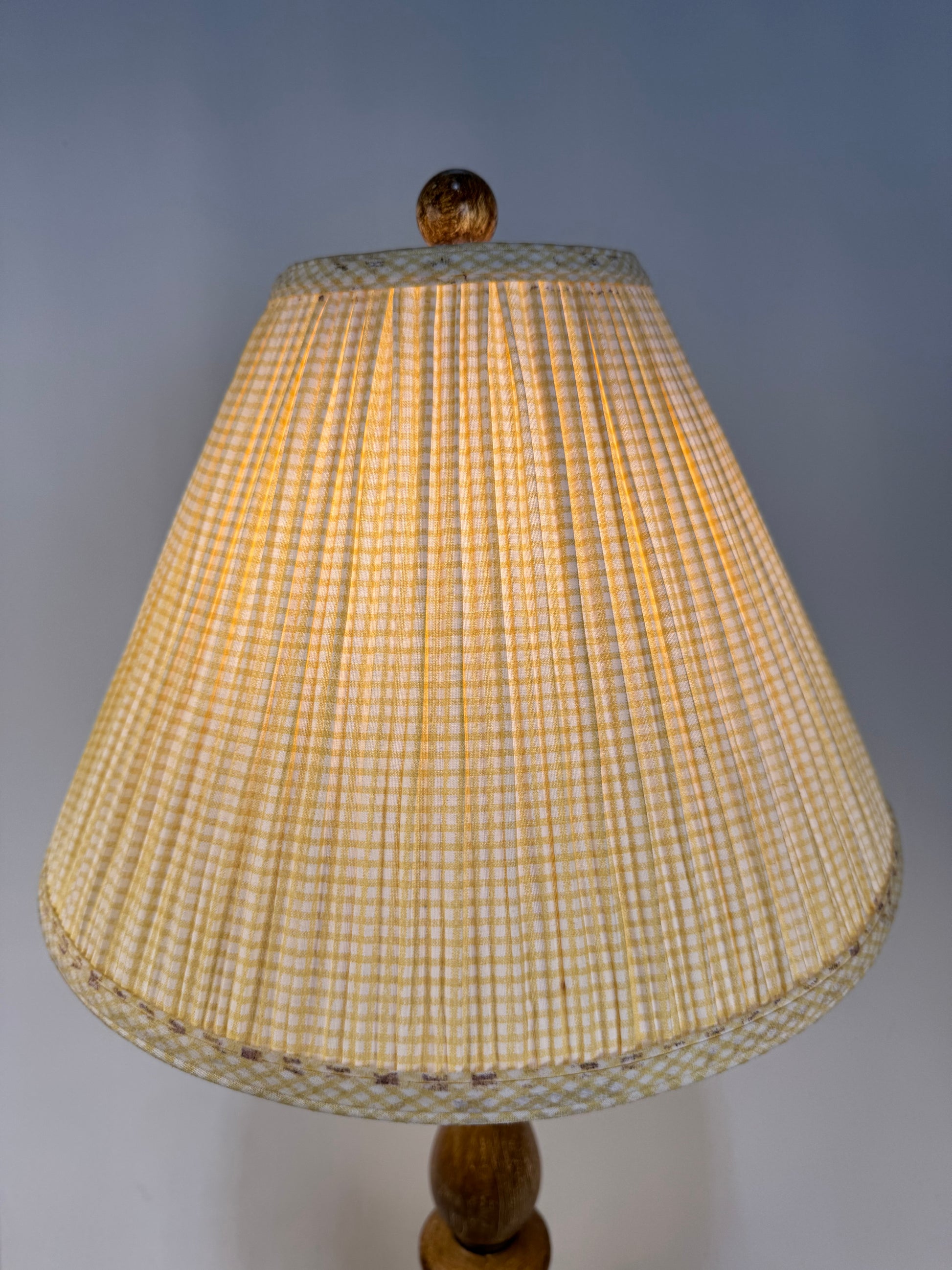 Traditional Table Lamp Maple Wood with Yellow Lattice Pleated Shade.