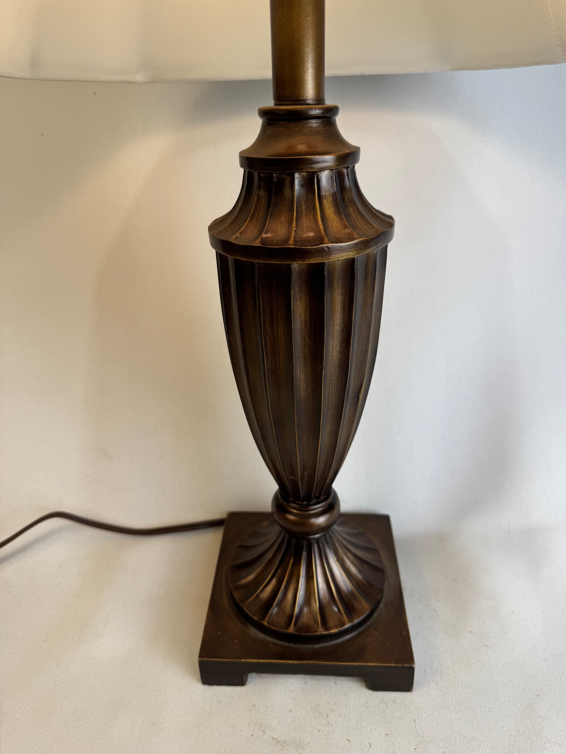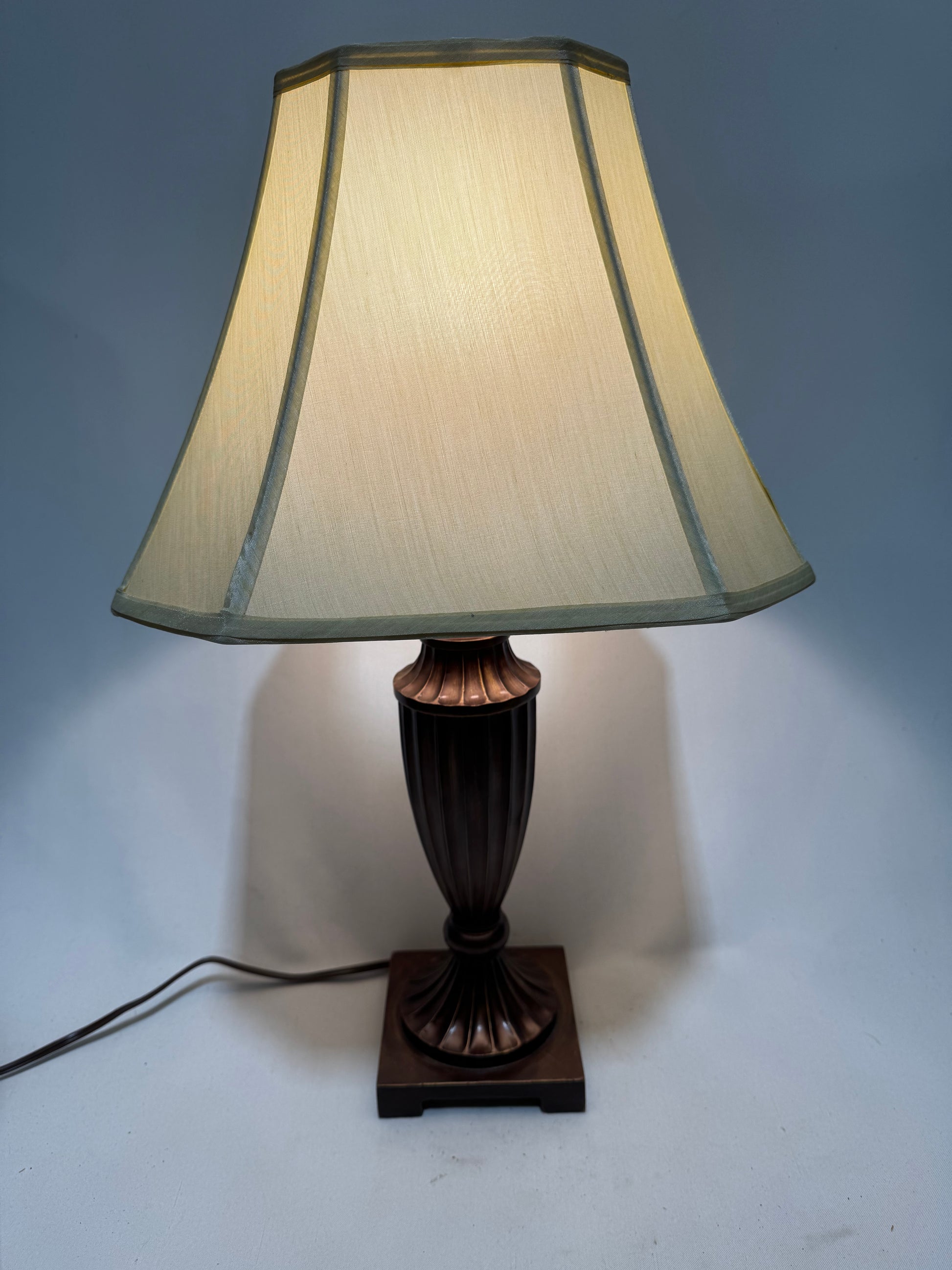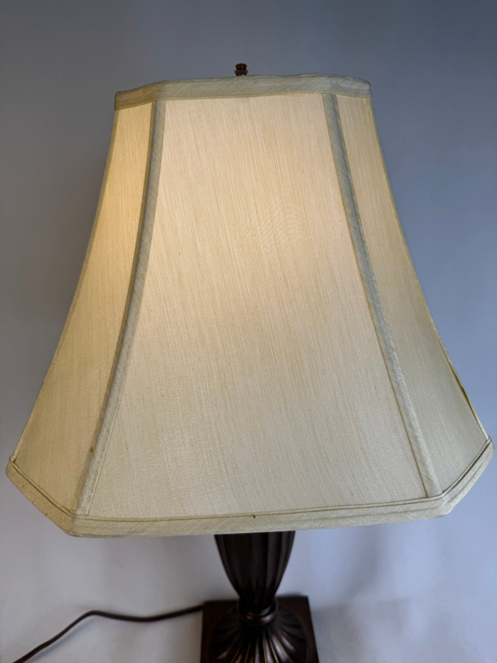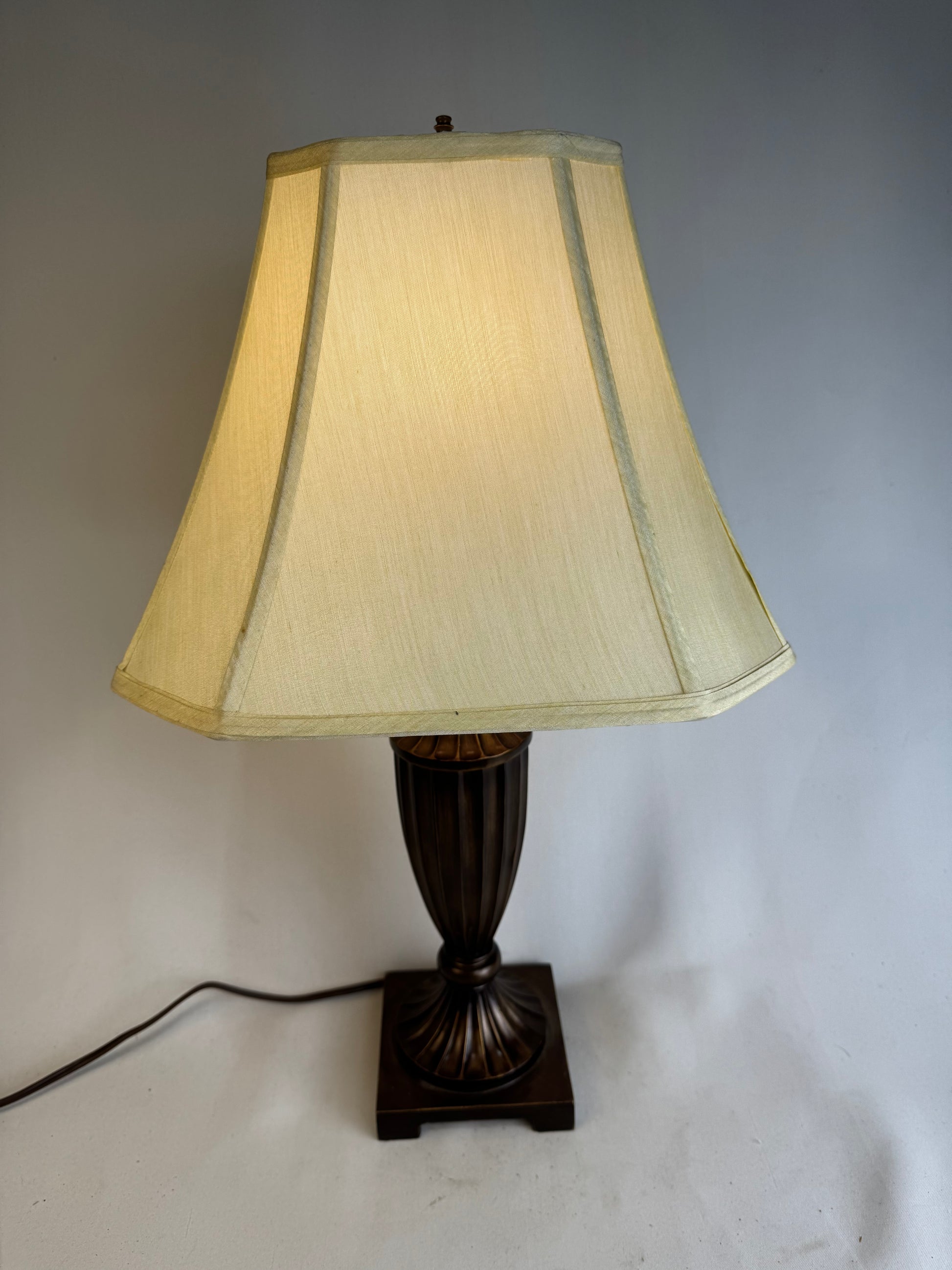 Traditional Table Lamp. Bronze Resin with Cut Corner Silk Shade.