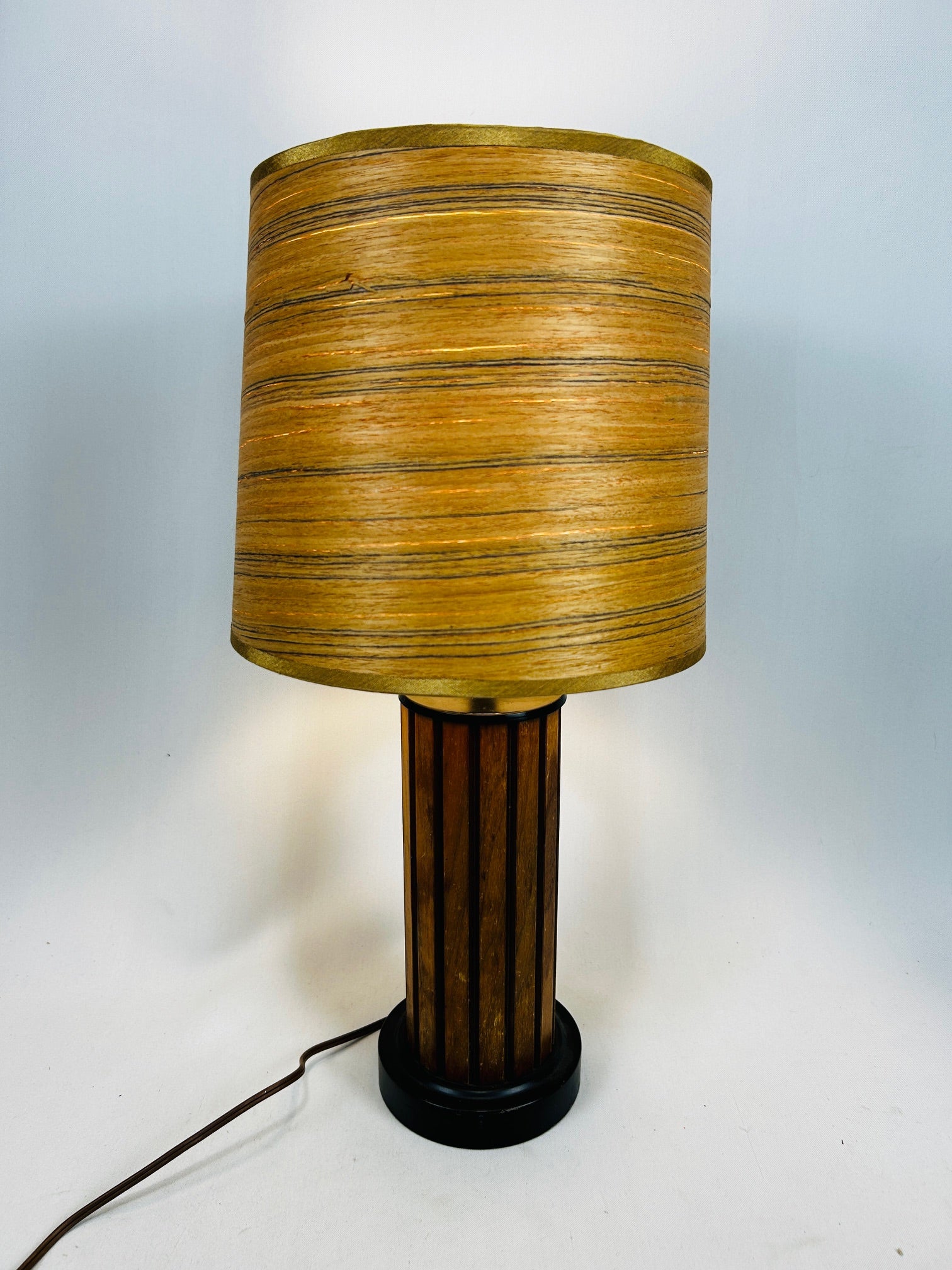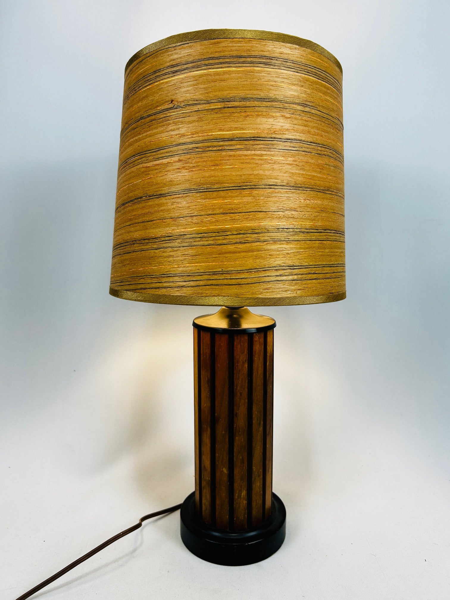 Table lamp Round with wood latte and shade