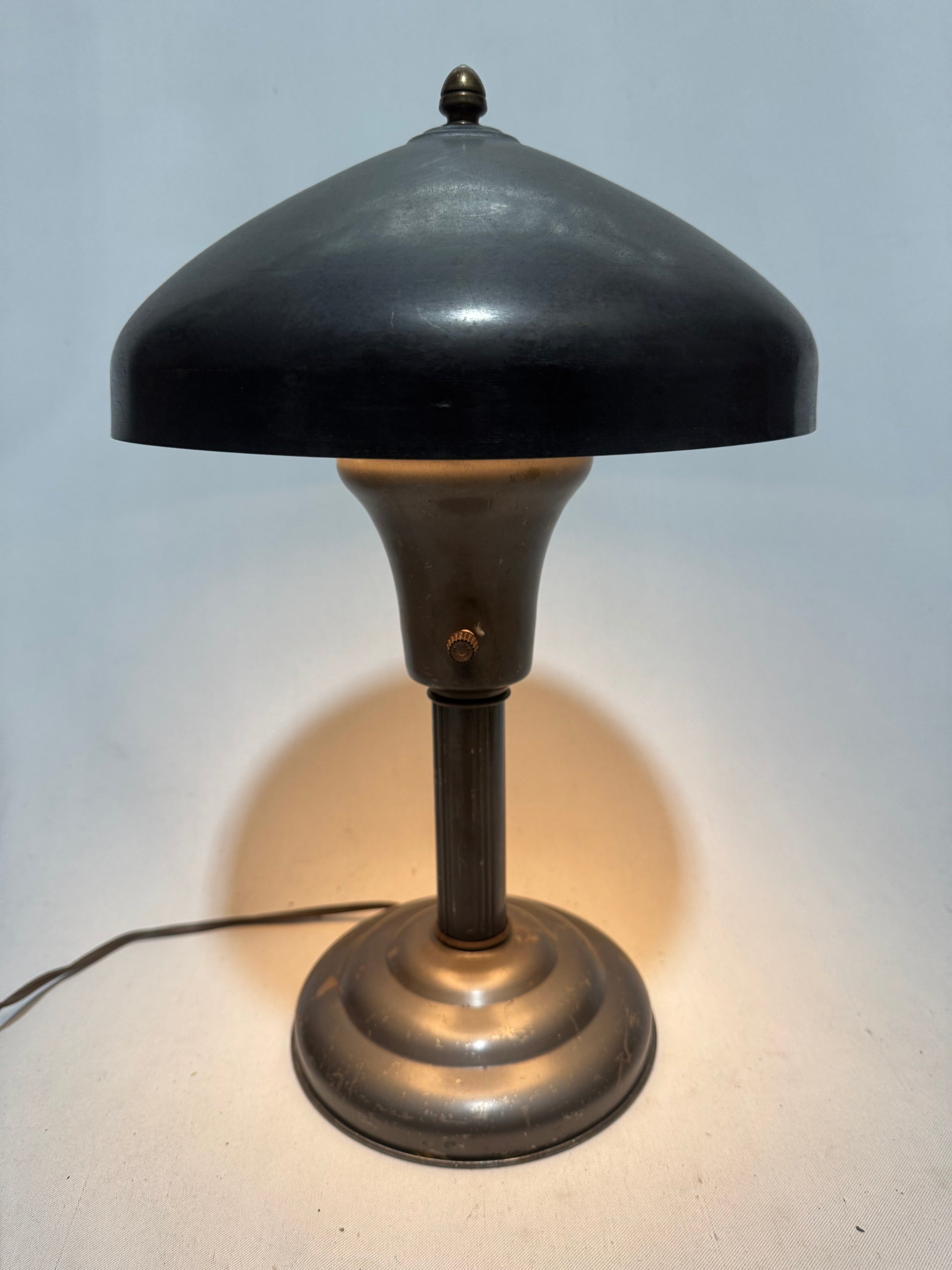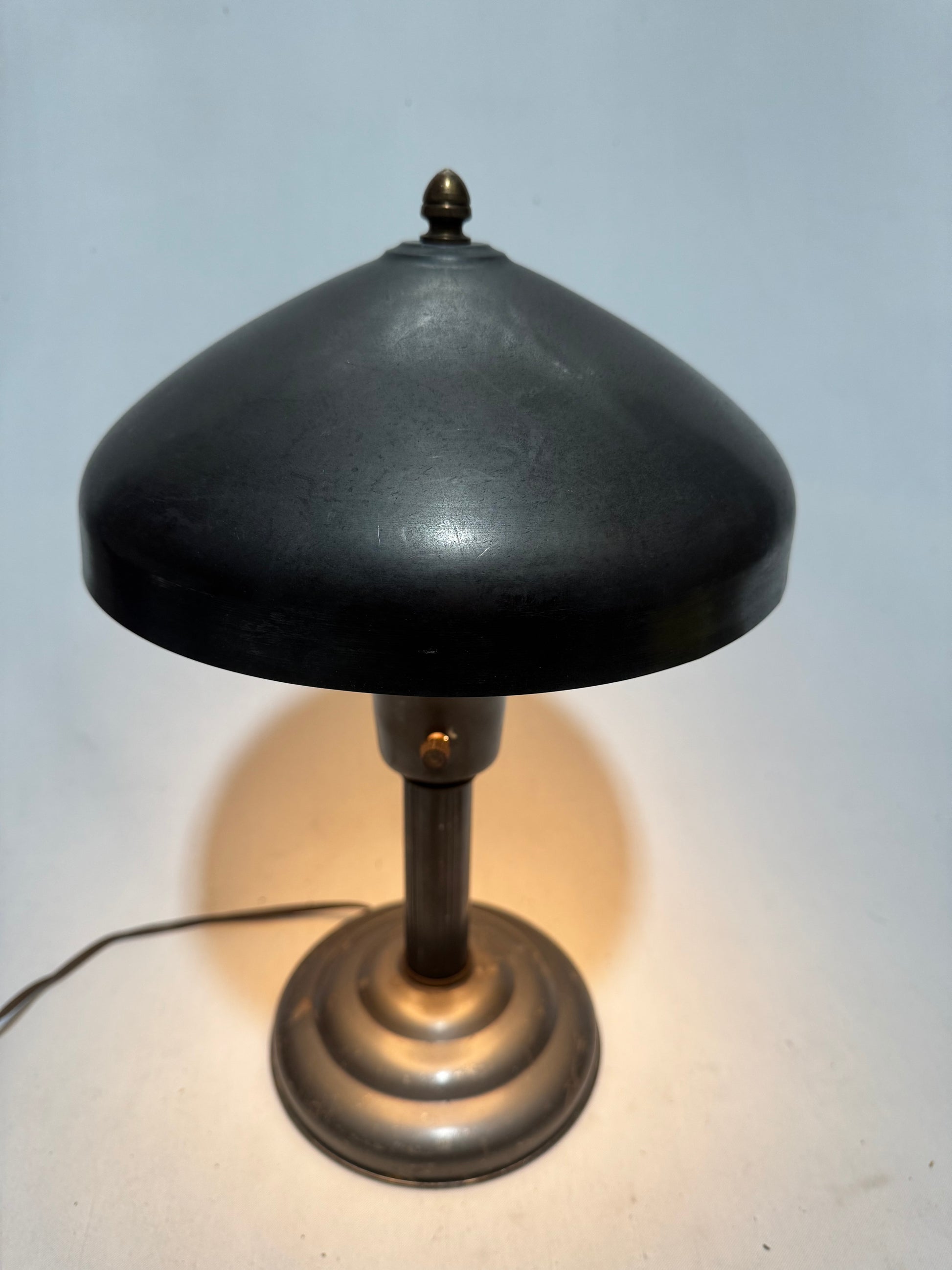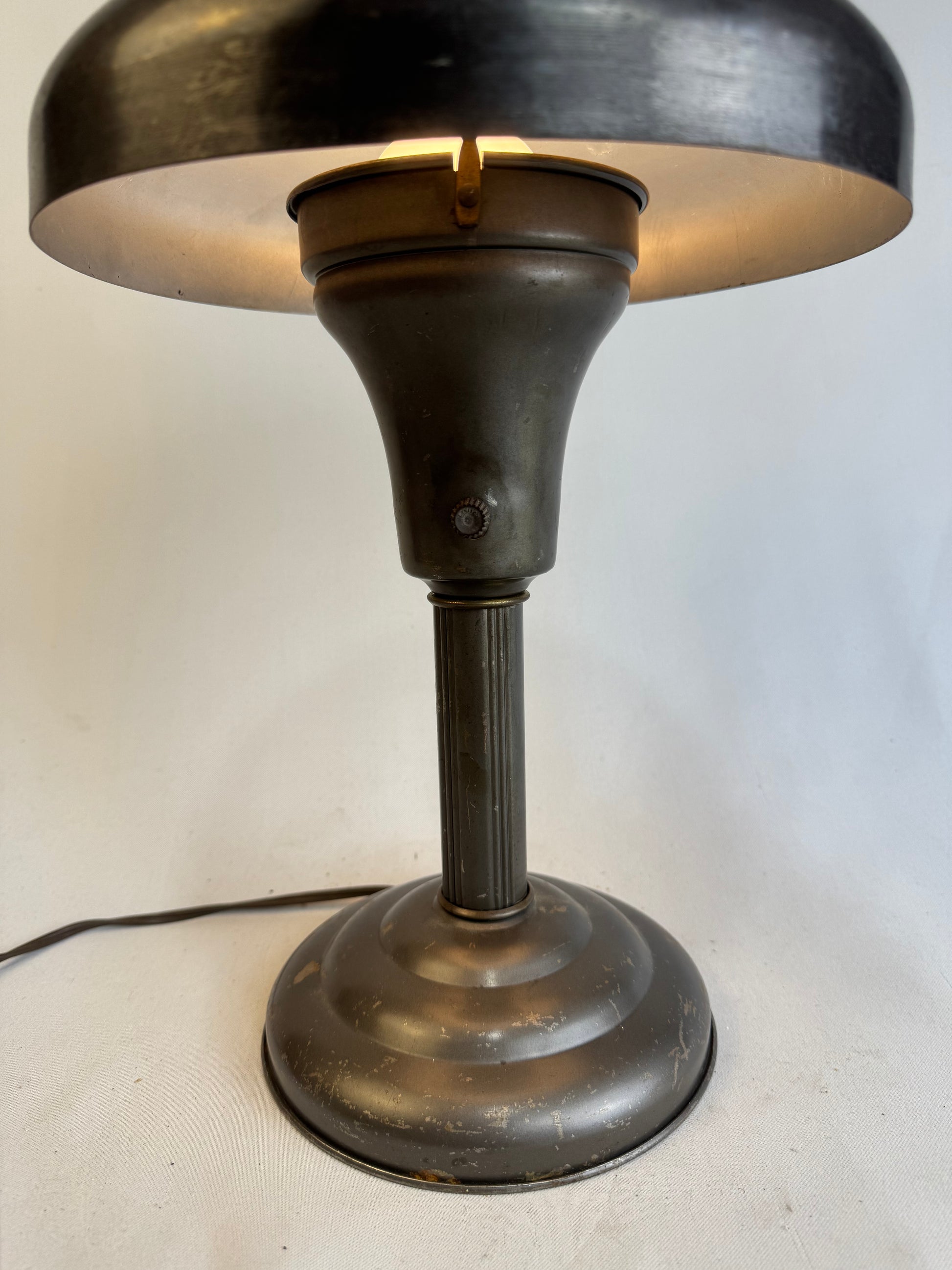 Machine Age Industrial Machine age Desk Lamp - Steel Base and Flying Saucer Shaped Shade 1940's.