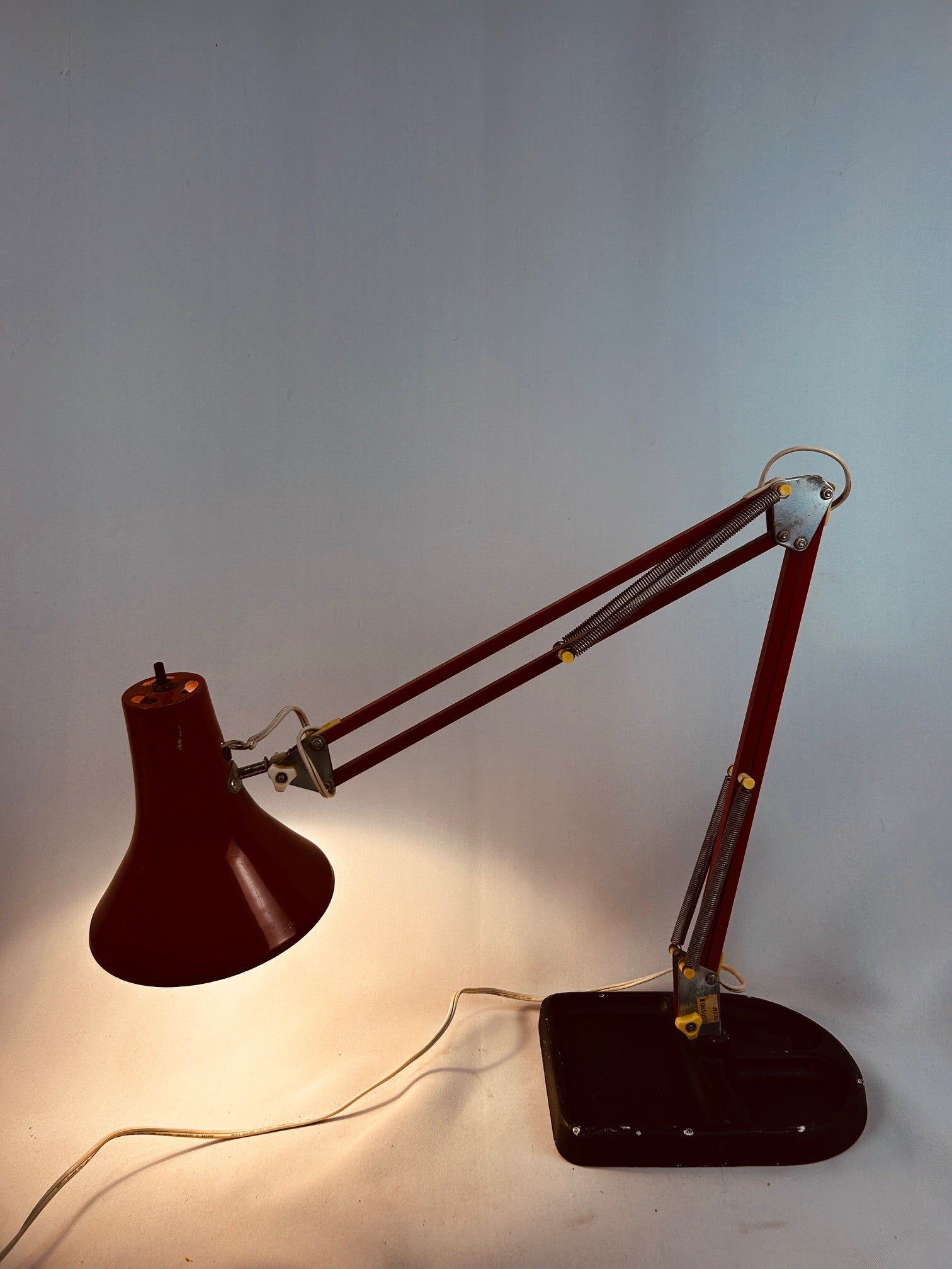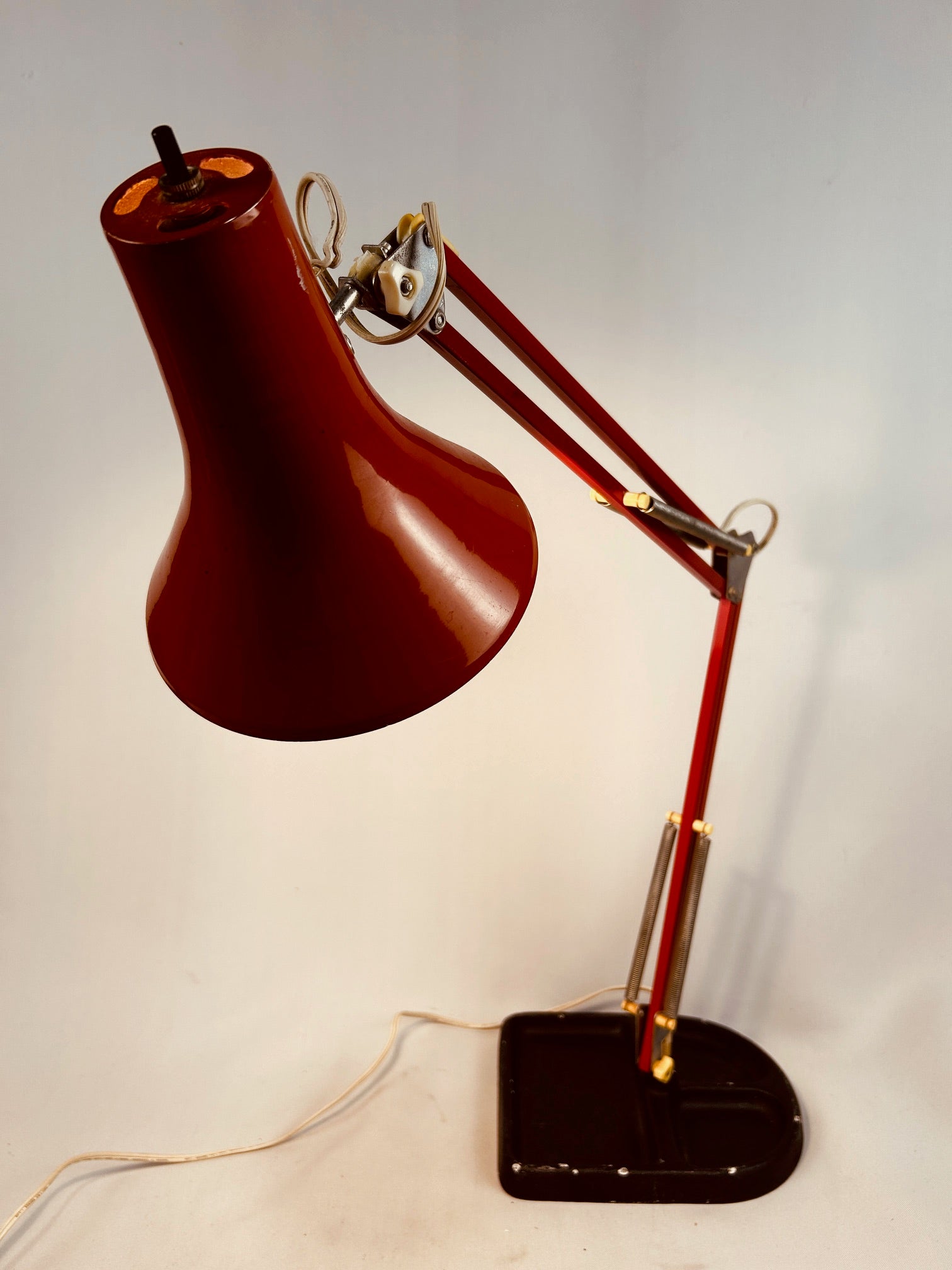 Vintage Orange Luxo desk / task / work lamp with an adjustable arm.