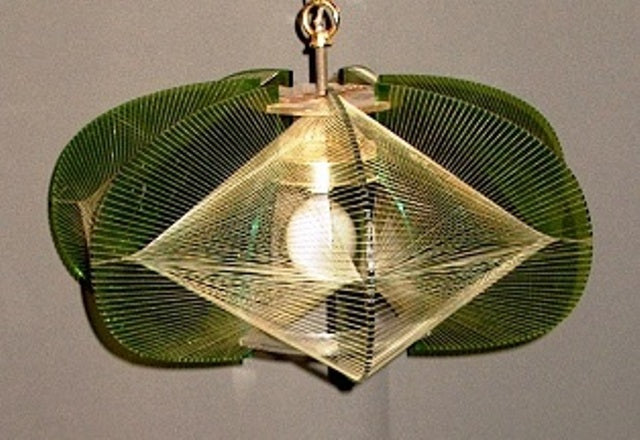 Vintage Mid-Century Lucite Strings Wire Pendant with Green Acrylic